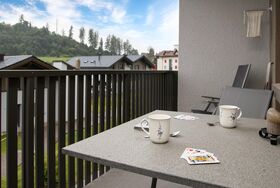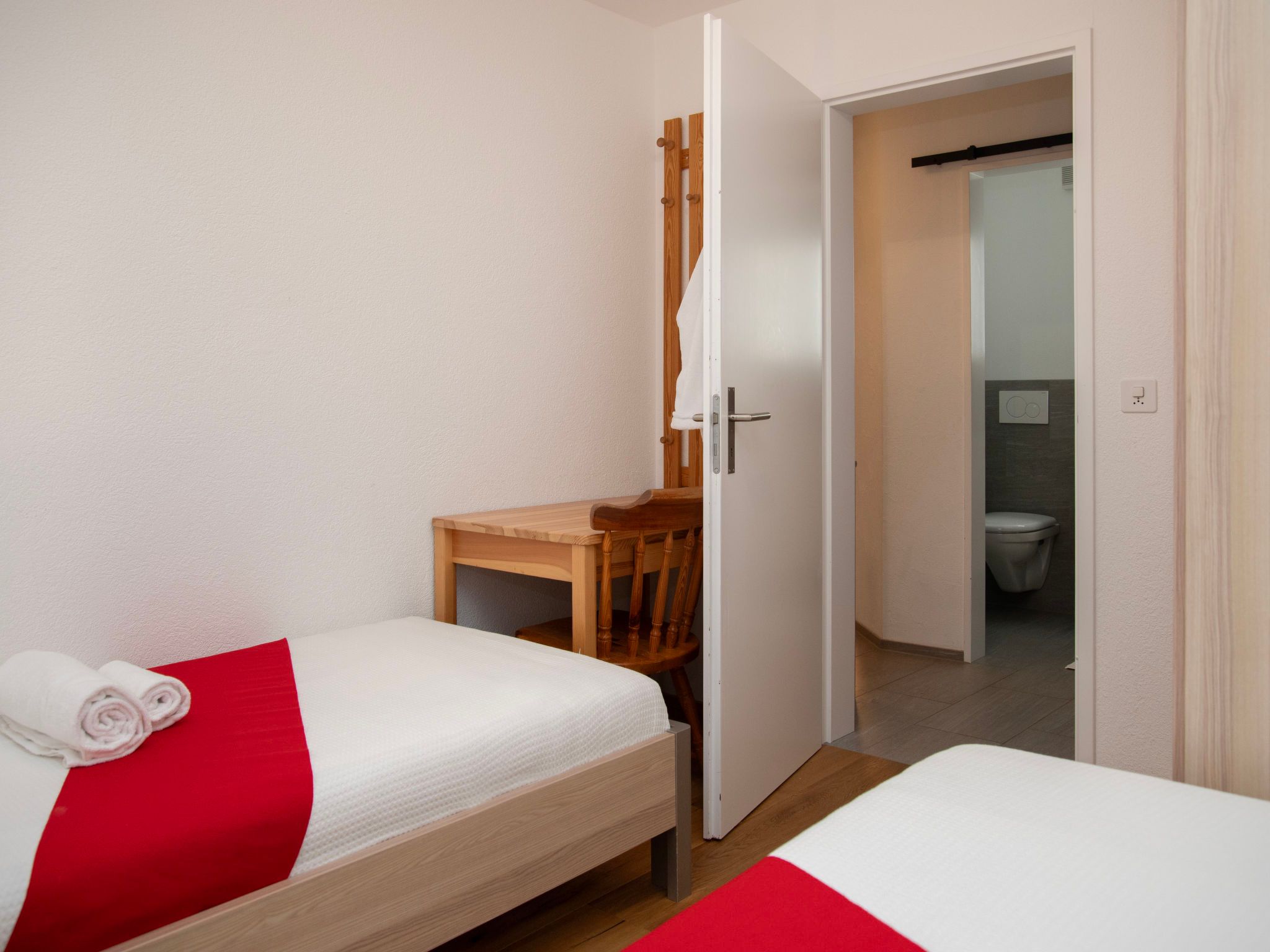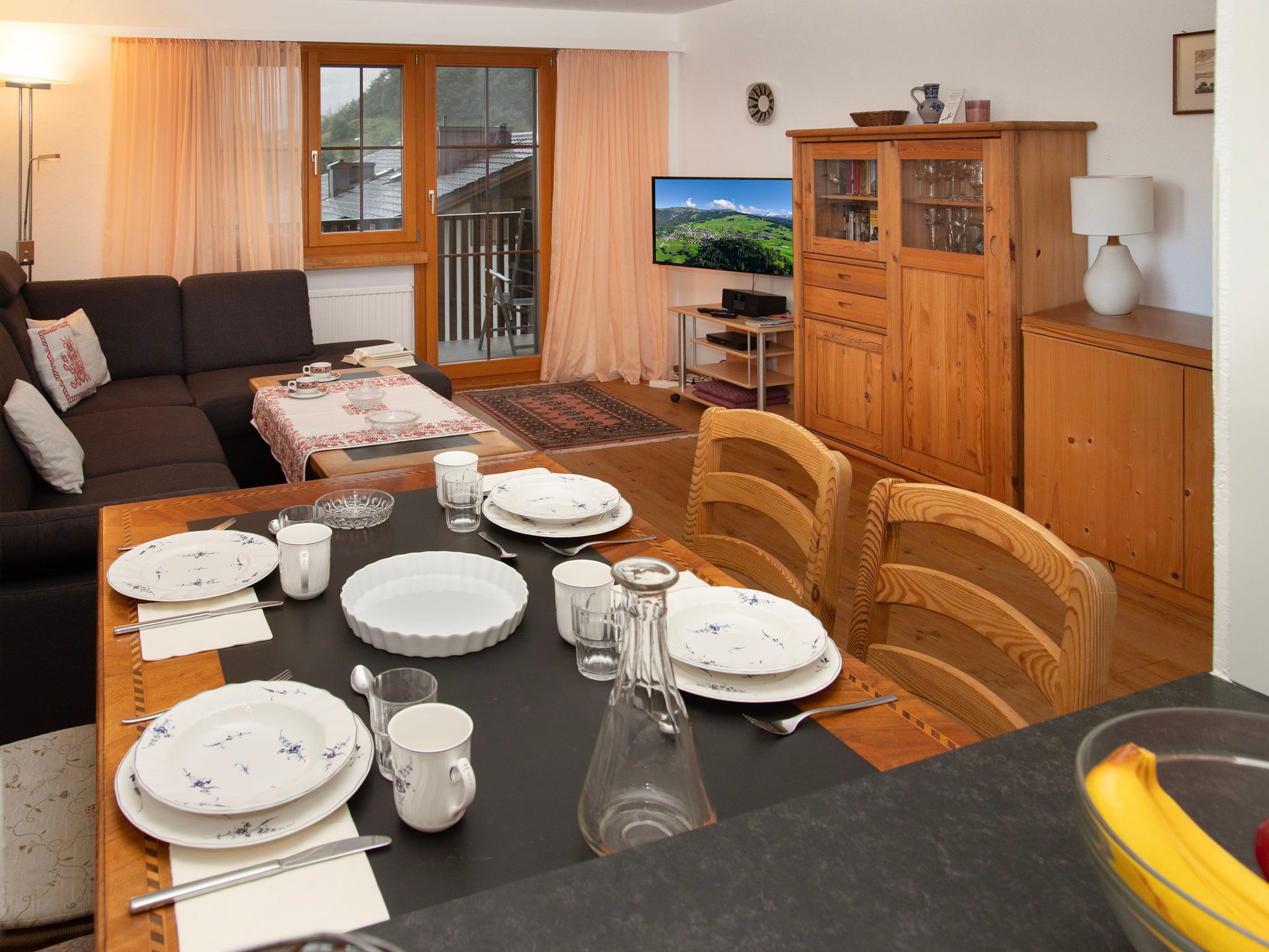 La Siala Apt.35, 3-Zimmer-Wohnung 55 m2 im 1. Stock. Komfortabel und gemütlich eingerichtet: Wohn-/Esszimmer mit 1 Diwanbett und Kabel-TV (Flachbildschirm). Ausgang zum Balkon. 1 Doppelzimmer. 1 Zimmer mit 2 Betten. Küche (Backofen, Geschirrspüler, 4 Glaskeramikplatten, Toaster, Wasserkocher, elektrische Kaffeemaschine) mit Durchreiche. Dusche/WC. Parkettboden. Balkon 8 m2, Südlage. Balkonmöbel. Schöne Sicht auf die Berge, das Tal und die Landschaft. Zur Verfügung: Haartrockner. Internet (WLAN, gratis). Bitte beachten: Nichtraucher-Unterkunft.