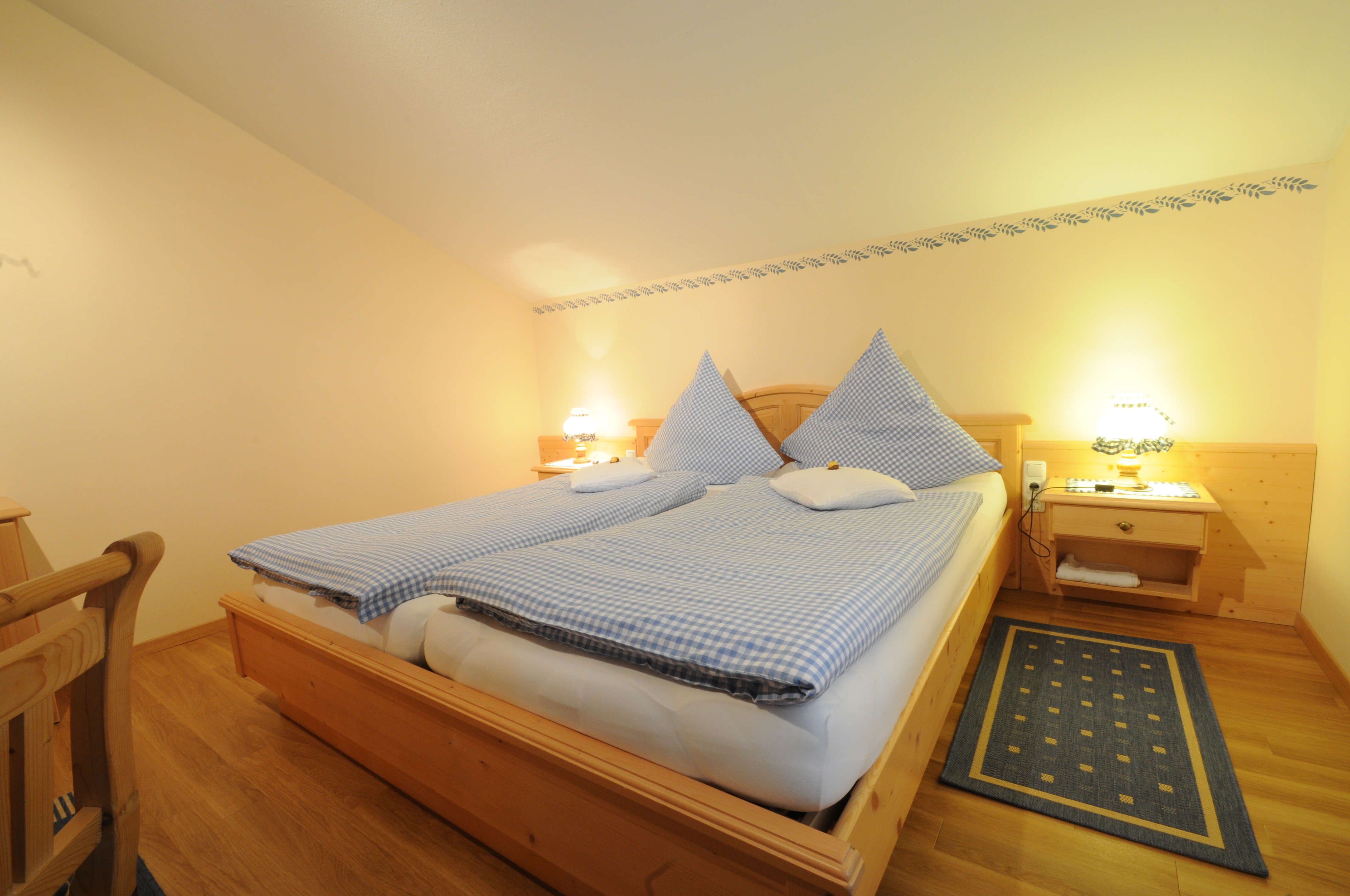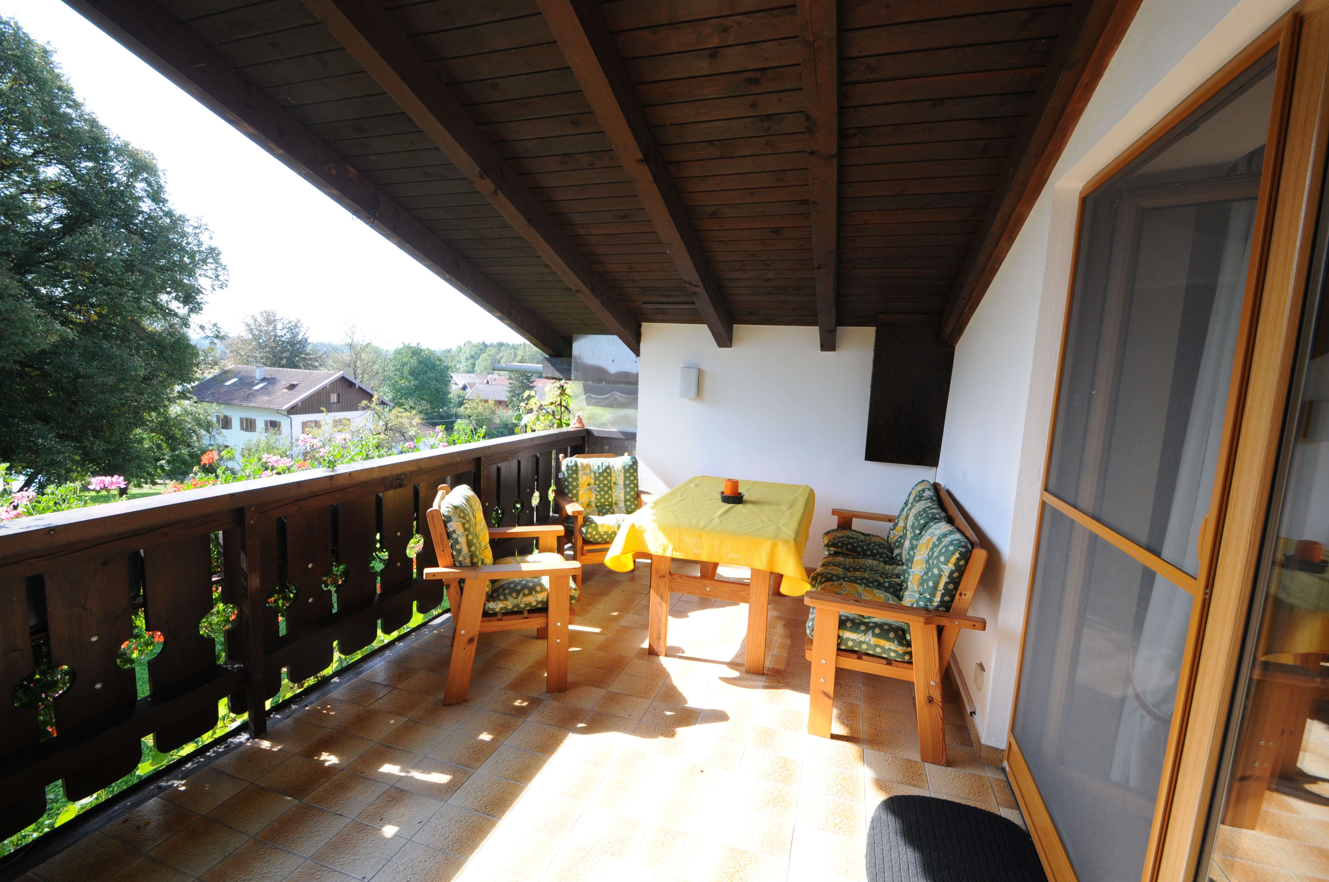 Die Ferienwohnung ist sehr großzügig und liebevoll eingerichtet und bietet durch das gemütlich-bayerische Ambiente und den vielen Extras höchsten Wohnkomfort.Zu den Räumlichkeiten auf der ganzen 1. Etage gehören: Eine große Wohndiele mit Essecke und Bauerntisch, sowie ein rustikaler offener Kamin und eine Diele mit Garderobe. Die voll ausgestattete große Küche verfügt über einen Geschirrspüler, Kühl- und Gefrierschrank, Wasserkocher, Kaffeemaschine, Eierkocher, Handrührgerät, Pürierstab und Toaster. Ein kleiner Vorratsraum ist ebenfalls vorhanden. Ein gemütliches Wohnzimmer mit großer Couchecke, TV und Zugang zum großen Südbalkon, überdacht mit Sitzgruppe, steht unseren Gästen zur Verfügung. Schlafmöglichkeiten gibt es in einem Schlafzimmer mit Doppelbett und Balkon, einem weiteren Schlafzimmer mit Doppelbett (in Überlänge 2.20 m) mit Balkon und einem Kinderzimmer mit Etagenbett und Einzelbett (für 7. Person). Das Badezimmer ist mit Dusche/WC, zwei Waschtischen, Haarfön und Kosmetikspiegel ausgestattet. In der Wohnung befindet sich auch eine zweite Dusche mit WC.