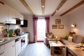 Die Ferienwohnung 4 ist mit 65 qm für eine Familie besonders geeignet. Sie verfügt über ein Schlafzimmer mit Doppelbett, ein separates Kinderzimmer mit Etagenbett und evtl. Einzelbett oder Kinderbettchen. Die Wohnküche ist komplett eingerichtet und bietet eine gemütliche Couchgruppe sowie eine Essecke. Im großen Badezimmer befinden sich zwei Waschbecken, Dusche und WC. Kleinkinderausrüstung und Wickelkommode ist kostenlos! Die Wohnung ist mit Südbalkon.