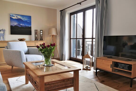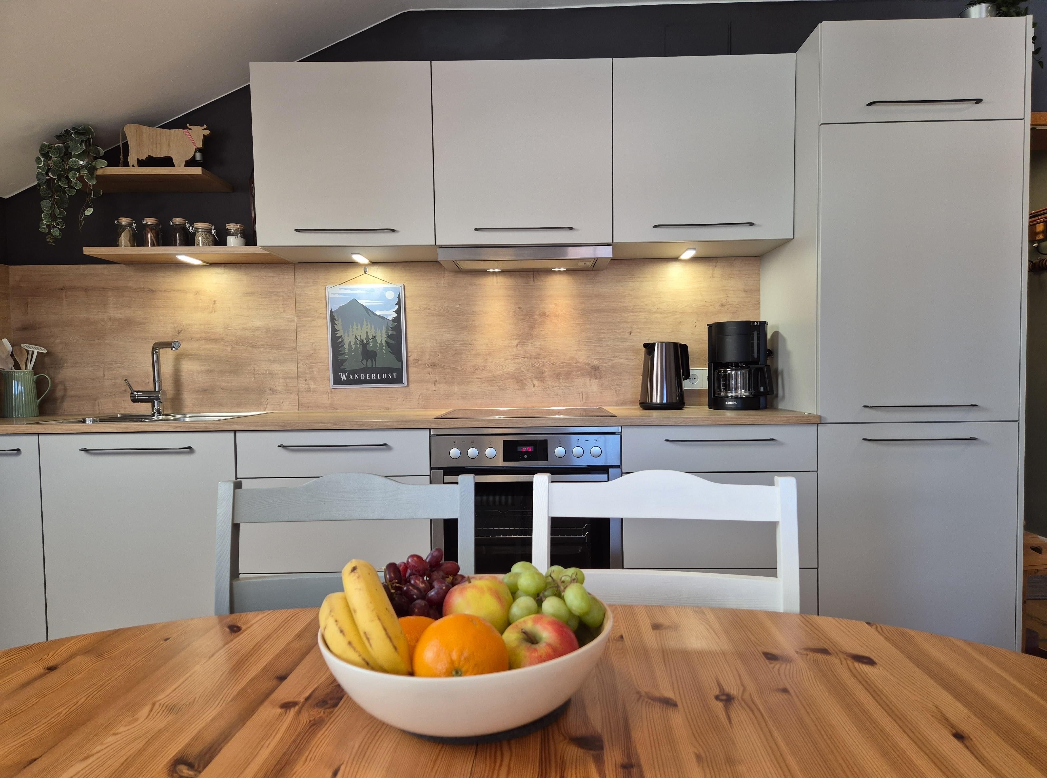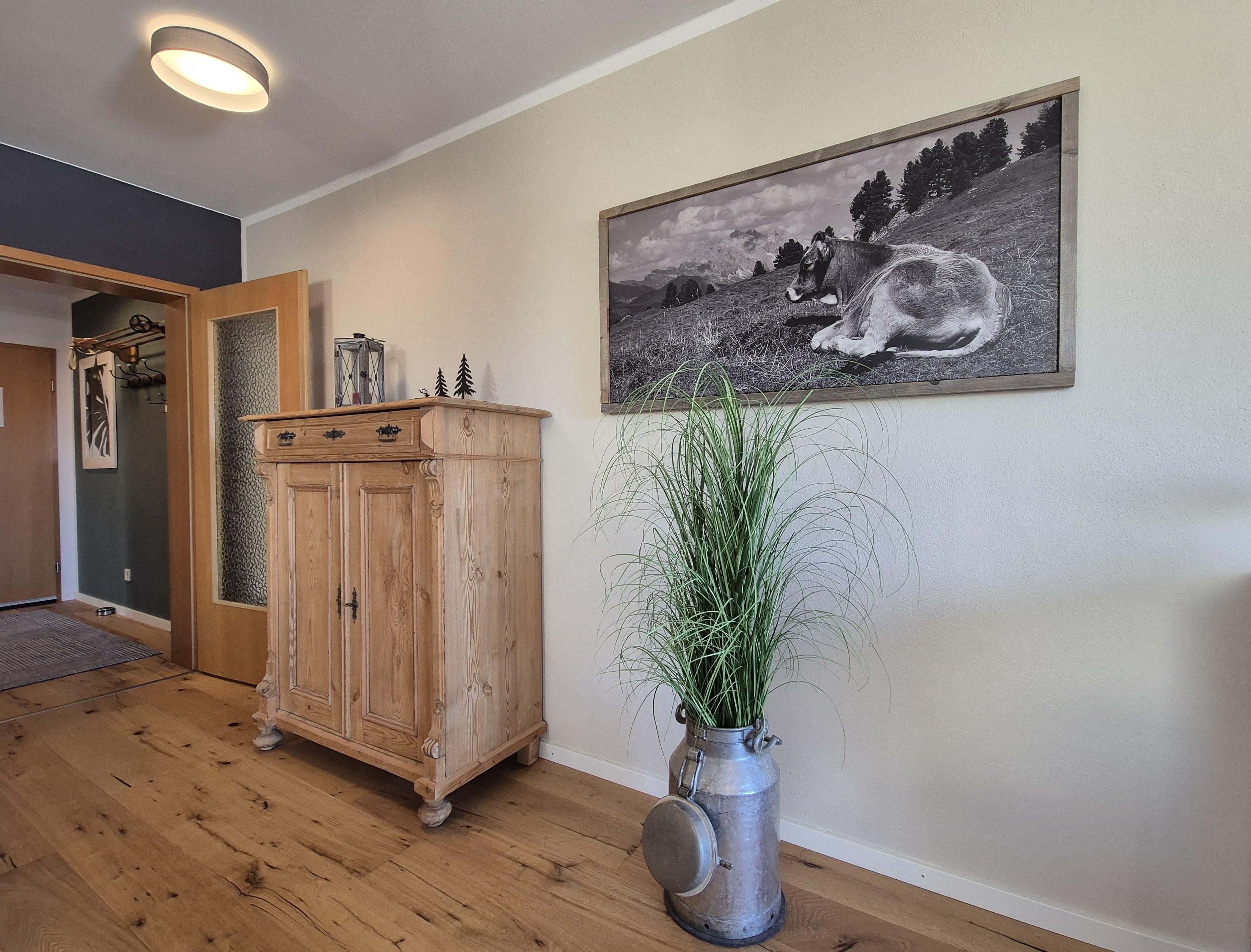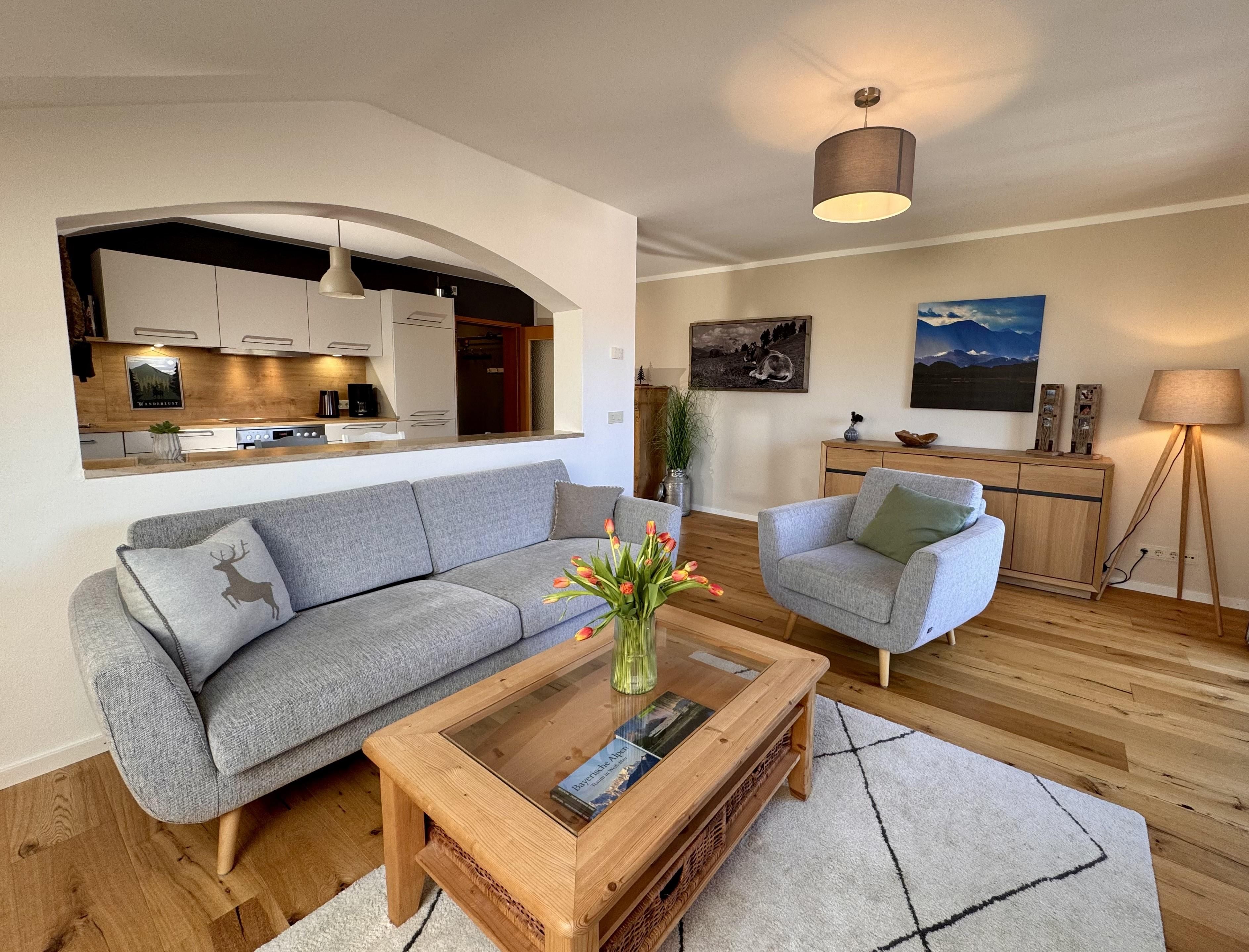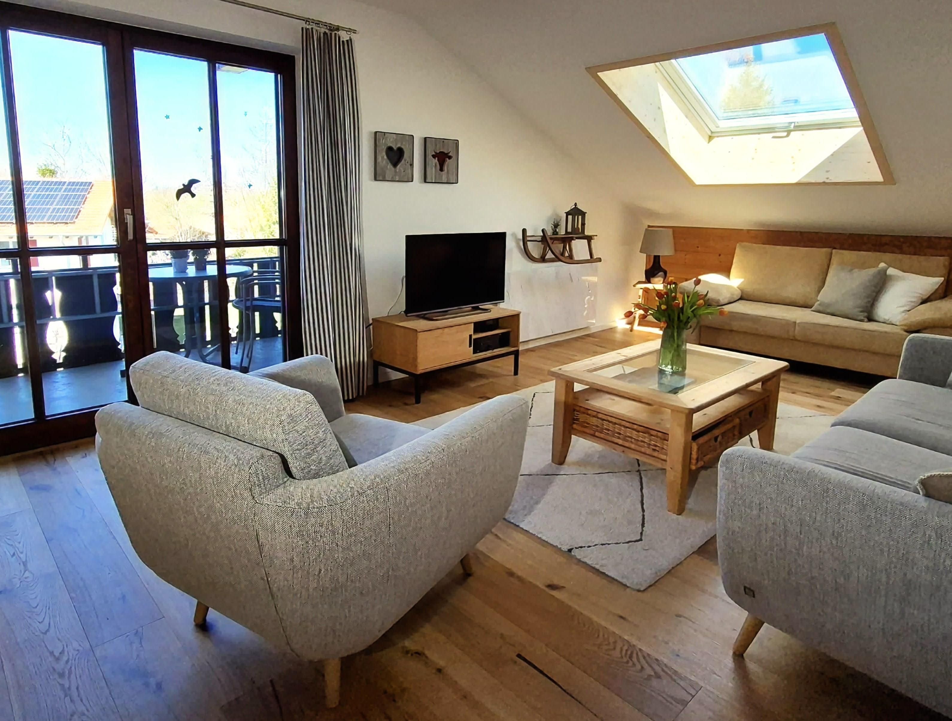 Sehr ruhige, gemütliche Wohnung mit Balkon und erholsamen Blick auf die umliegenden Wiesen und ein Wäldchen. Die Wohnung wurde 2021 modernisiert sowie neu möbliert und ist liebevoll eingerichtet. Sie verfügt über einen Echtholzboden, eine moderne voll ausgestattete Küche mit integriertem Geschirrspüler, Essecke, Wohnzimmer, ein Schlafzimmer mit getrennten Betten, ein helles Bad mit Dusche, WC und Fenster sowie einem separates WC. Ein Flachbild-TV, DVD-Player, eine Musikanlage mit Bluetooth diverse Spiele und Bücher sorgen für Entspannung. Schlafmöglichkeiten auch für 3. und 4. Person!