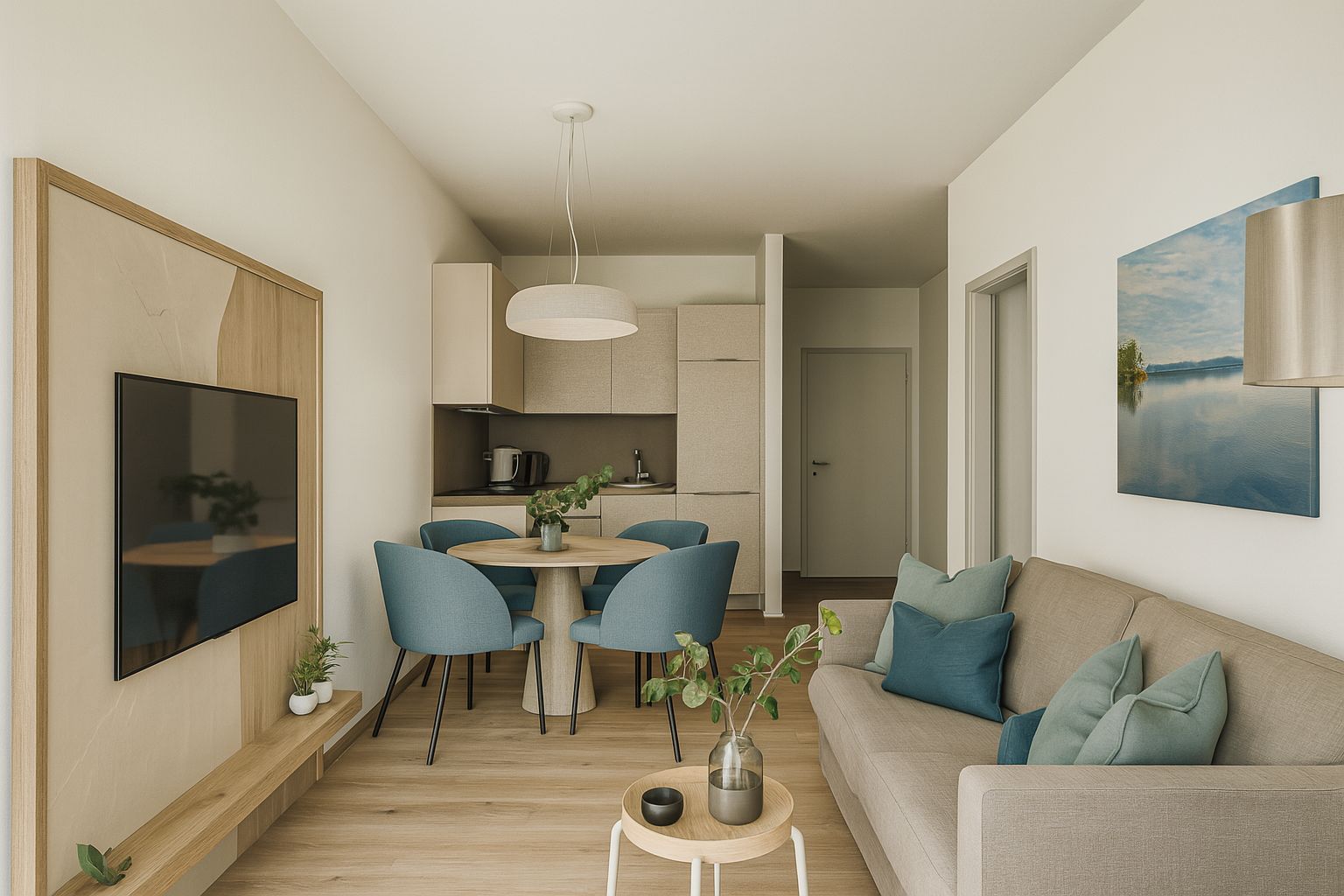 Eingebettet in eine atemberaubende Naturlandschaft, nur wenige Schritte vom öffentlichen Seezugang entfernt, erwartet Sie ein außergewöhnlich stilvolles Apartment, das modernes Design und Entspannung vereint.