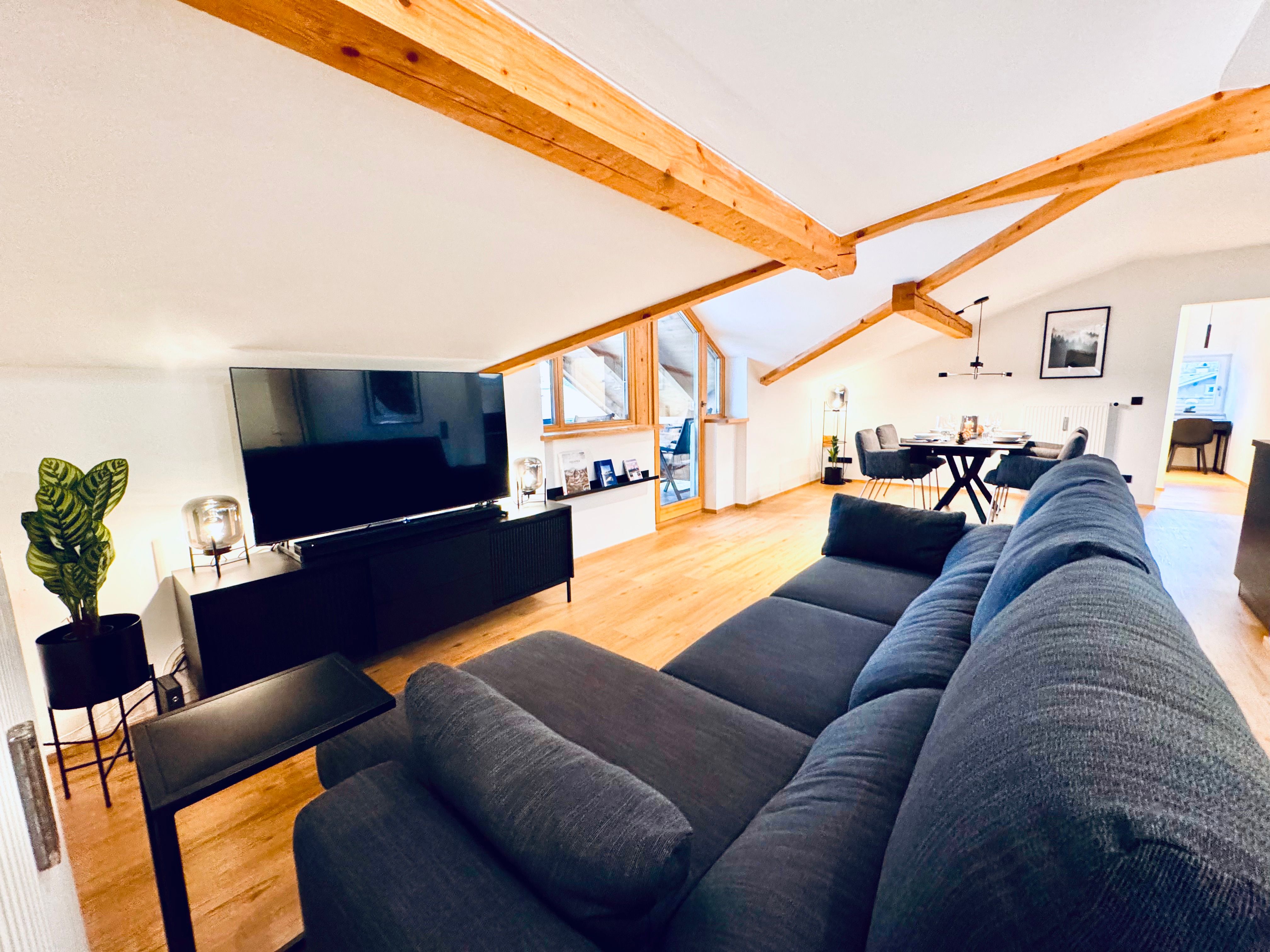 Eingebettet in die malerische Landschaft des Chiemgau verbindet sie modernes Design mit Gemütlichkeit und schafft einen Ort, an dem der Alltag in weite Ferne rückt und die Erholung beginnt.
