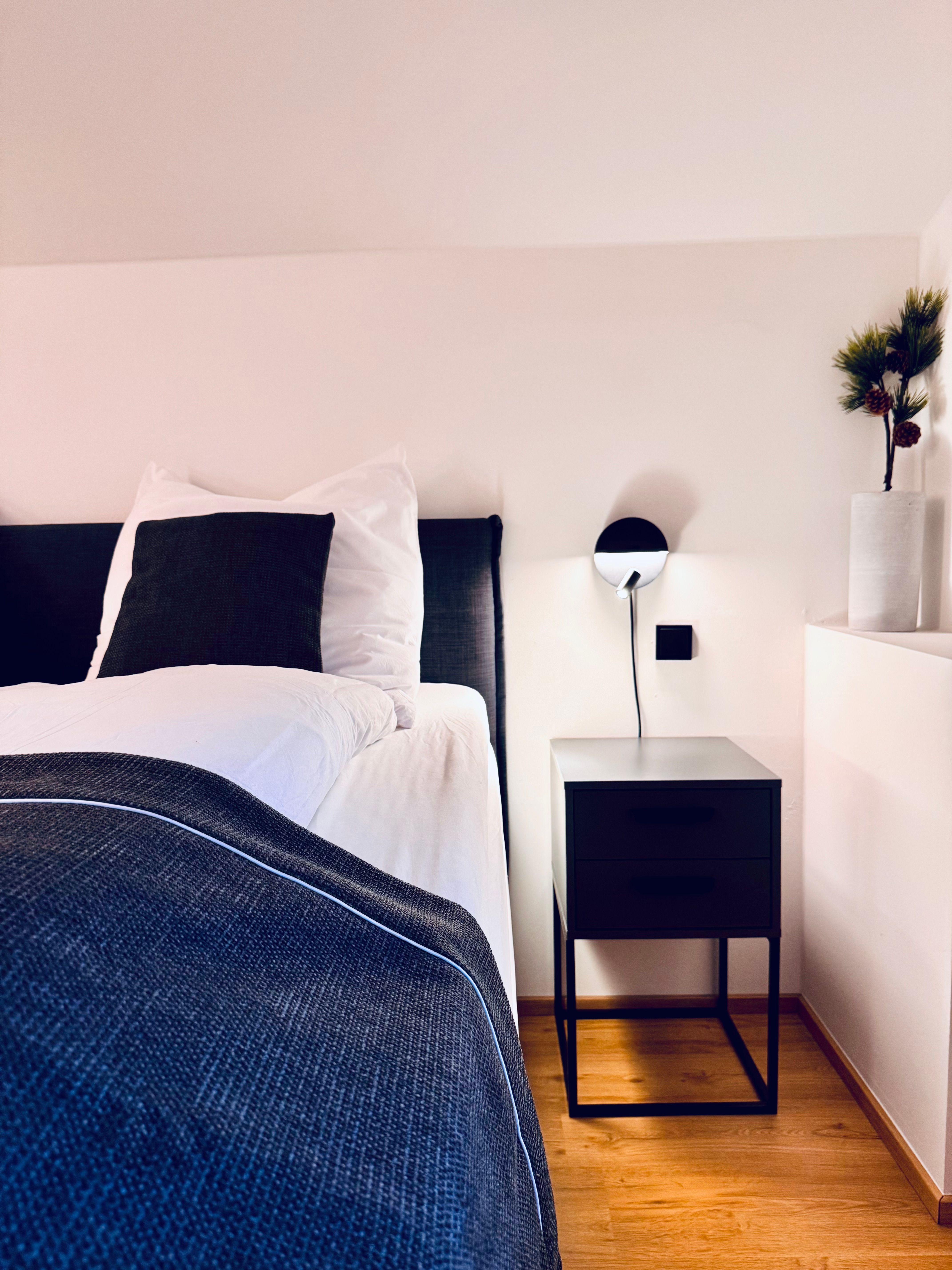 Mit sorgfältig ausgewählten Materialien und einem klaren, minimalistischen Stil schaffen wir eine gemütliche Atmosphäre, die Raum für das Wesentliche schafft und zum Verweilen und Entspannen einlädt.