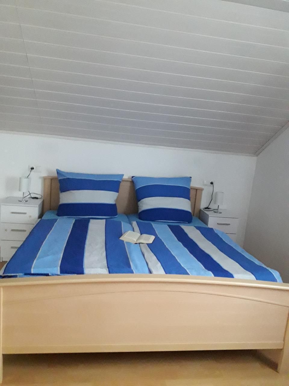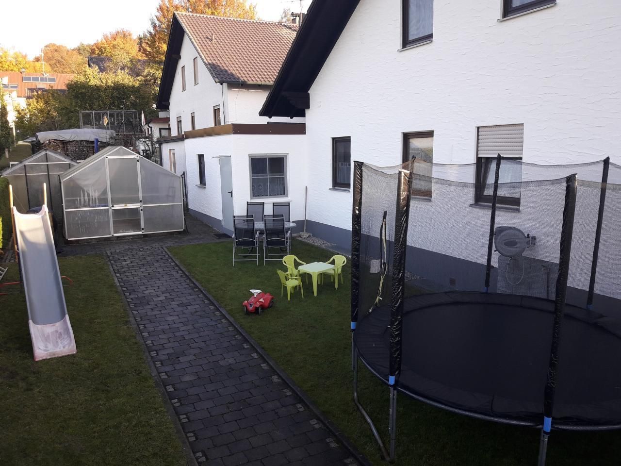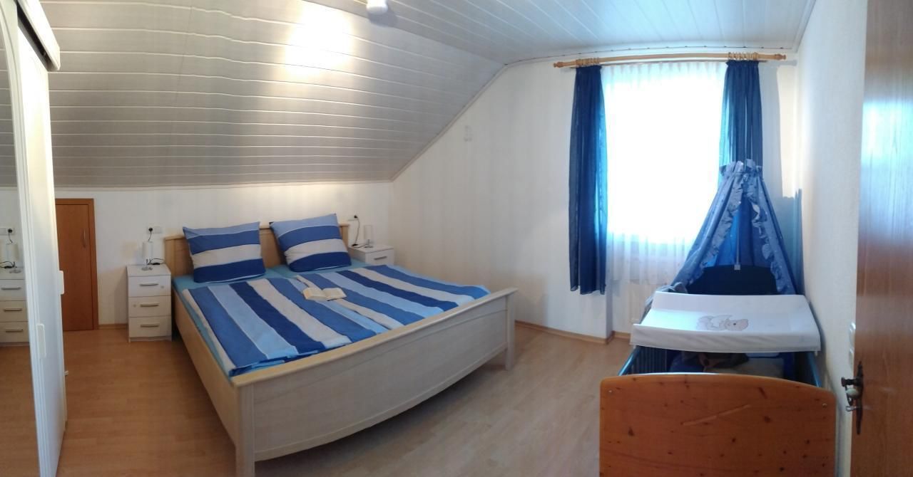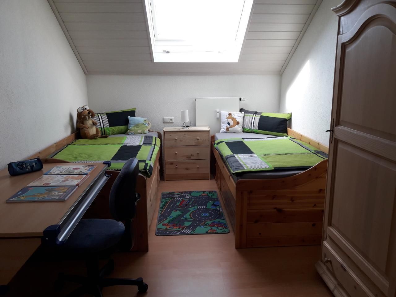 Anreise nach Absprache !Keine Vermietung an Monteure !!In unserer einladenen, kinderfreundlichen Ferienwohnung erwartet sie im 1.OG unseres ruhig gelegenen Wohnhauses auf 85 qm genügend Raum zum Wohlfühlen. Zur Ausstattung gehören eine komplett eingerichtete Küche, die offen zu Gemütlichen Wohn-und Esszimmer liegt. Zwei getrennte Schlafzimmer sind zum Träumen vorgesehen. Das Bad ist mit Dusche, Wanne und Fussbodenheizung ausgestattet. Das seperate WC rundet den Sanitärbereich ab. Für die schönen Tage gibt es einen sonnigen, überdachten und möblierten Südbalkon mit Markise und ein Gartenanteil, natürlich mit Gartenmöbeln, Gasgrill und div. Spielgeräten für die gelten jeweils die neuesten gesetzlichen Hygienebestimmungen!!KurzbeschreibungSonstiges : NichtraucherhausKurzbeschreibung 1Anzahl Küchen : 1Sonstige Räume : Esszimmer im WohnbereichWohnzimmer 1Sonstige Wohnzimmerausstattung : grosser Wohnbereich mit Flachbildfernseher und StereoanlageSchlafzimmer 1Sonstige Schlafzimmereinrichtung : Grossen Kleiderschank. 2 Bademäntel und zusätzliche Decken.Schlafzimmer 2Sonstige Schlafzimmereinrichtung : Kleiderschrank,Schreibtisch,Spielsachen und zusätzliche Decken.Badezimmer 1Sonstige Badezimmereinrichtung : Fussbodenheizung, Kosmetikspiegel, Waschmaschine,Trockner, Handtücher, Badetücher, HockerKüche 1Sonstige Kücheneinrichtung : Komlett ausgestattete Einbau-Küche mit Besteck, Geschirr und Kochuttensilien. Mikrowelle,Geschirrspüler, EierkocherUmgebungLeihmöglichkeiten : AutovermietungSportmöglichkeiten in der Umgebung : Basketball, Bolzplatz, Golfplatz, Radtouren, Surfen, , WasserskiUmgebung 1Ausflugsmöglichkeiten : LEGOLAND; WALDSEILGARTEN; MUSEUM; SKYLINE PARK USW Prospekte von weiteren Zielen vor Ort ausgelegt..Ortsbeschreibung : ruhige, naturnahe LageGarten und AußenanlagenFreizeiteinrichtungen am Objekt : TischtennisGartenausstattung : Gartenmöbel vorhanden, Grill, SpielgeräteServiceleistungenServiceleistungen (ggfs. kostenpflichtig) : GetränkeserviceServiceleistungen 1Sonstiges : Zur Begrüßung stellen wir Ihnen einen kleinen Korb mit regionalen Brotzeitspezialitäten kostenfrei zum Verzehr.