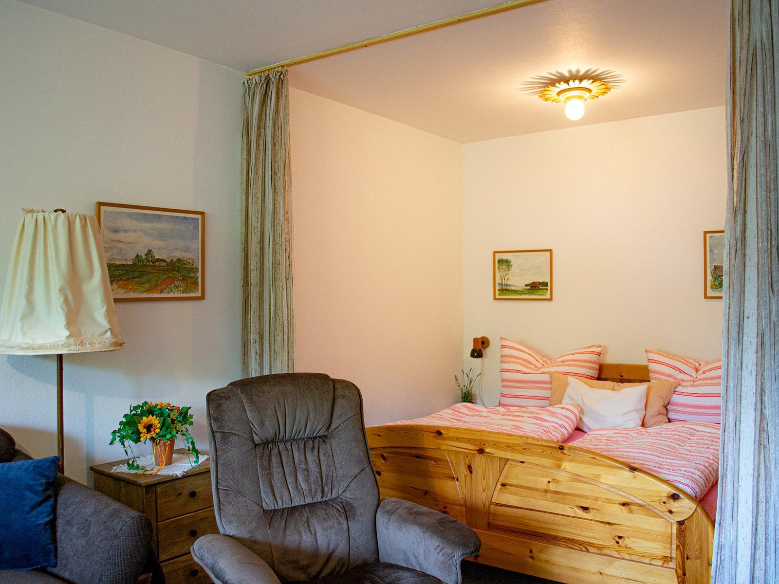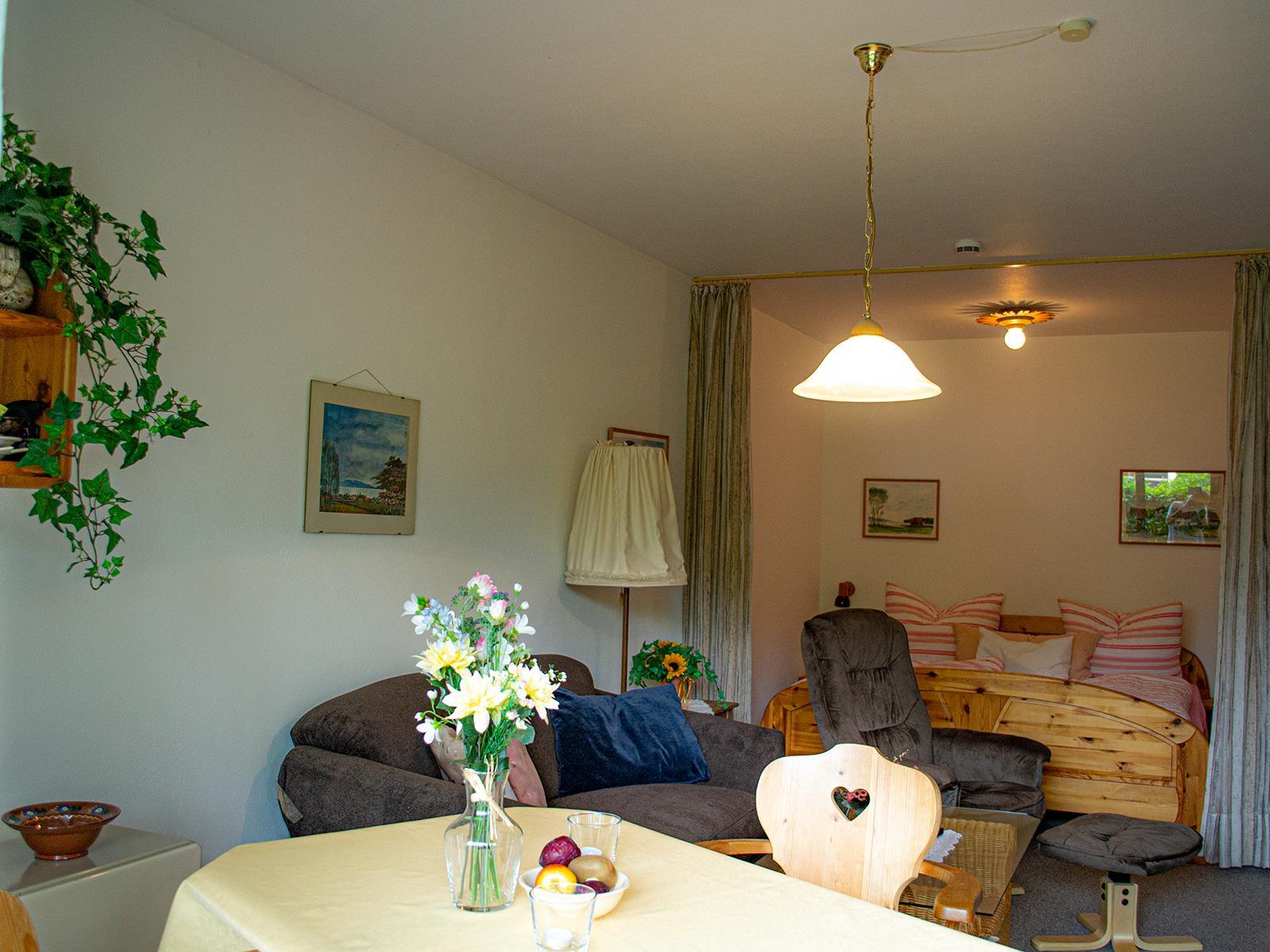 Eine kleine liebevoll eingerichtete Wohnung, ca 38qm, mit Terrasse. Die Wohnung hat kein separaten Schlafraum das Doppelbett steht in einer Nische und ist mit einem Vorhang vom Wohnraum abgetrennt. Sie verfügt über eine kleine voll ausgestattete Küche, ein Wohnzimmer mit Essecke und ein Bad mit Dusche und WC. Ein Flachbild- TV und eine Musikanlage.