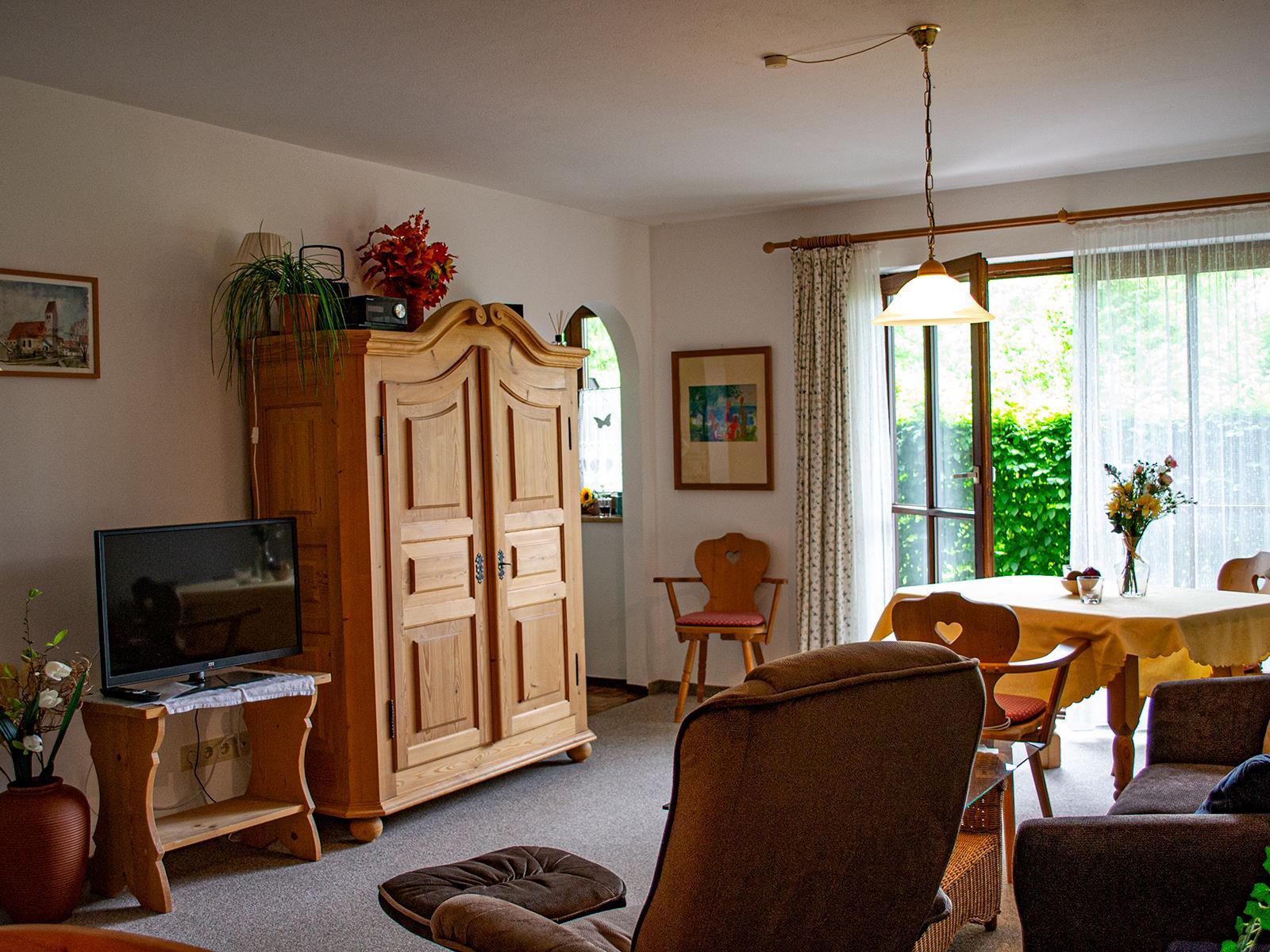 Unser Appartement liegt im Kurgebiet von Bad Bayersoien, umrahmt von grünen Wiesen. Der Blick zum Soier See und in die Ammergauer Berge lädt zum Träumen ein. Alle Wohnungen sind individuell und gemütlich so richtig zum Wohlfühlen eingerichtet und haben Balkon oder Terrasse. Auf der Sonnenterrasse können Sie nach einem Spaziergang perfekt entspannen. Zu gemütlichen Stunden am Abend lädt unser Grillplatz ein. Für mehr Informationen über unser Haus steht Ihnen unsere Homepage gern zu Verfügung.
