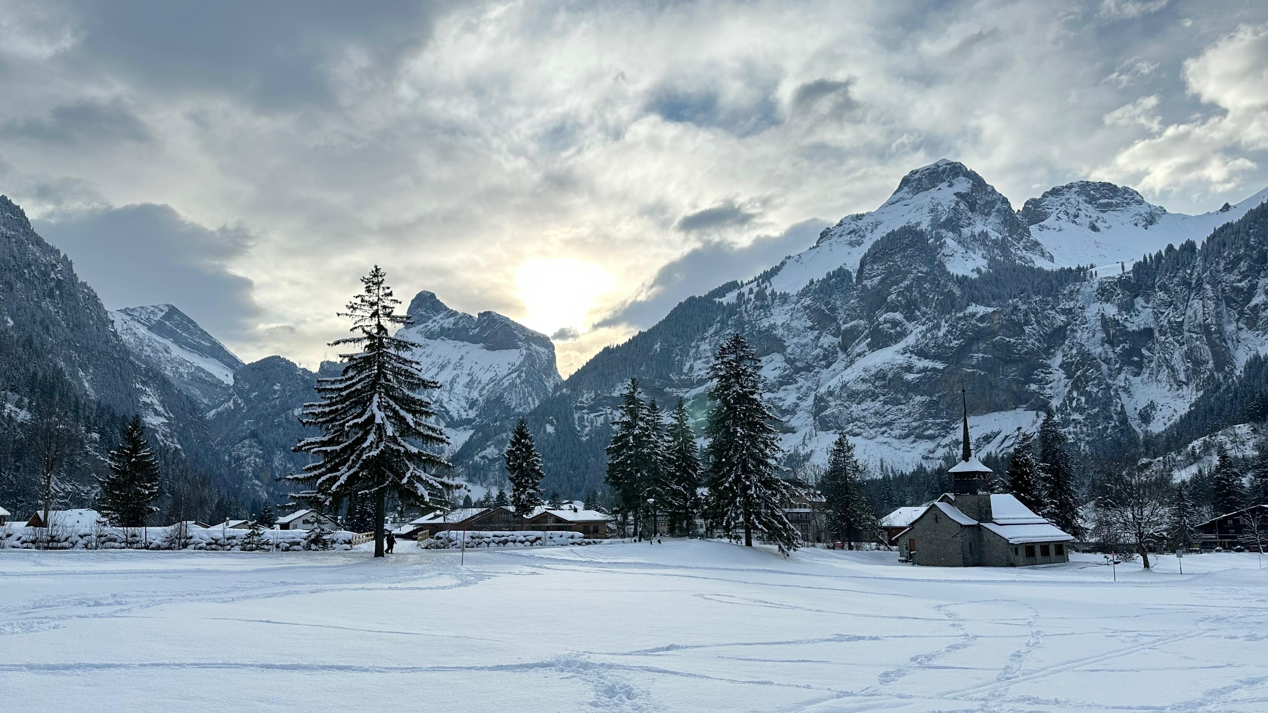 Schöne, sonnige 4-Zimmerwohnung im Hochparterre des Chalet Dollhay am Waldrand gegen Talstation Gondelbahn zum Öschinensee, 5 Gehminuten entfernt vom Dorfzentrum: