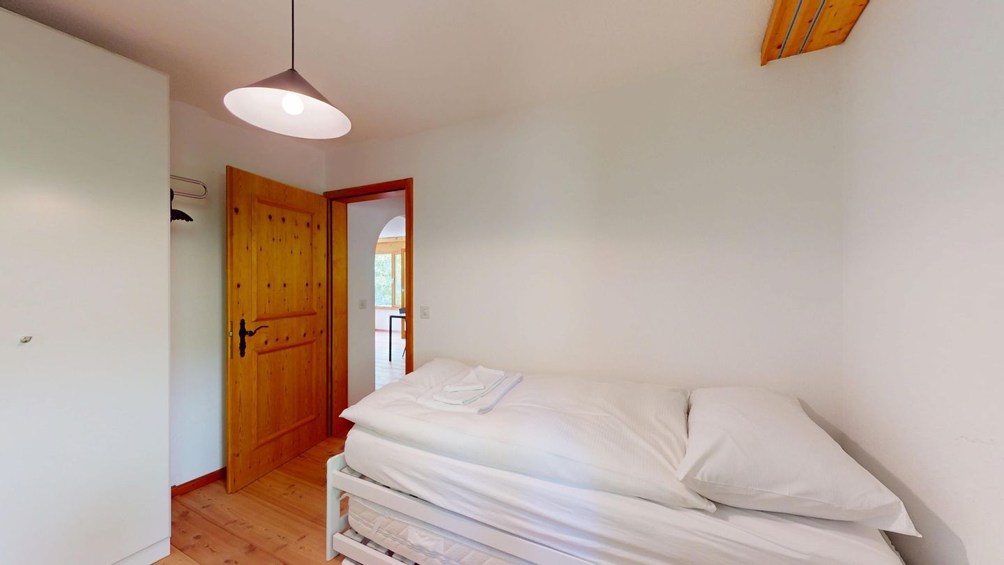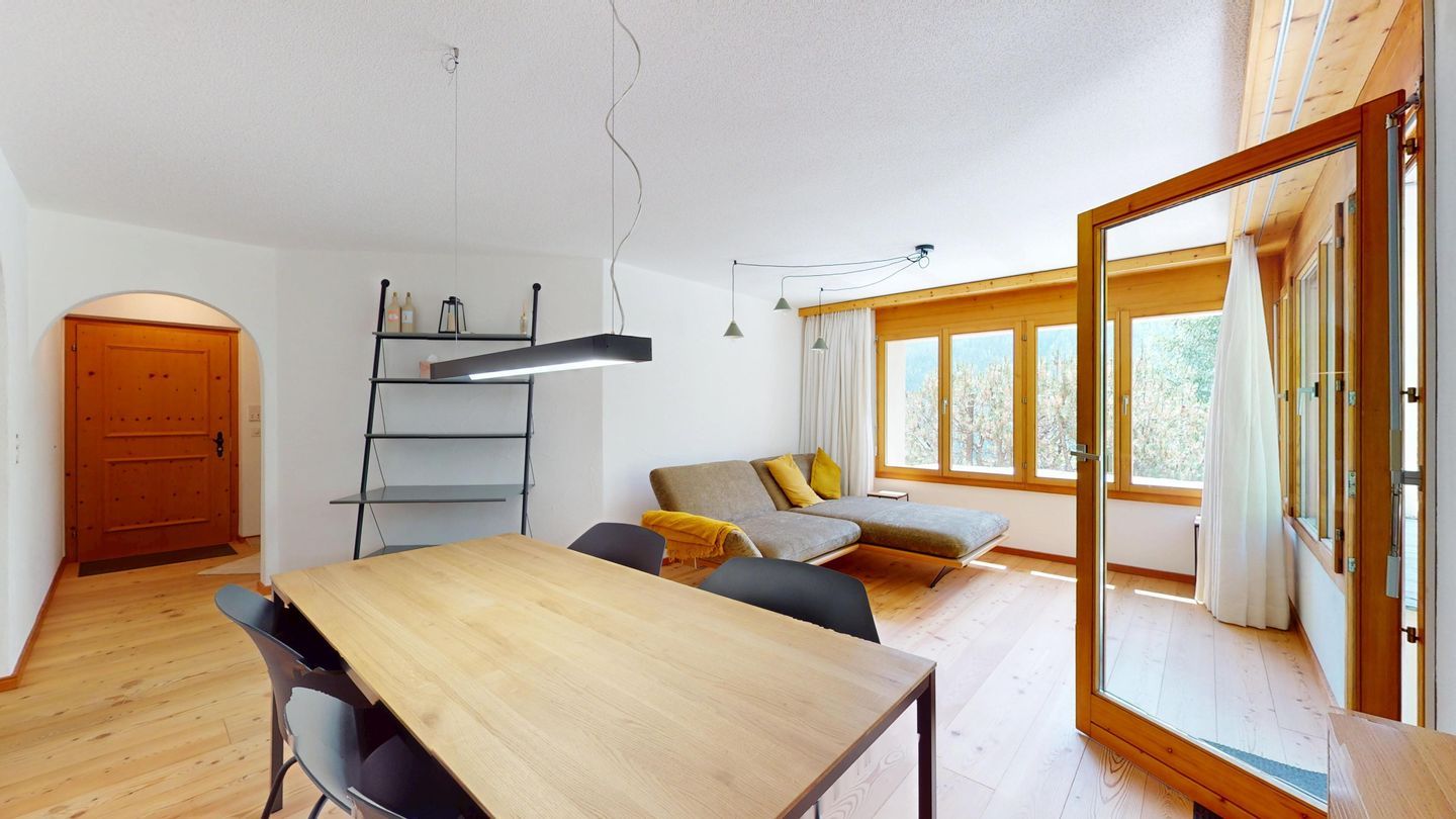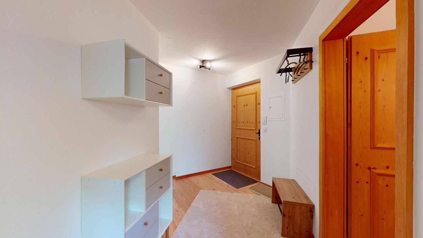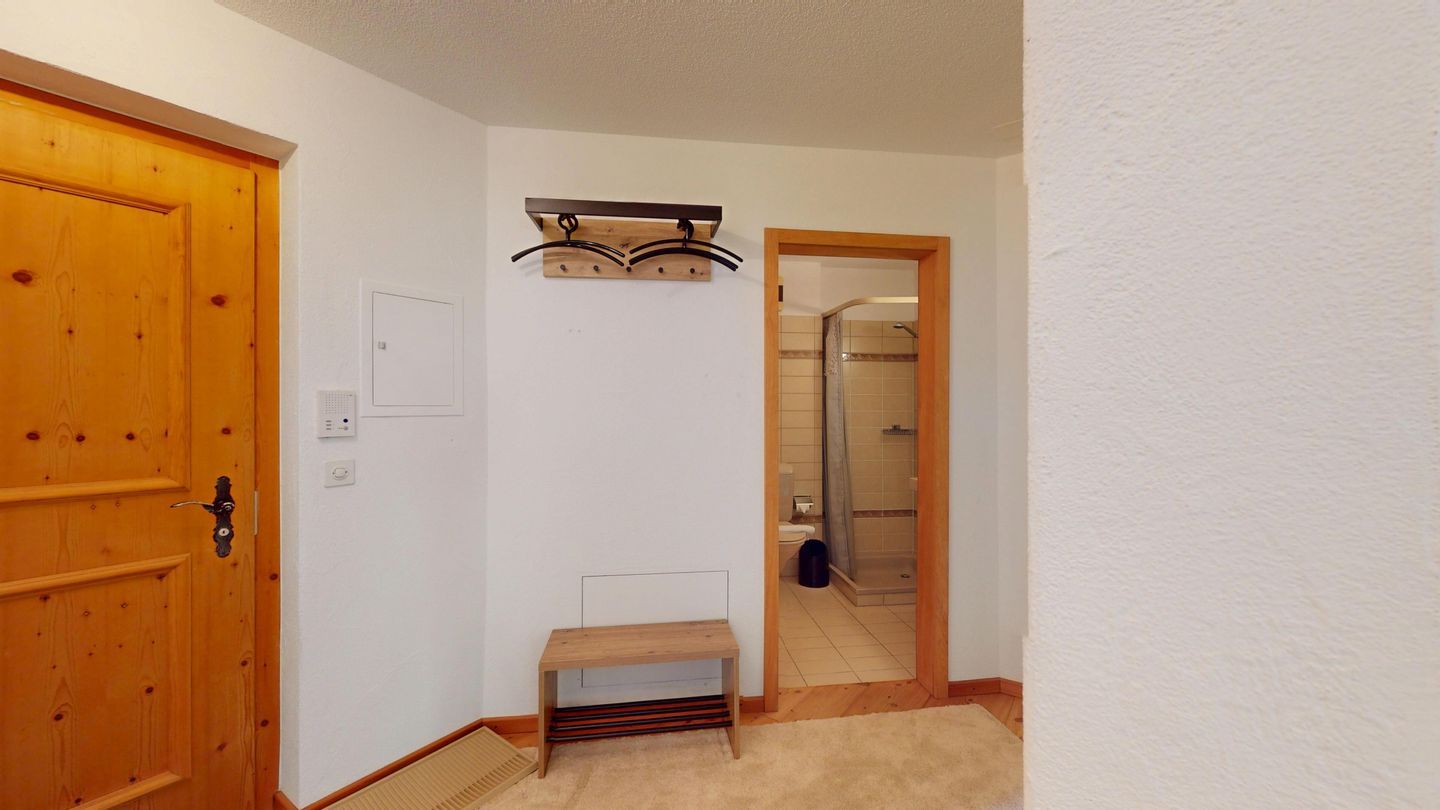 3½-Zimmerwohnung im 1. Stock. Eingang mit Garderobe. Wohnzimmer mit Esstisch, Sofaecke und Ausgang auf die Terrasse mit Blick in die Berge. Internet, kein Fernseher. Ein Doppelschlafzimmer und ein Schlafzimmer mit zwei Einzelbetten. Ein Badezimmer mit Wanne, WC, Lavabo und Fenster. Geschlossene Küche mit Kühlschrank/Gefrierfach, Backofen, Chicco d'Oro Kaffeemaschine, Geschirrspülmaschine. Zweites Badezimmer mit Dusche, WC uns Lavabo. Ein Garagenplatz. Gemeinschaftliche Waschküche. Haustiere sind nicht erlaubt.