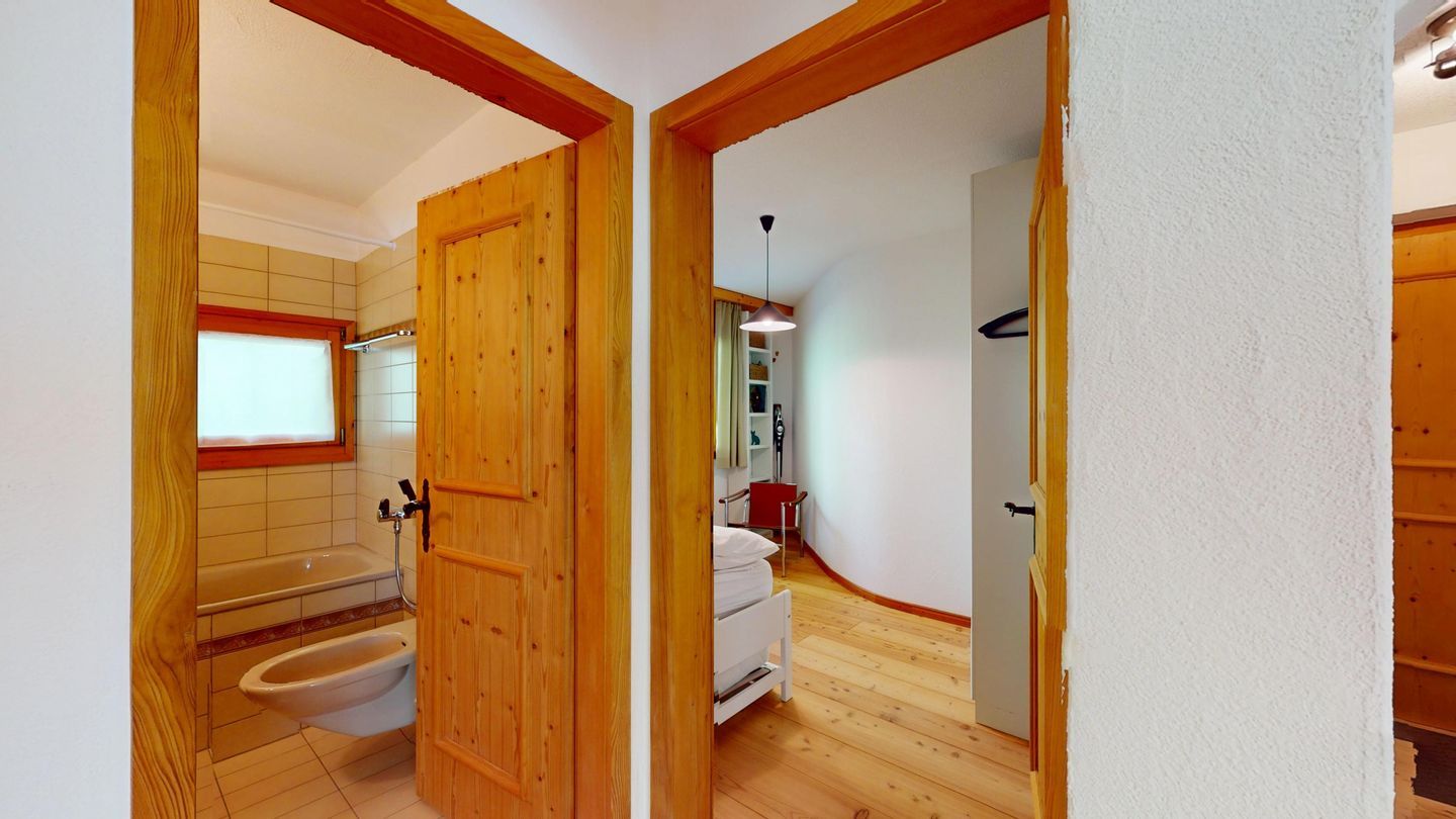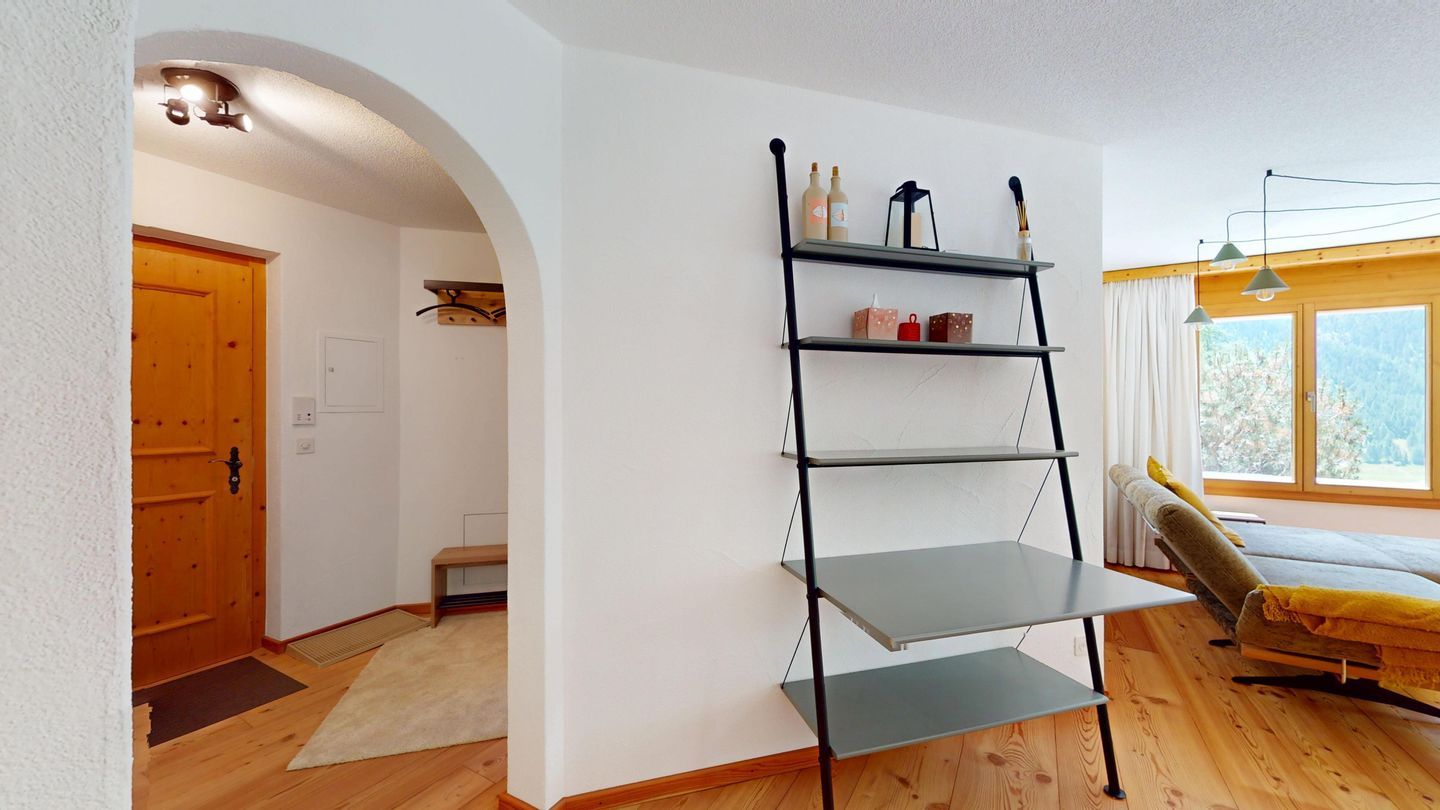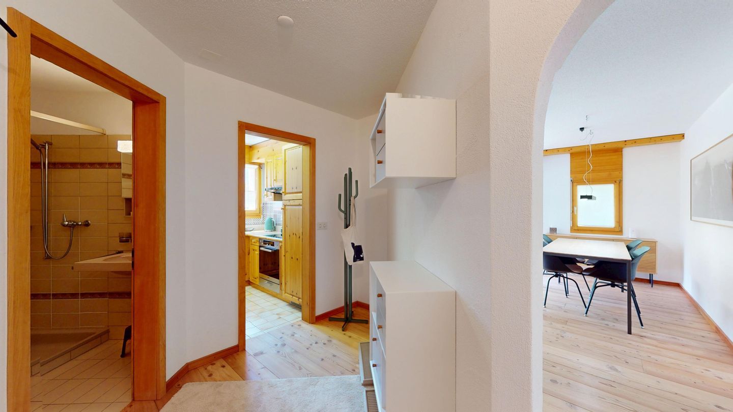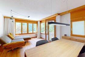 3½-Zimmerwohnung im 1. Stock. Eingang mit Garderobe. Wohnzimmer mit Esstisch, Sofaecke und Ausgang auf die Terrasse mit Blick in die Berge. Internet, kein Fernseher. Ein Doppelschlafzimmer und ein Schlafzimmer mit zwei Einzelbetten. Ein Badezimmer mit Wanne, WC, Lavabo und Fenster. Geschlossene Küche mit Kühlschrank/Gefrierfach, Backofen, Chicco d'Oro Kaffeemaschine, Geschirrspülmaschine. Zweites Badezimmer mit Dusche, WC uns Lavabo. Ein Garagenplatz. Gemeinschaftliche Waschküche. Haustiere sind nicht erlaubt.
