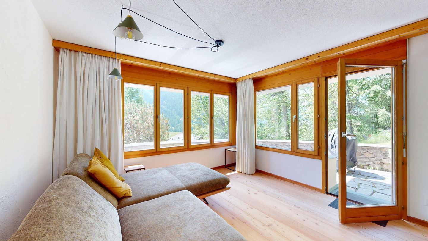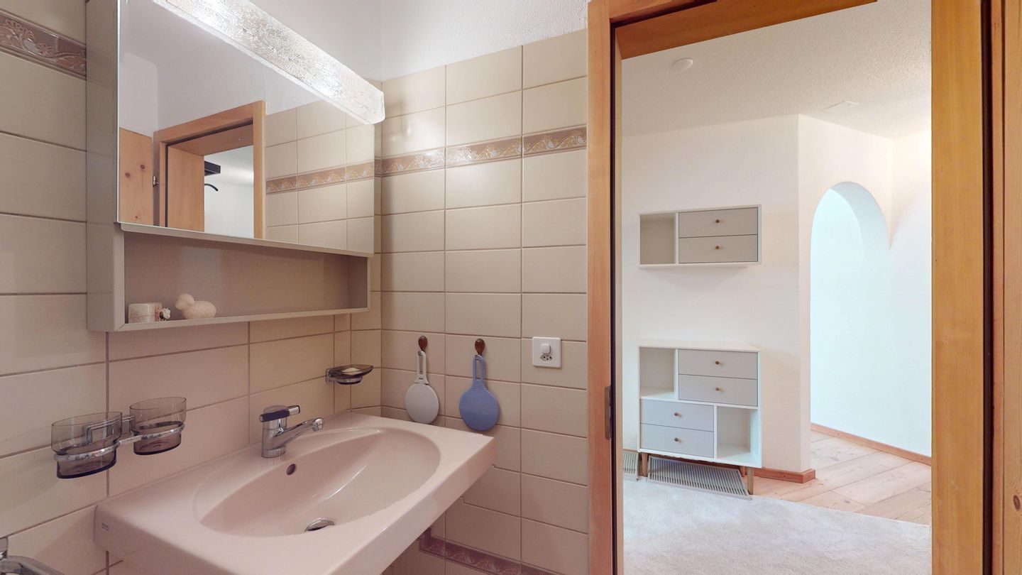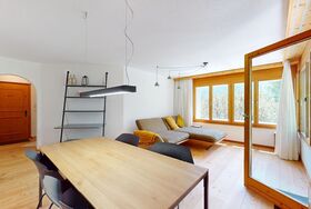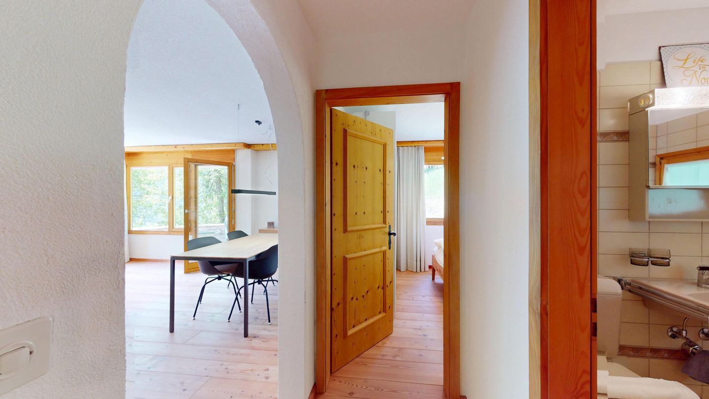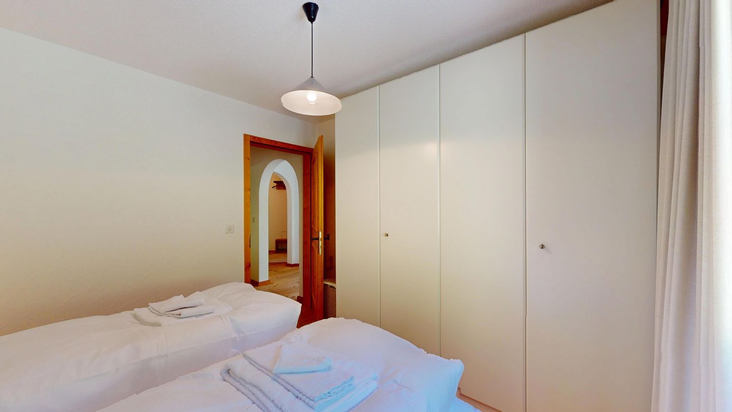 3½-Zimmerwohnung im 1. Stock. Eingang mit Garderobe. Wohnzimmer mit Esstisch, Sofaecke und Ausgang auf die Terrasse mit Blick in die Berge. Internet, kein Fernseher. Ein Doppelschlafzimmer und ein Schlafzimmer mit zwei Einzelbetten. Ein Badezimmer mit Wanne, WC, Lavabo und Fenster. Geschlossene Küche mit Kühlschrank/Gefrierfach, Backofen, Chicco d'Oro Kaffeemaschine, Geschirrspülmaschine. Zweites Badezimmer mit Dusche, WC uns Lavabo. Ein Garagenplatz. Gemeinschaftliche Waschküche. Haustiere sind nicht erlaubt.