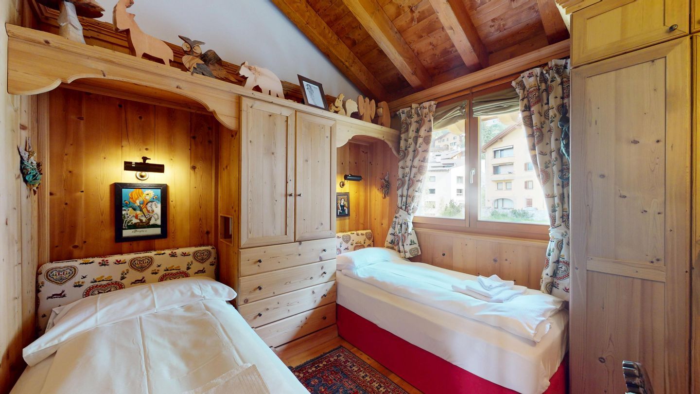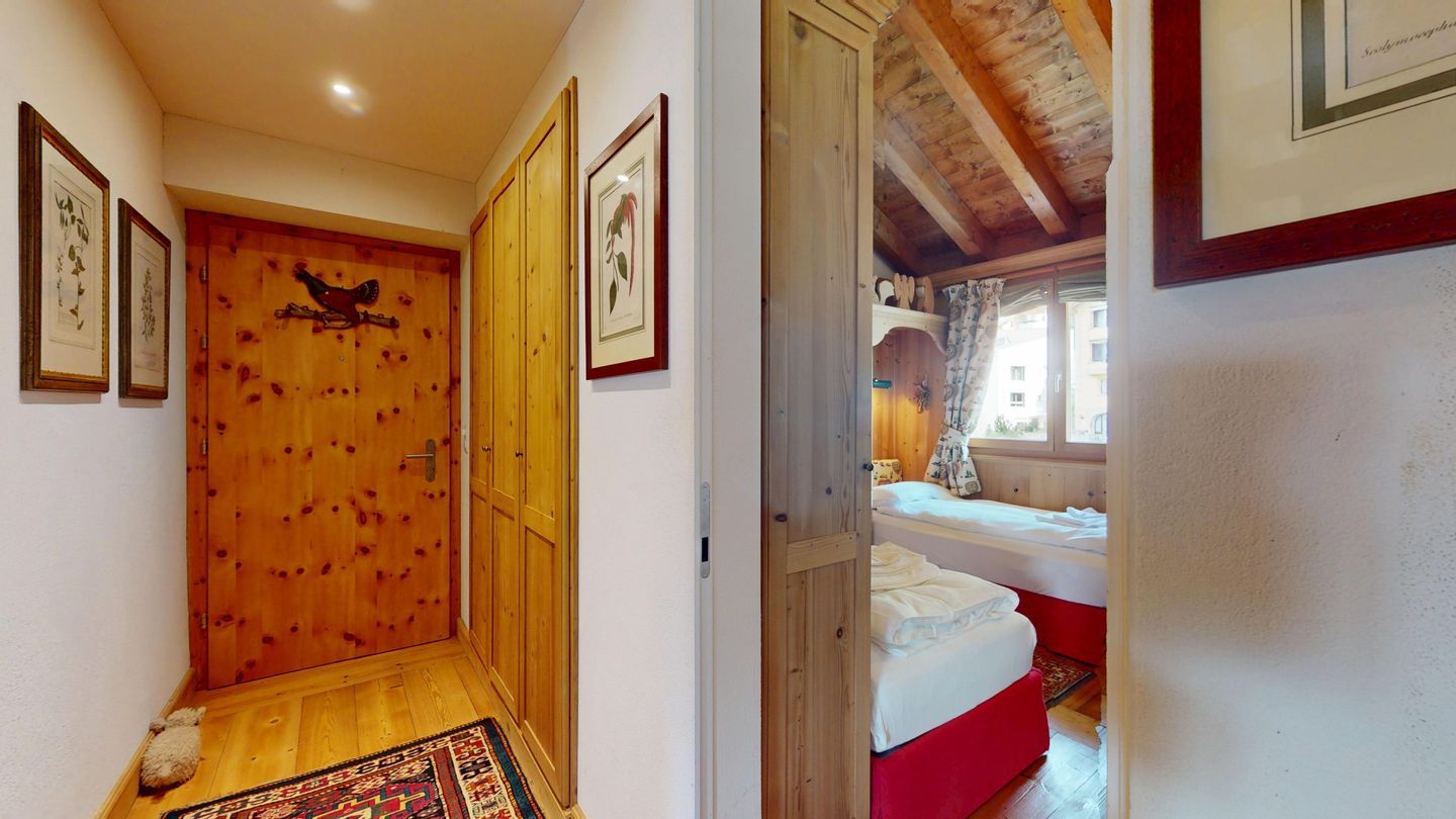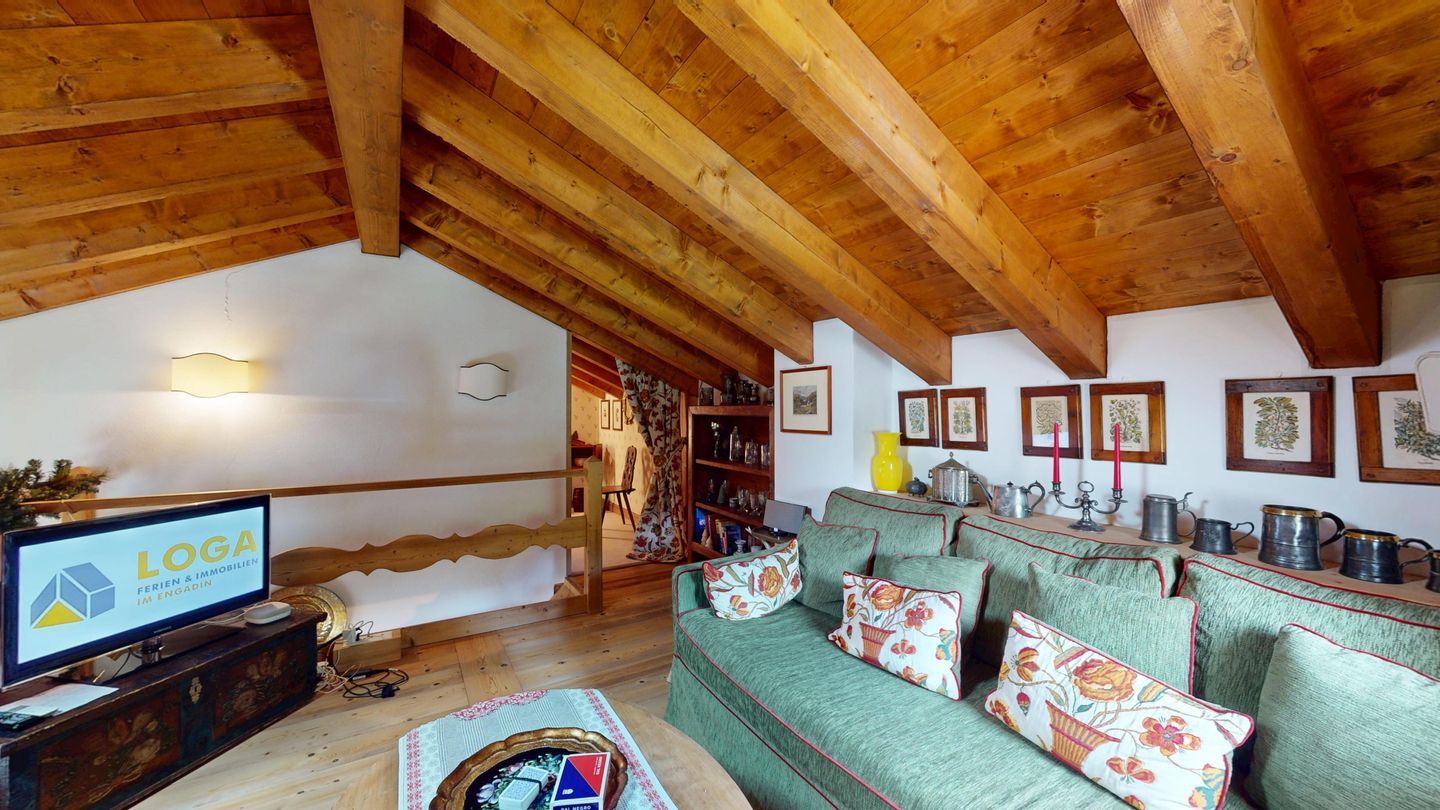 3½ - Zimmer-Duplexwohnung, ca. 105m², im OG/DG, mit Galerie, an ruhiger Lage mit schöner Bergsicht. Wohn- und Esszimmer mit Balkon und Sicht ins Roseg Tal und zur Julierkette. Geschlossene Küche mit Geschirrspüler und Backofen. Kaffeemaschine Chicco d'Oro. Ein Doppelzimmer mit eigenem Bad mit Wanne, WC, Lavabo und Bidet. Zweites Schlafzimmer mit zwei Einzelbetten. Badezimmer mit Bad mit Dusche, WC und Bidet. Auf der offenen Galerie befindet sich ein weiterer Wohnraum mit Sofa und TV. Keine Waschmöglichkeit. Zwei Garagenplätze. Ski- und Veloraum zur Mitbenützung. Nichtraucherwohnung. Haustiere sind nicht erlaubt.