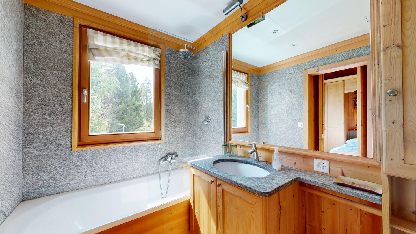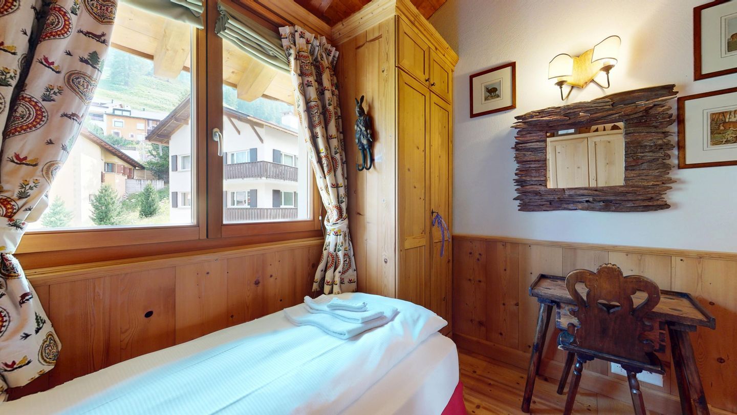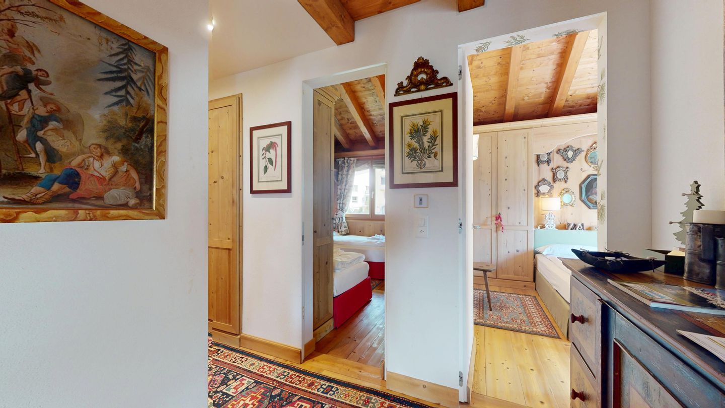 3½ - Zimmer-Duplexwohnung, ca. 105m², im OG/DG, mit Galerie, an ruhiger Lage mit schöner Bergsicht. Wohn- und Esszimmer mit Balkon und Sicht ins Roseg Tal und zur Julierkette. Geschlossene Küche mit Geschirrspüler und Backofen. Kaffeemaschine Chicco d'Oro. Ein Doppelzimmer mit eigenem Bad mit Wanne, WC, Lavabo und Bidet. Zweites Schlafzimmer mit zwei Einzelbetten. Badezimmer mit Bad mit Dusche, WC und Bidet. Auf der offenen Galerie befindet sich ein weiterer Wohnraum mit Sofa und TV. Keine Waschmöglichkeit. Zwei Garagenplätze. Ski- und Veloraum zur Mitbenützung. Nichtraucherwohnung. Haustiere sind nicht erlaubt.