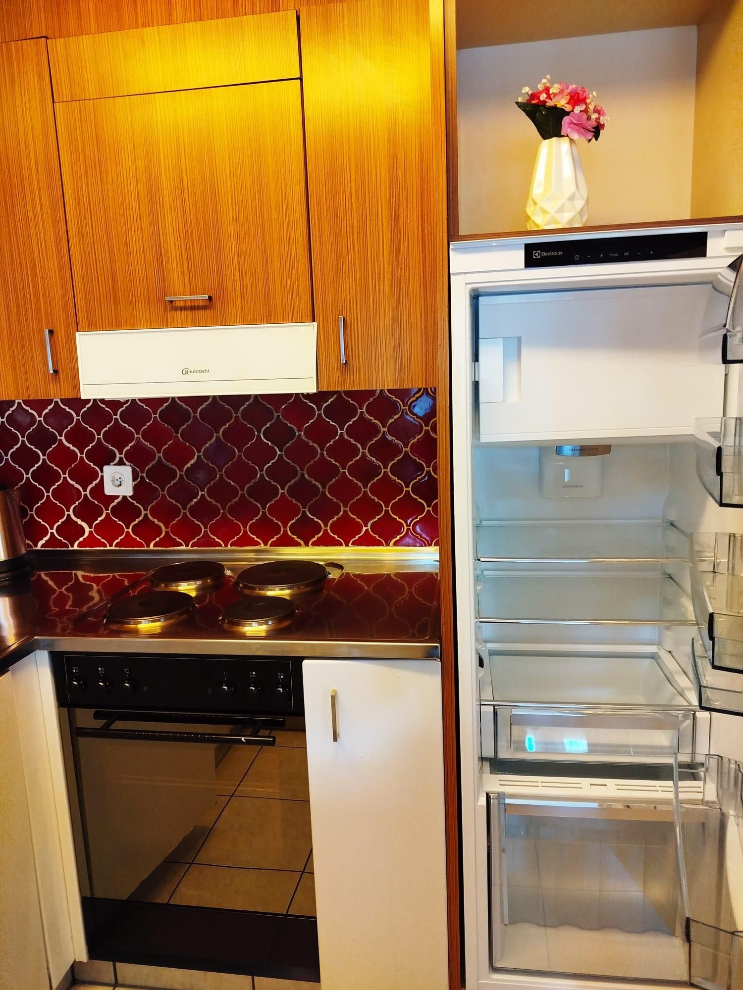Die Küche ist voll ausgestattet (Kühlschrank mit Gefrierfach, Geschirrspüler, Filterkaffeemaschine und Fondue-Set usw.). Selbstverständlich ist ein grosser Tisch mit sechs Stühlen für Sie da. Im Wohnzimmer gibt es ein grösseres Ecksofa mit Tisch und eine Wohnwand mit Flachbildfernseher.