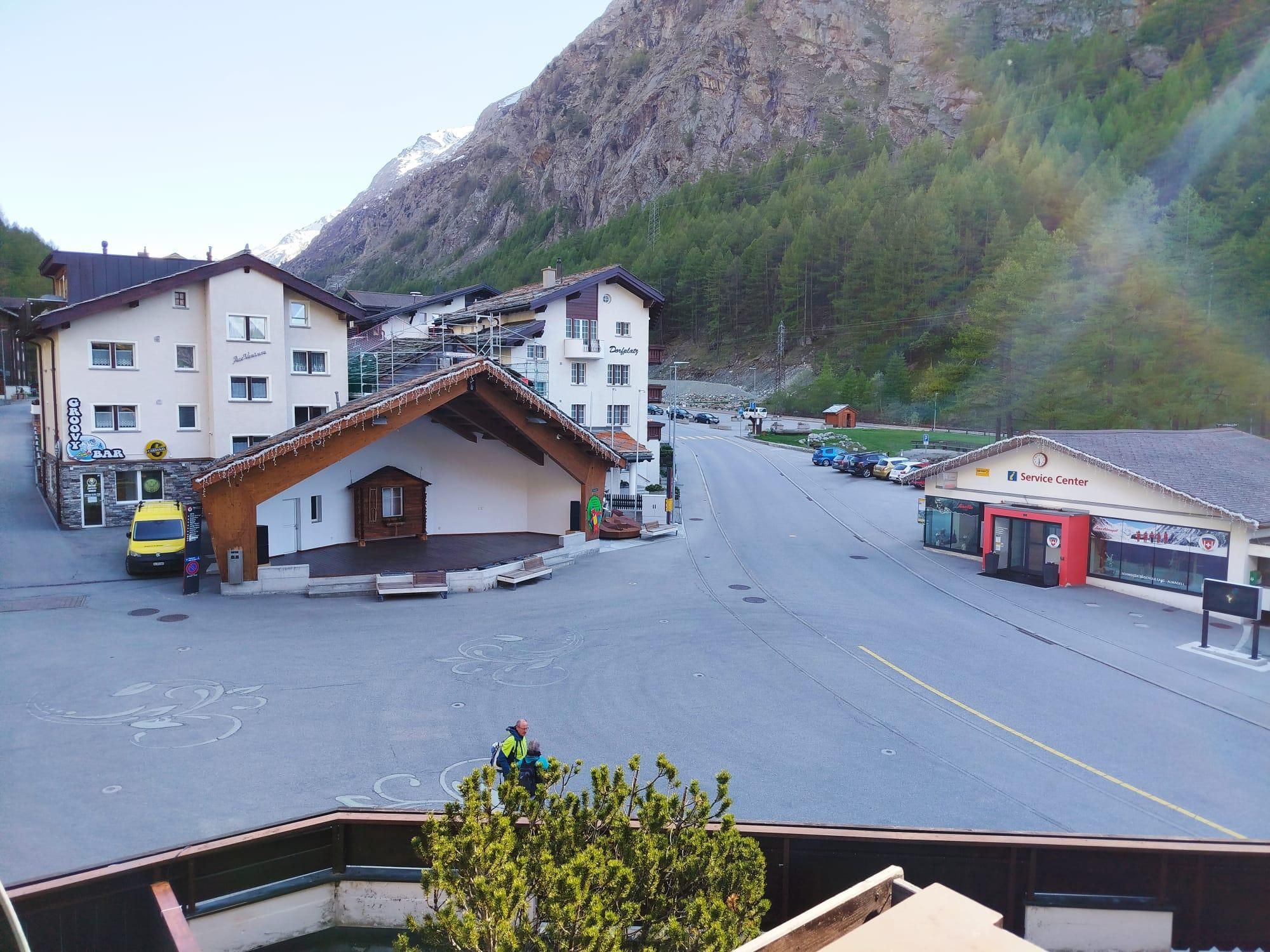 Der Parkplatz für Ihr Auto ist nur wenige Schritte entfernt. Direkt am Platz befinden sich Bushaltestellen (Richtung Mattmarksee bzw. Saas-Grund und Richtung Saas-Fee).