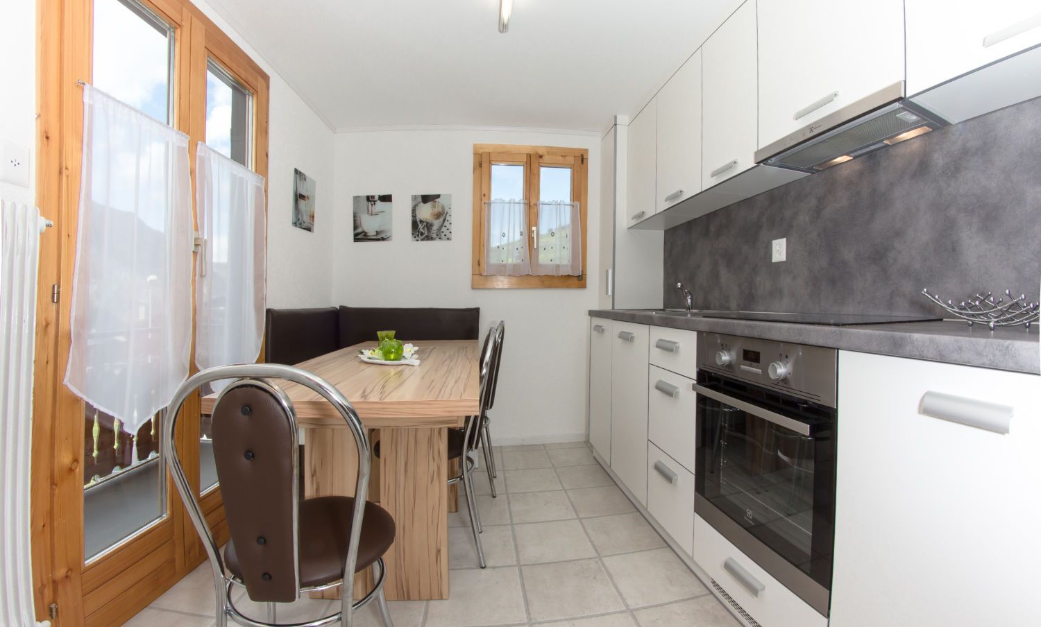 Im Haus befinden sich zwei 4-Bettwohnungen sowie zwei 2-Bettwohnung. Im Winter wird auf beiden Etage die 4 Bett und die 2 Bettwohnung zusammen vermietet. Ideal für Familien in Begleitung der Grosseltern. Falls Sie mit dem Auto anreisen, stehen Ihnen kostenlose Parkplätze direkt vor dem Haus zur Verfügung. Allenfalls befindet sich eine Bushaltestelle in unmittelbarer Nähe. Dem Wintergast steht der Skibus und ein abgeschlossener Skiraum mit Schuhwärmesystem gratis zur Verfügung. Der Sommergast kann den Rasenplatz mit Tischtennis frei nutzen. Alle Wohnungen verfügen über einen Balkon, Backofen, Geschirrspüler, Kaffeemaschine, Kühlschrank, Radio, Satelliten/Kabel TV, Internetverbindung (wireless), Nichtraucherwohnungen.