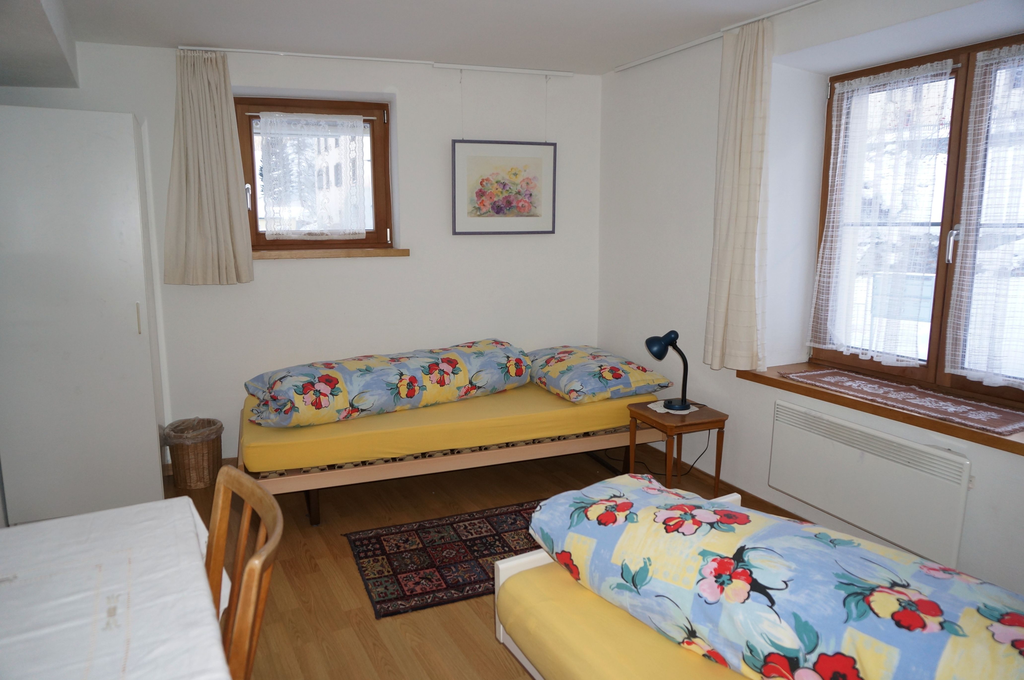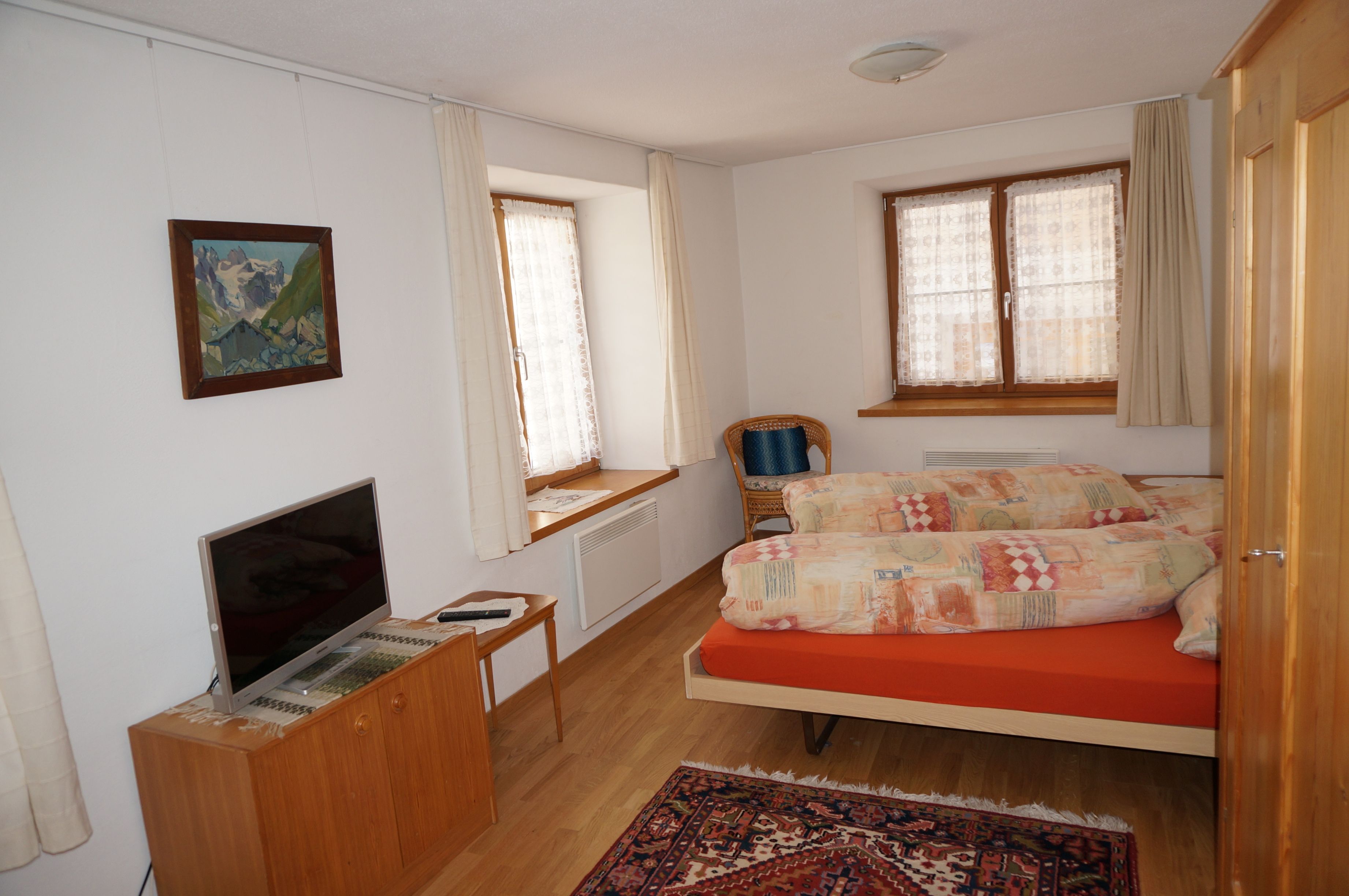 1 Doppelzimmer mit 2 Einzelbetten, Nachttischlein, Kasten, Sofa, Radio, TV, W-Lan, Elektroheizung, Parkettboden.