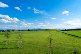 Der Kramerhof umgeben von Wiesen ist eine Ruhe-Oase zwischen München und den Alpen.