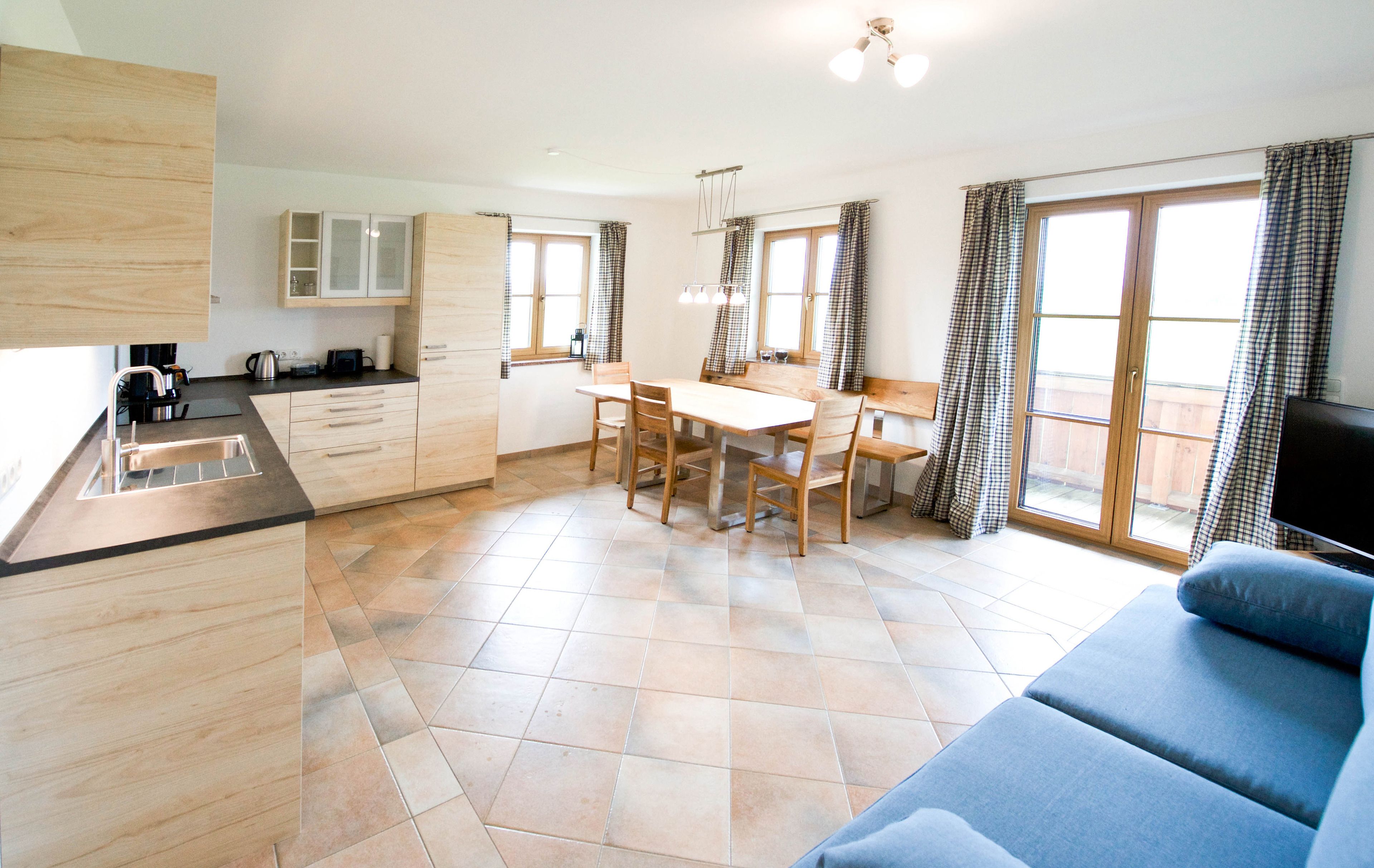Die Wohnung Zugspitze im ersten OG bietet Platz für 2-4 Personen und verfügt über eine helle Wohnküche mit großem Esstisch & Doppelschlafcouch. Komplett ausgestattete Küche zur Zubereitung eigener kulinarischer Köstlichkeiten. Schlafzimmer mit großem Doppelbett, geräumiges Bad mit Dusche/Badewanne/WC, Südbalkon mit Möbeln. Ein moderner Flachbild-Fernseher sowie kostenloses W-LAN stehen zur Verfügung.