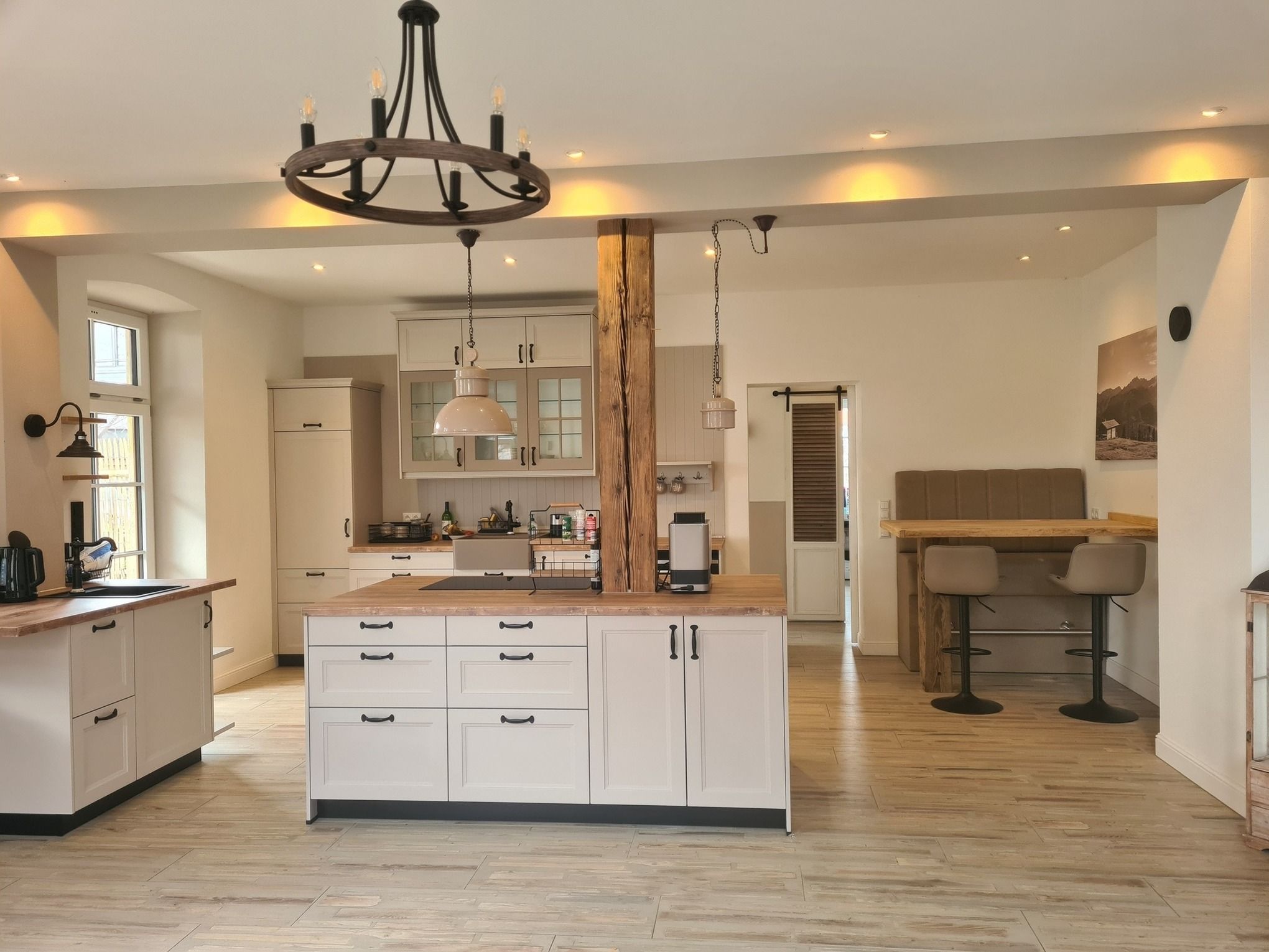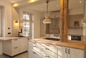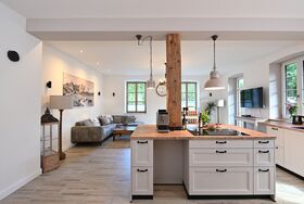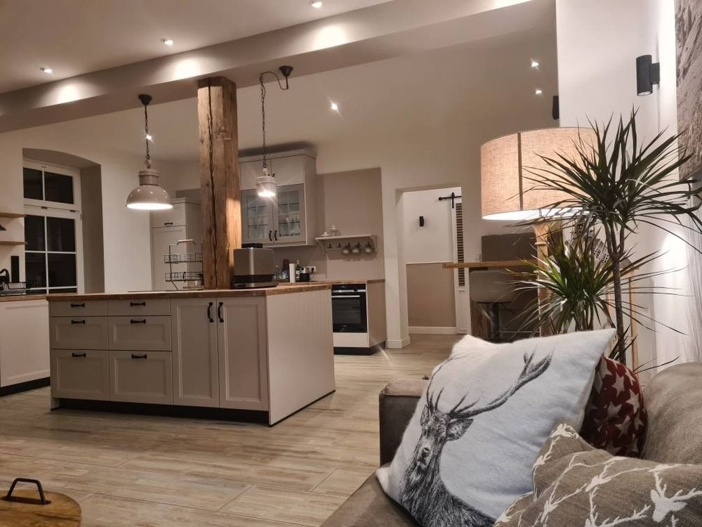 Modern trifft Gemütlichkeit - mit 135 qm Wohnfläche eine außergewöhnlich große, moderne Landhaus-Ferienwohnung mit einem offenen Raumkonzept und historischem Charme einer alten Gaststätte aus dem Jahre 1880 . Das Haus und die Wohnungen wurden in 2023/2024 aufwändig saniert.