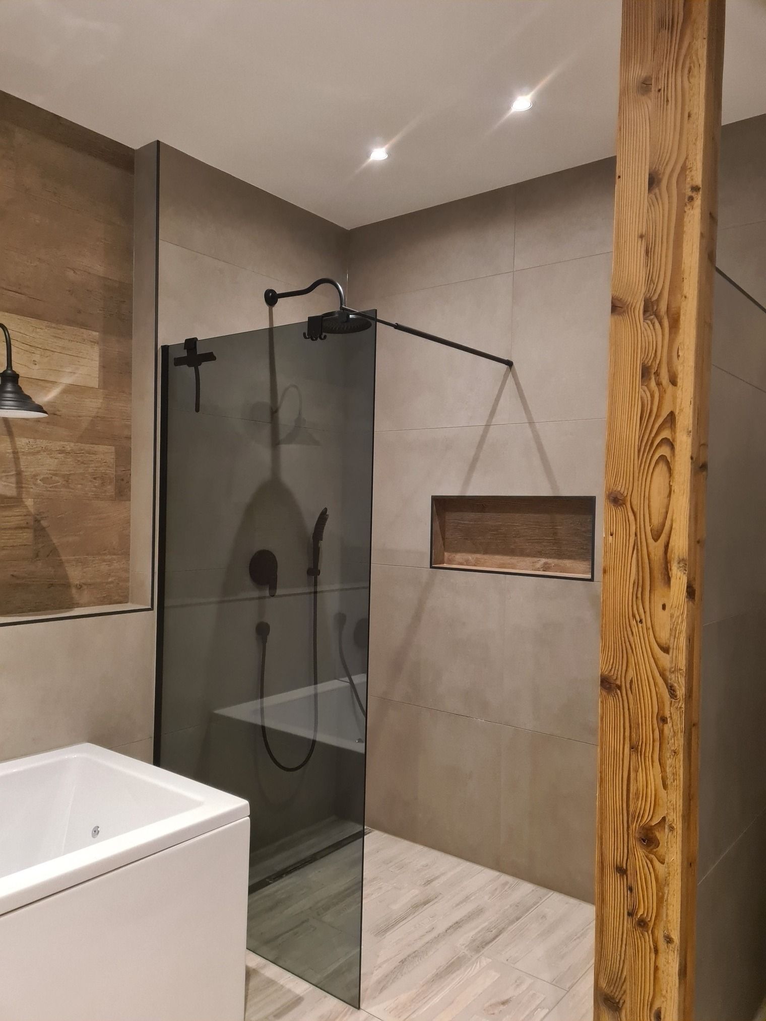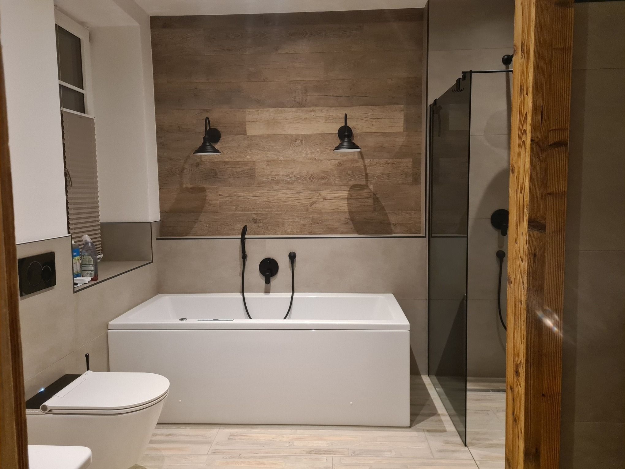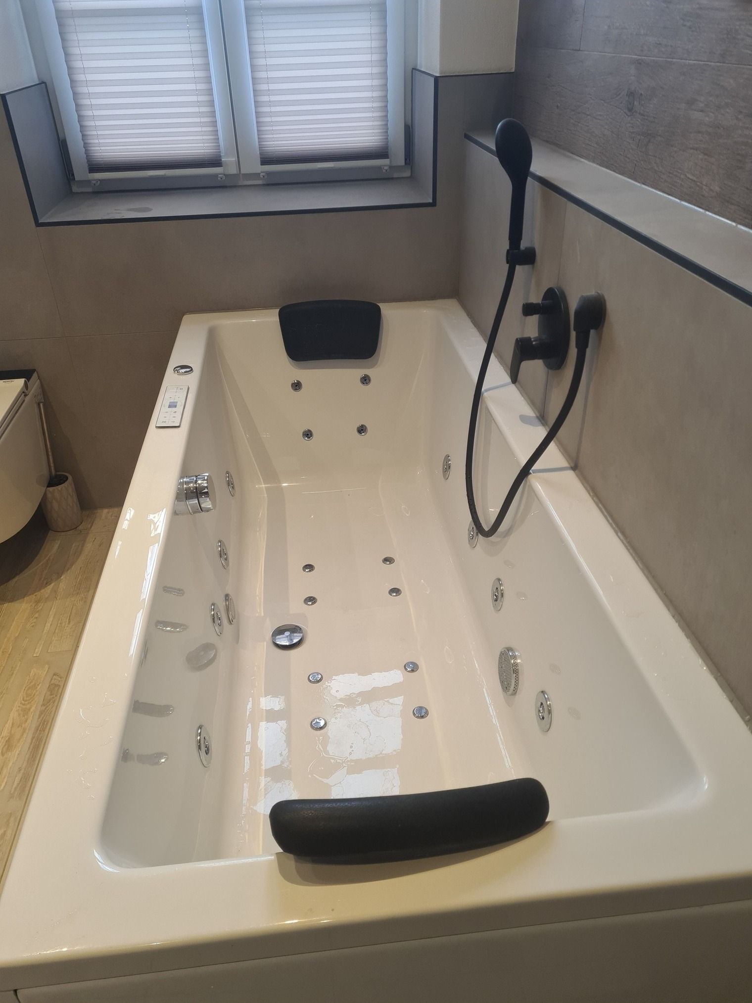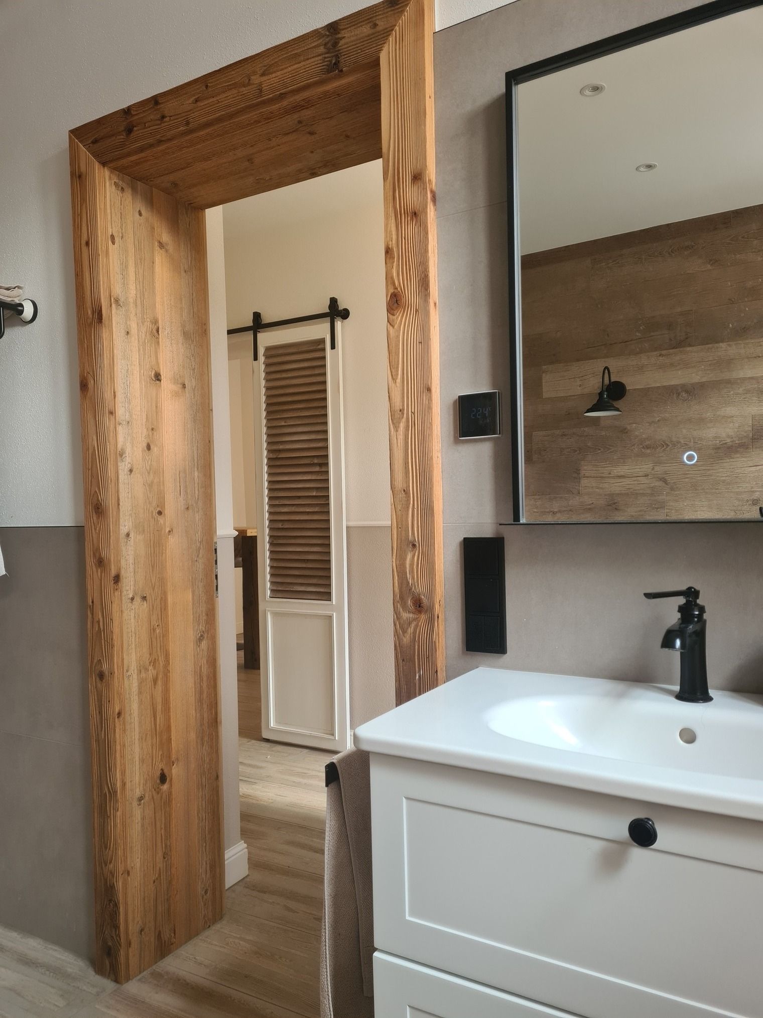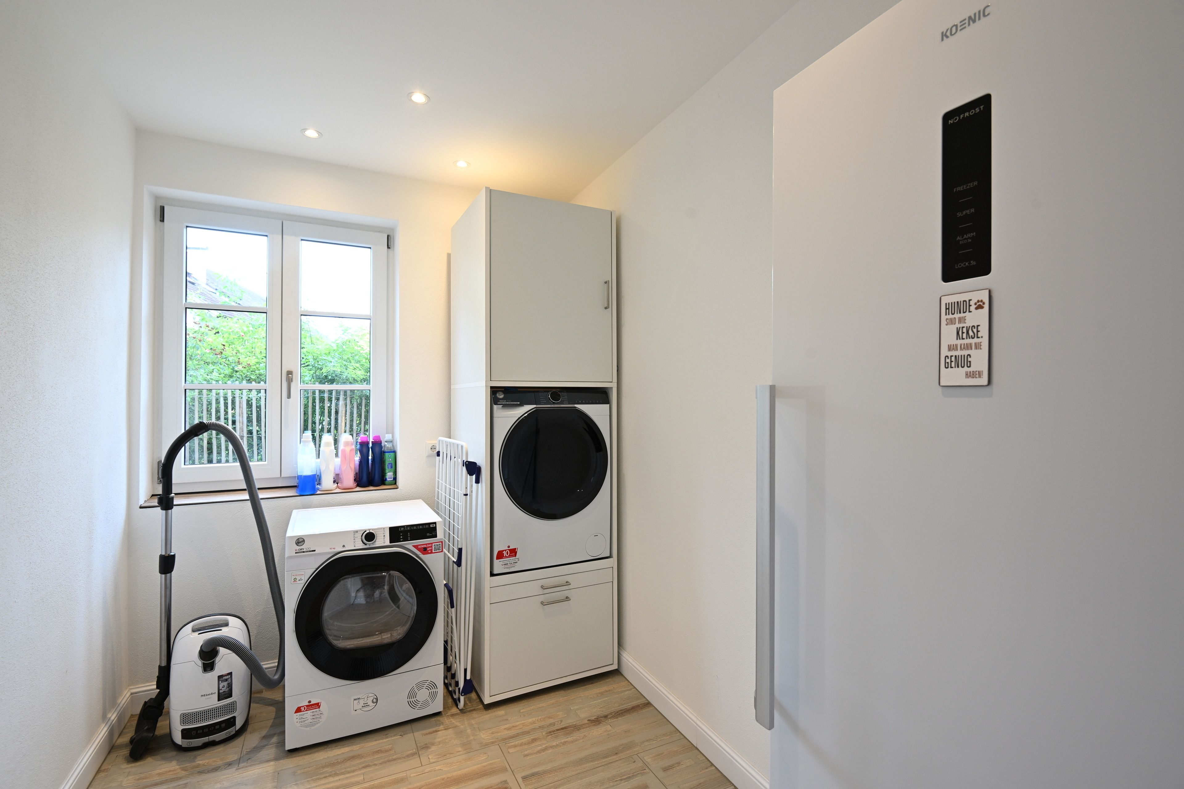 Bis auf die Schlafzimmer sind überall Fliesen verlegt mit Fußbodenheizung. Spätestens in 2026 kommt auch noch ein Ofen in den Wohnraum.