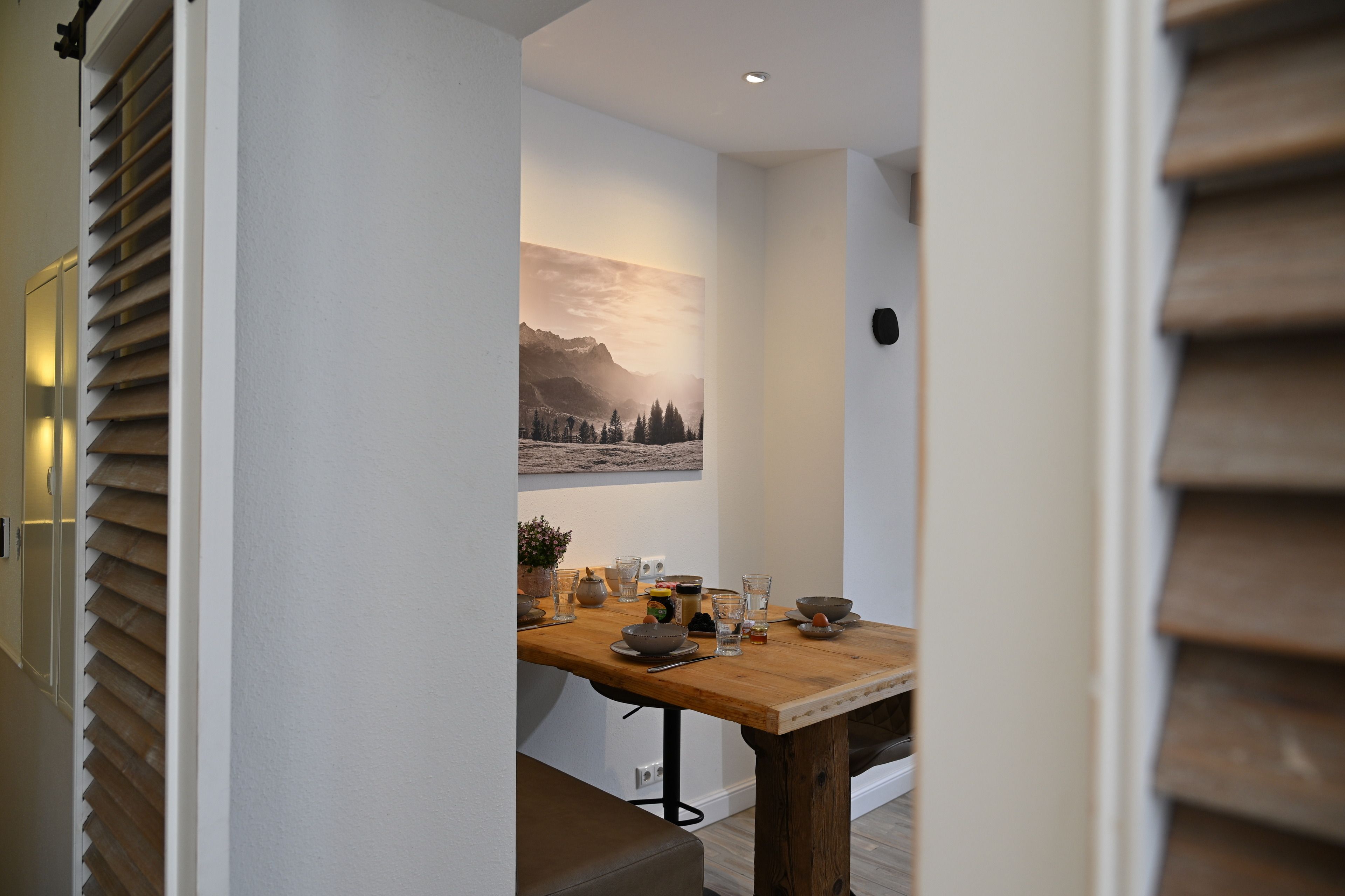 Die Wohnung bietet einen privaten Zugang vom Parkplatz in den Garten. Die gesamte Wohnung ist barrierearm. Der Tisch im Wohnzimmer ist zwar ein Hochtisch - sollte aber ein Gast mit Rollstuhl anreisen, so geben Sie mir gerne frühzeitig Bescheid, dann kann ich kann ich einen normalen Tisch in den Wohnraum schaffen - wenn gewünscht.