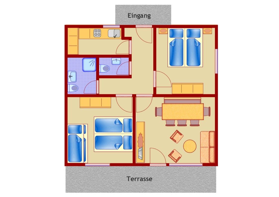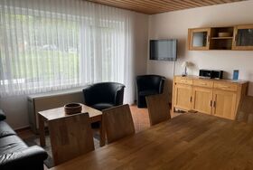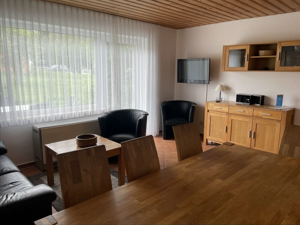 Ideal für einen erholsamen Familienurlaub mit Kindern: Restaurant, Spielehaus, Freibad, Bolzplatz und Abenteuerspielplatz sind fußläufig erreichbar. Das komplett renovierte und möblierte Haus bietet eine sonnige Südterrasse mit Markise, Grillmöglichkeit und angrenzender Wiese mit Sonnenliegen und Gartenmöbeln. Der Wohn- und Essbereich ist mit einer großen Essecke aus massivem Eichenholz für bis zu sechs Personen ausgestattet, zusätzlich stehen Kabelfernsehen mit Full-HD-LED-TV, Stereo-Radio und Spielesammlung zur Verfügung. Die Schlafzimmer bieten Platz für insgesamt sechs Personen, darunter ein Raum mit Doppelbett und Etagenbett sowie ein weiteres Schlafzimmer mit Doppelbett und eigenem Fernseher. Die neue Einbauküche ist ausgestattet mit Backofen, Cerankochfeld, Mikrowelle, Geschirrspüler, Kühlschrank mit 3*-Gefrierfach, Toaster und Kaffeemaschine. Eine eigene Waschmaschine befindet sich im Abstellraum. Das neu renovierte Badezimmer verfügt über eine große Dusche und WC, zusätzlich ist ein separates Gäste-WC mit Waschgelegenheit vorhanden. Schnelles WLAN steht im gesamten Haus zur Verfügung. Neu sind die zusätzliche Dusche im Bad, ein weiterer Fernseher im Schlafzimmer sowie neue, wärmeisolierende Fenster im gesamten Haus. Hunde sind erlaubt.
