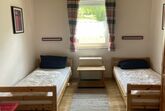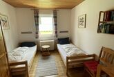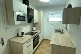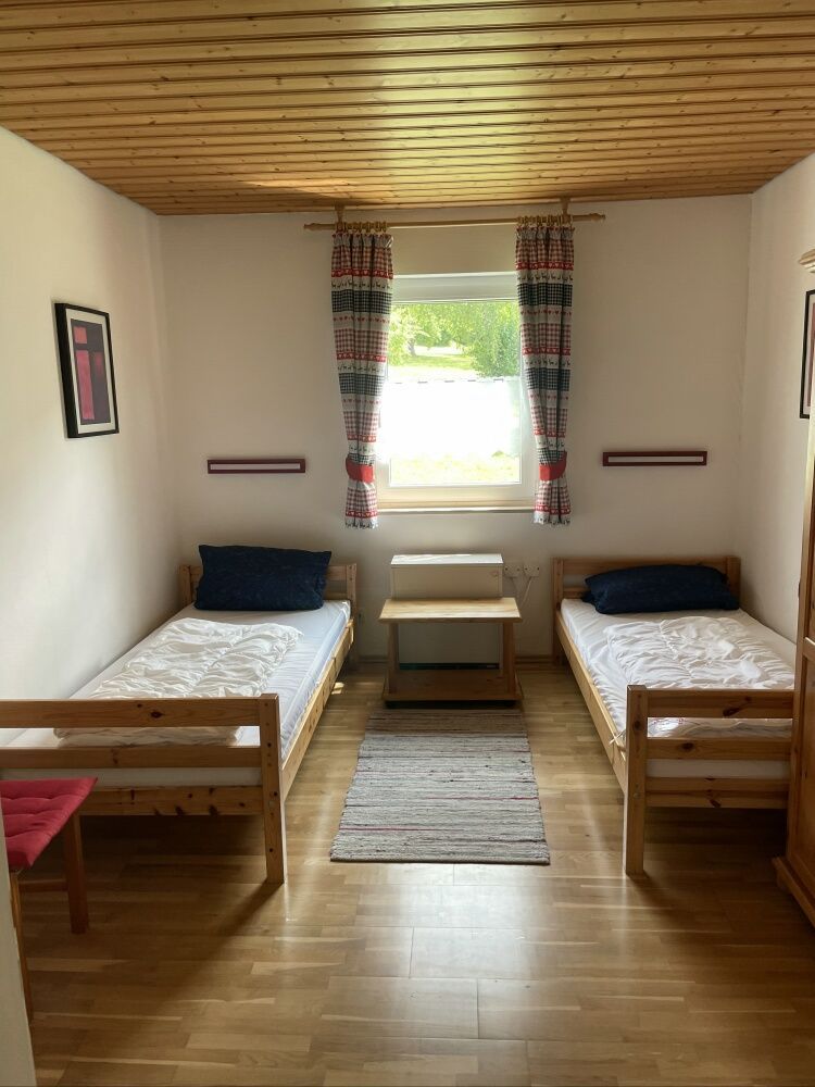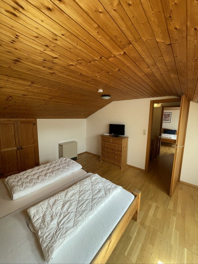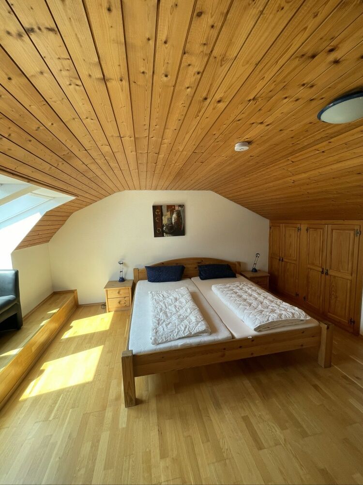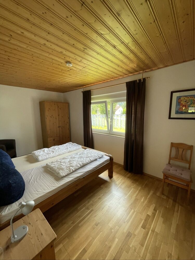 Alle drei Schlafzimmer im EG sind mit Eiche-Massivholzparkett ausgestattet. Im Obergeschoss befinden sich zwei weitere Schlafzimmer mit neuen Massivholz-Doppelbetten, Holzparkett und je einem eigenen Fernseher. Die renovierte Küche ist mit neuen Möbeln und Geräten ausgestattet: Cerankochfeld, Backofen, Mikrowelle, Geschirrspüler, großer Kühlschrank mit Gefrierfach, Kaffeemaschine sowie vollständige Ausstattung für mehr als 8 Personen. Das Wohnzimmer verfügt über eine gemütliche Essecke mit Eckbank, Polstergarnitur und HD-Flachbildfernseher, der zentral einsehbar ist, sowie Stereoanlage. Ein elektrisch beheizter Kachelofen sorgt für angenehme Atmosphäre, beheizt wird mit Nachtspeicheröfen. Eine Garage und vier Stellplätze stehen am Eingang zur Verfügung. Schneller Internetzugang mit ca. 55Mbit/s ist vorhanden. Haustiere sind erlaubt.