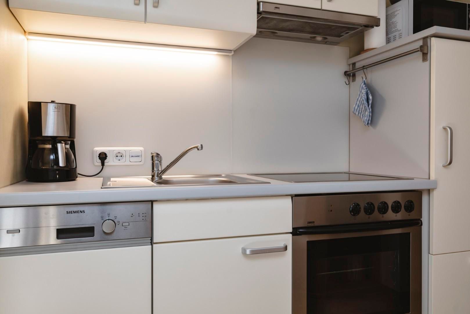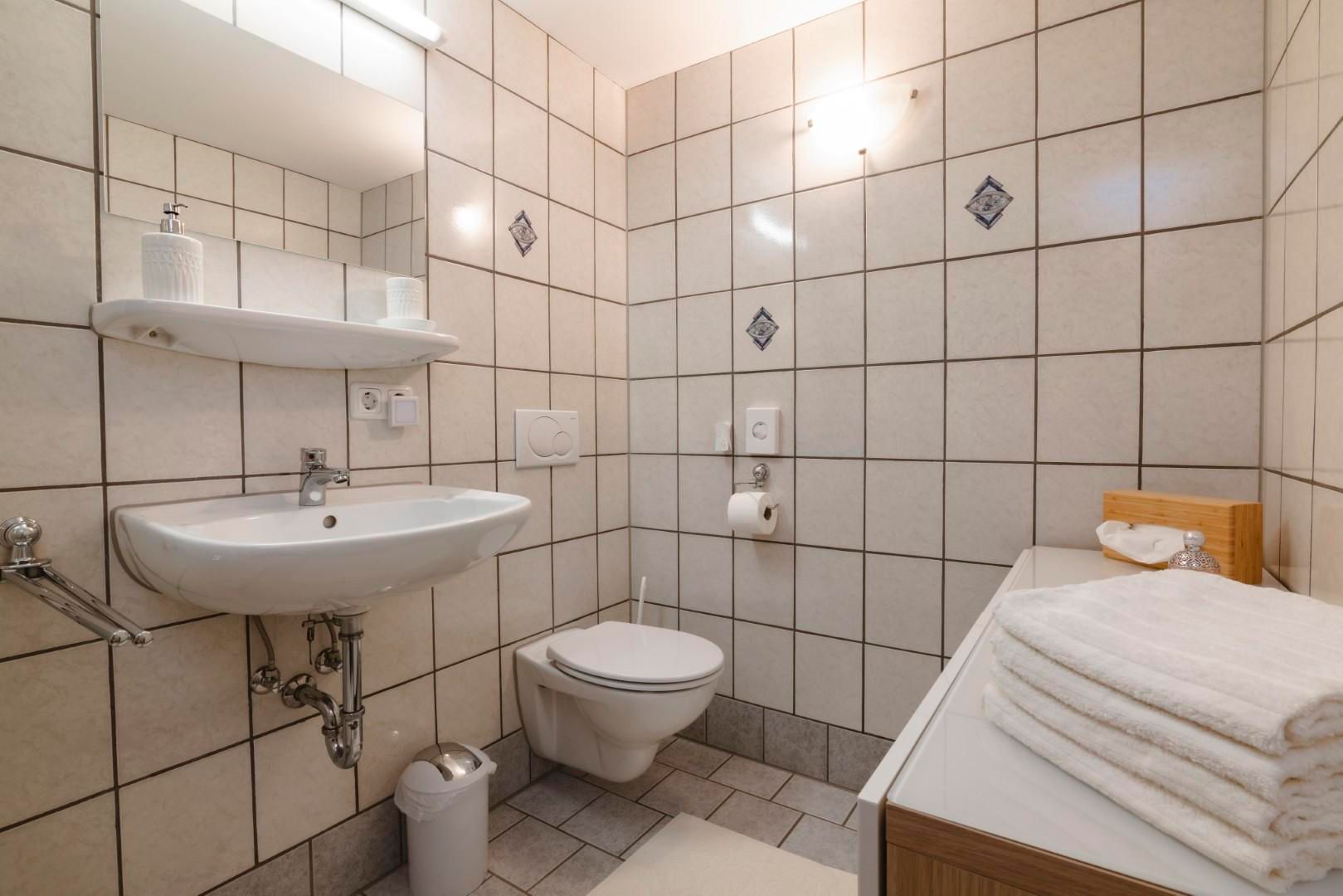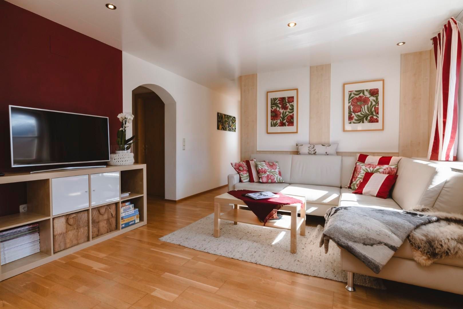 Die Wohnung ist ca. 68m² groß, besteht aus Bad, Wohnzimmer mit Essecke, Couch und zwei getrennten Schlafzimmern sowie einer Terrasse und sehr guter Ausstattung: Parkplatz, Terrasse, Ceranfeldherd, Backofen, Herd, Gefrierfach, Geschirrhandtücher, Geschirrspüler, Filter- und Tabs-Kaffeemaschine, Kühlschrank, Mikrowelle, Toaster, Wasserkocher, Handtücher, WLAN, TV mit Radio, Beauty-Infrarotkabine.