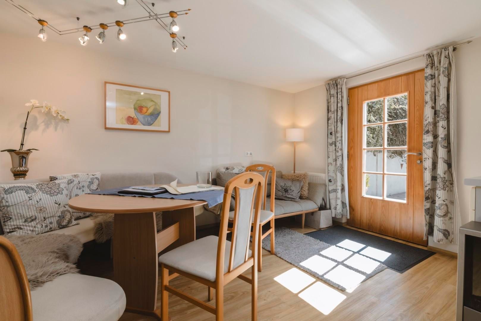 42 qm Ferienwohnung im Erdgeschoss mit großer Terrasse in wunderbarer Süd- und Aussichtslage. Gartenmöbel und Grillmöglichkeit sind vorhanden. Die Wohnung besteht aus zwei getrennten Schlafzimmern, einem Wohnzimmer mit Sofa und Essecke, einem Bad mit Dusche, WC und Waschgelegenheit sowie einer Küche mit Geschirrspülmaschine. Beauty-Infrarotkabine. W-LAN. Wonung ist größtenteils Barrierefrei.