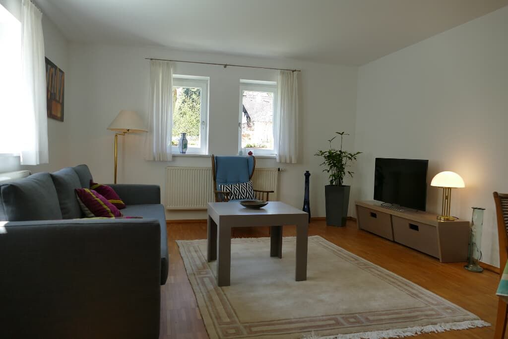 Im mittelalterlichen Nabburg, einer der schönsten Städte der Oberpfalz, erwartet Sie unsere großzügige (ca. 70m²), mit viel Liebe eingerichtete Ferienwohnung. Sie liegt im Parterre zum Garten hin mit eigener sonniger Terrasse und separatem Eingang. Die Wohnung besteht aus einem Schlafzimmer mit 2x2m Doppelbett, einem gemütlichen Wohnraum, einer gut ausgestatteten Küche, sowie Badezimmer mit Dusche und WC, Diele und Abstellraum. Das Sofa im Wohnzimmer kann zu einer Schlafcouch umfunktioniert werden. Hochwertigen Parkettböden sorgen für eine behagliche Atmosphäre. Die ruhige Lage in Waldnähe garantiert erholsame Urlaubstage