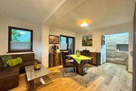 Das Prime Appartement Leutasch bietet Platz für zwei bis vier Personen und befindet sich in ruhiger Lage am Waldrand in der Region Seefeld. Die Unterkunft verfügt über zwei Schlafzimmer mit Ausrichtung zum Wald, zwei Bäder sowie eine voll ausgestattete Küche mit offenem Wohn- und Essbereich. Auf jeder Seite des Appartements befindet sich ein Balkon. Die Südterrasse ist mit einer privaten Sauna für bis zu vier Personen ausgestattet und bietet zusätzlich eine Sitz- und Essecke im Freien. Das Appartement ist modern eingerichtet und eignet sich ideal für einen Aufenthalt in naturnaher Umgebung.