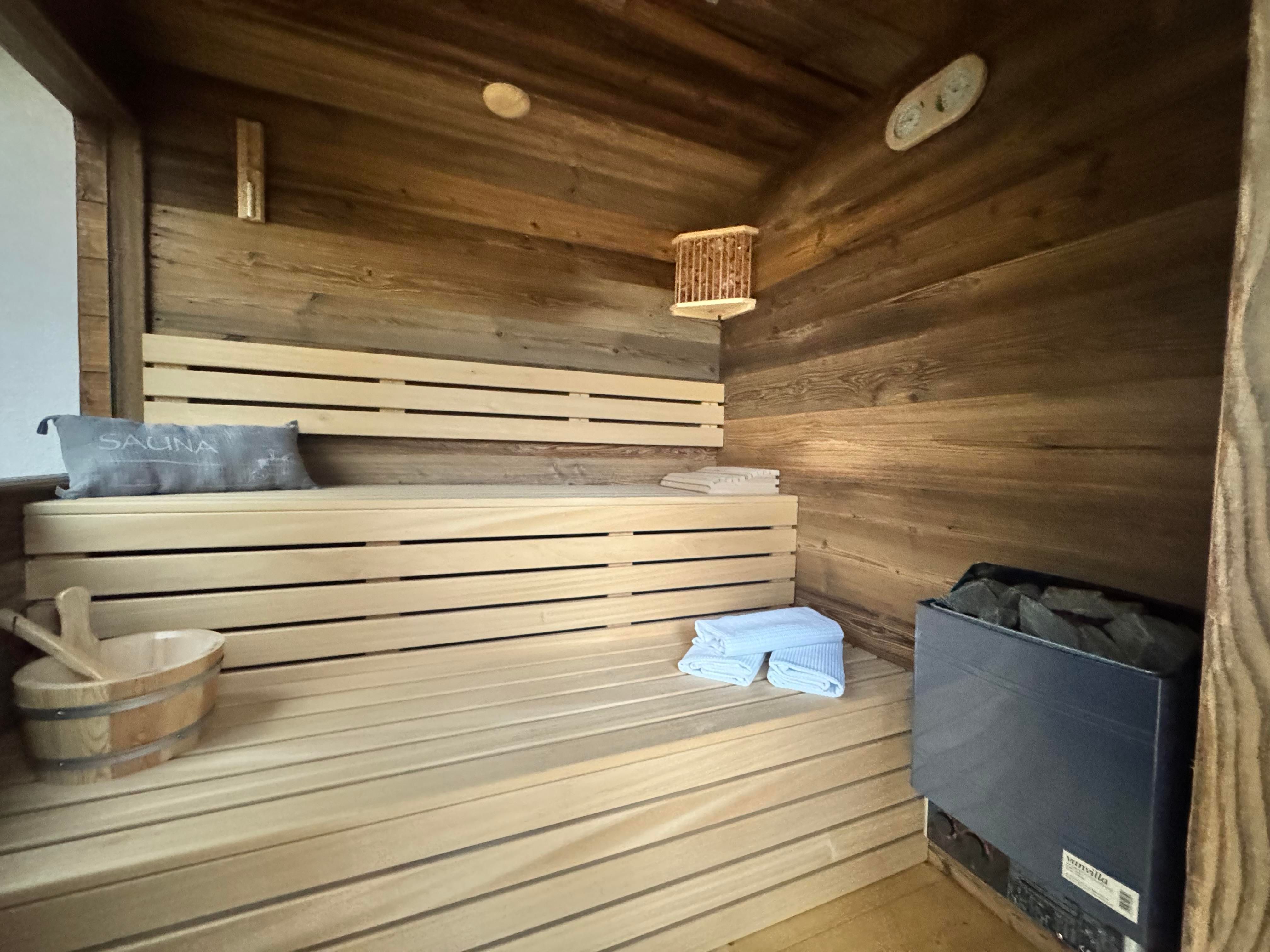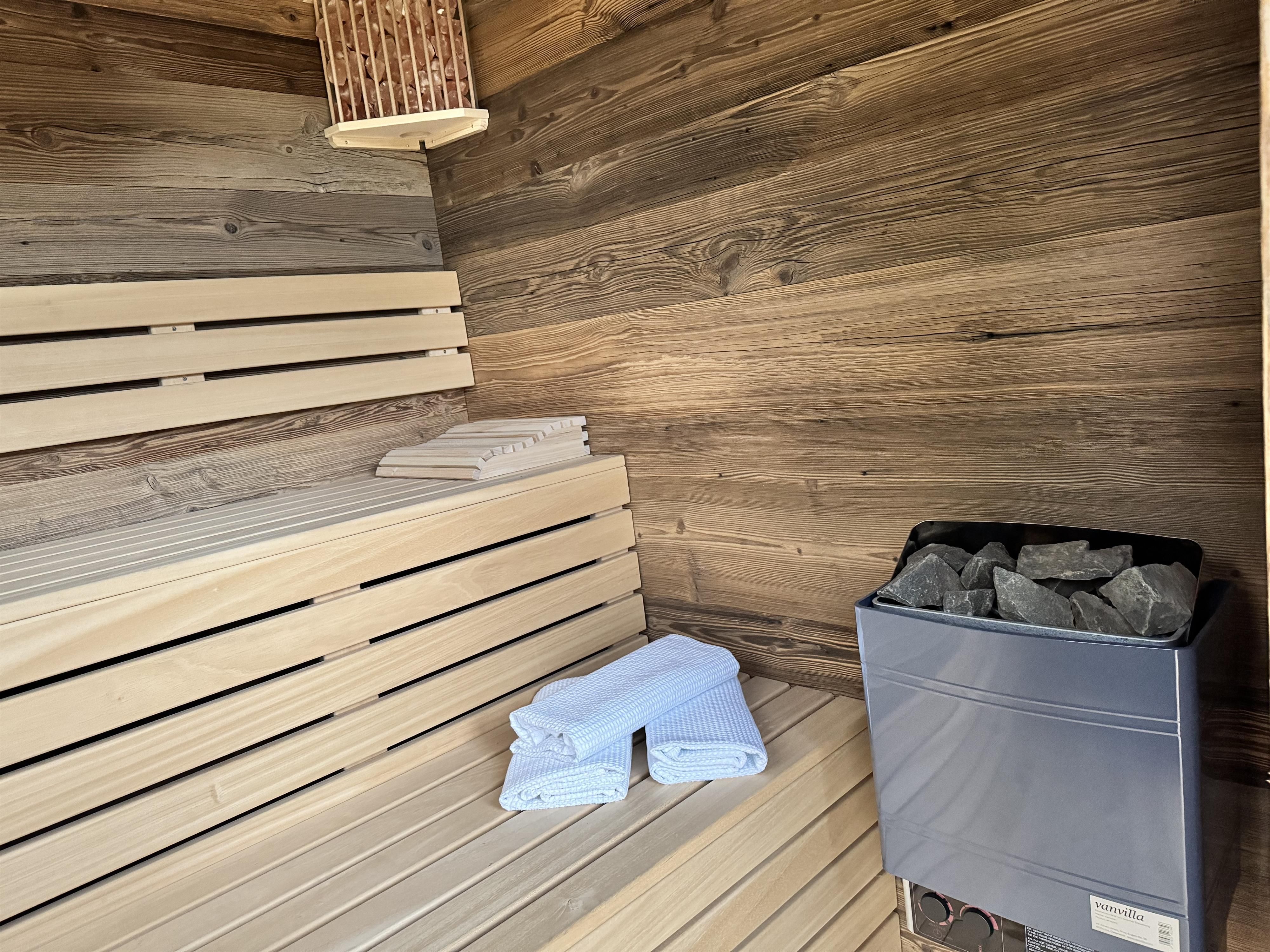 Besonders hervorzuheben ist die ruhige Waldrandlage sowie die 40m² Südterrasse mit einer eigenen Sauna für bis zu vier Personen.