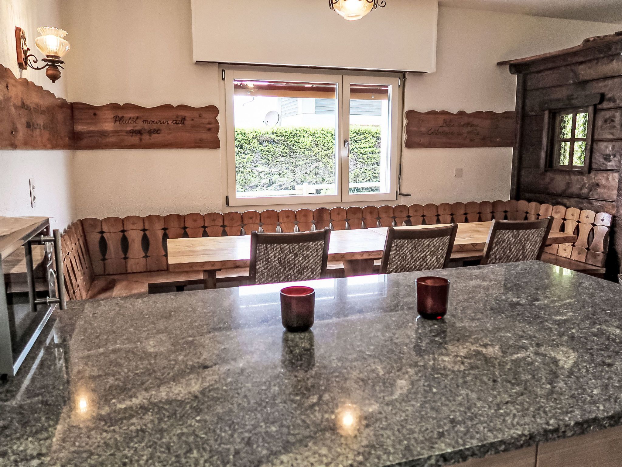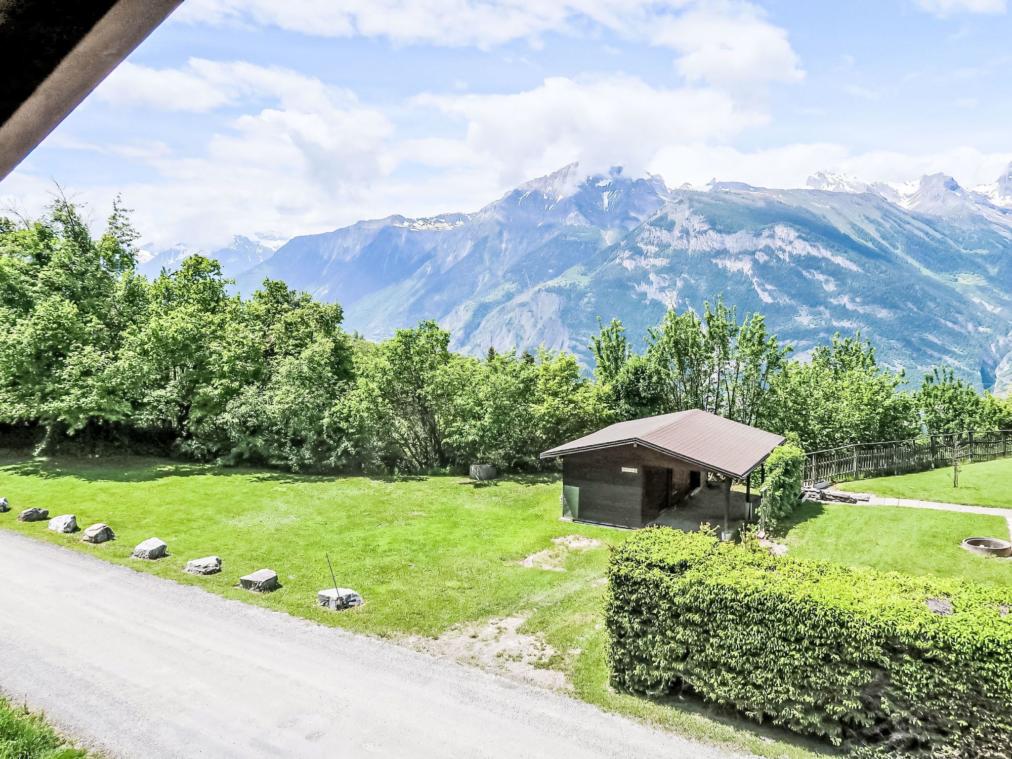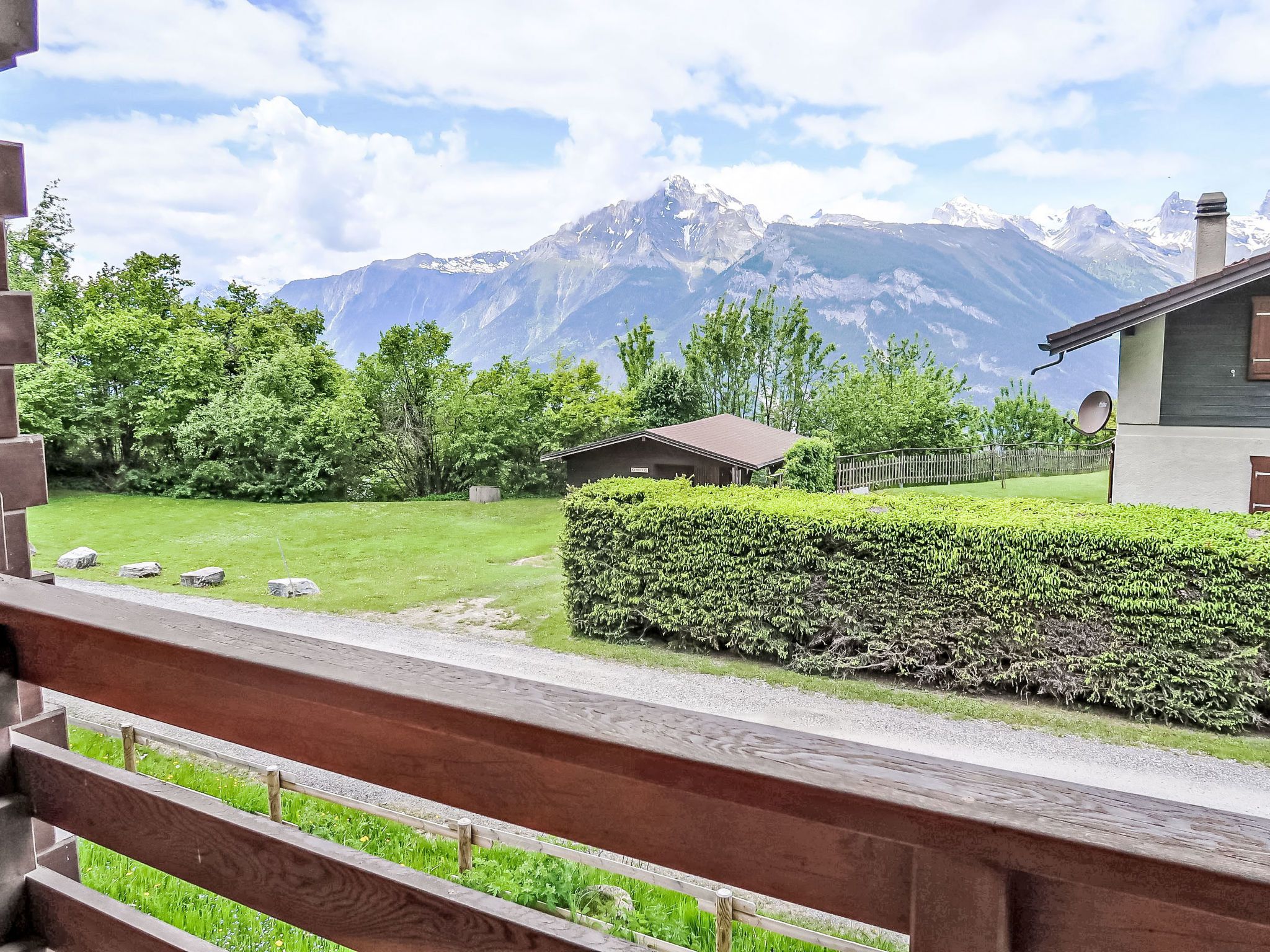 L'Etape, 5-Zimmer-Chalet auf 2 Stockwerken. Komfortabel und geschmackvoll eingerichtet: Wohn-/Esszimmer mit offenem Kamin. Ausgang zum Garten. Offene Küche (Backofen, Geschirrspüler, 4 Glaskeramikplatten, Mikrowelle, elektrische Kaffeemaschine, Kapseln für die Kaffeemaschine (Saeco), Racletteofen, Fondue Set (Käse)). 2 Duschen, 2 sep. WC's. Obergeschoss: 1 Zimmer mit 2 Betten (90 cm, Länge 200 cm), Waschbecken. Ausgang zum Balkon. 1 Zimmer mit 2 Betten (90 cm, Länge 200 cm), Waschbecken. 2 Zimmer, jedes Zimmer mit 2 Betten (90 cm, Länge 200 cm), Waschbecken. Bad/WC. Balkon, grosser Garten. Terrassenmöbel. Schöne Sicht auf die Berge und die Landschaft. Zur Verfügung: Internet (WLAN, gratis). Parkplatz (6 Autos) beim Haus. Bitte beachten: Nichtraucher-Unterkunft.