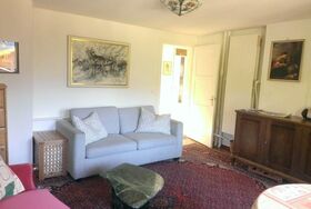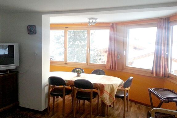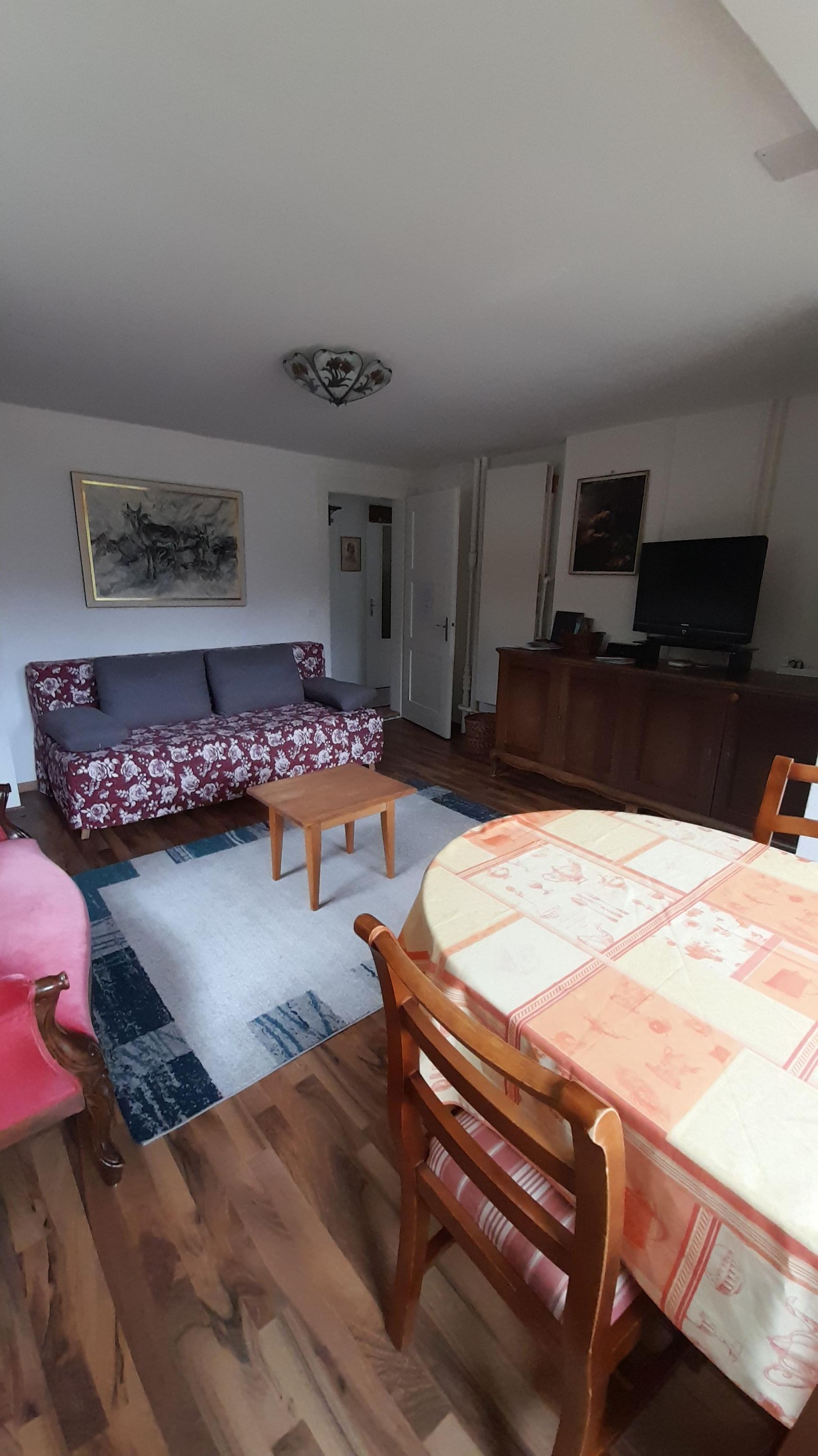 2 Zimmer Wohnung :Eine grosse Stube mit Bettsofa für 2 Pers. grosser Esstisch mit Fensterfront Wifi, TV Replay.