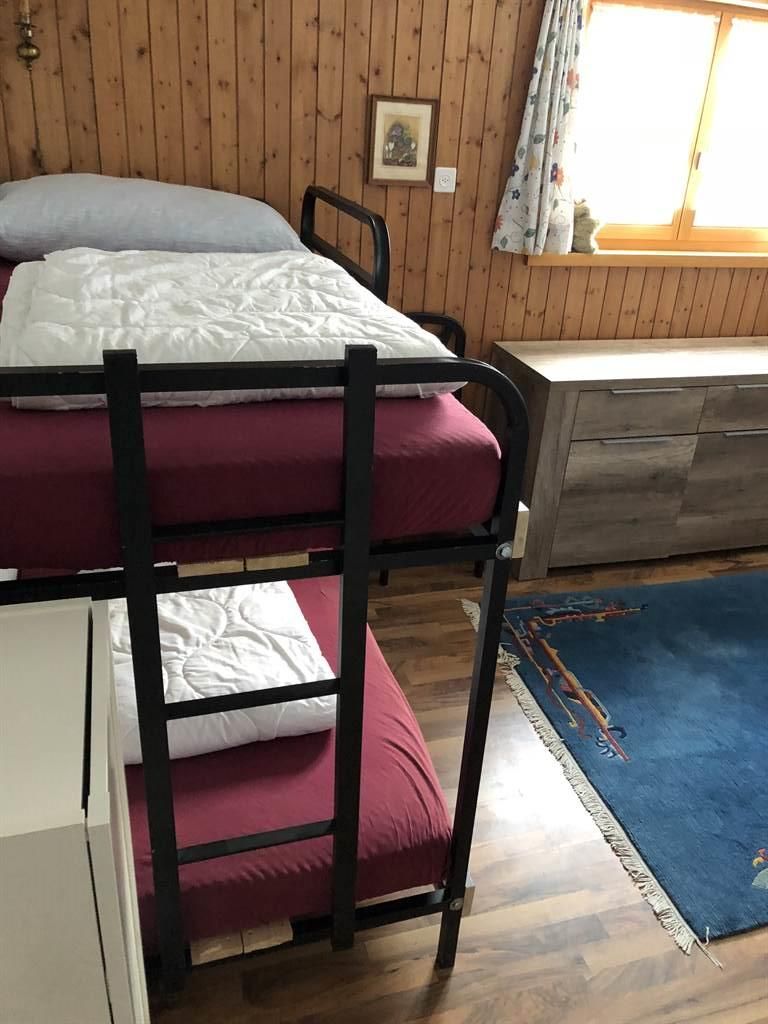 1 Zimmer mit 2 Hochbetten / 1 separe mit 1 Hochbett ingesamt 6 Betten. 1 Badezimmer Dusche WC Lavabo Waschmaschine.+1 WC Lavabo. Küche separat mit Geschirrspüler Kühlschrank mit 30 liter Gefrierfach Kaffeemaschine uvm.