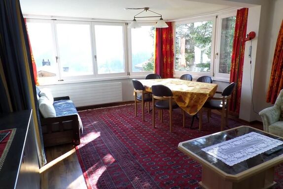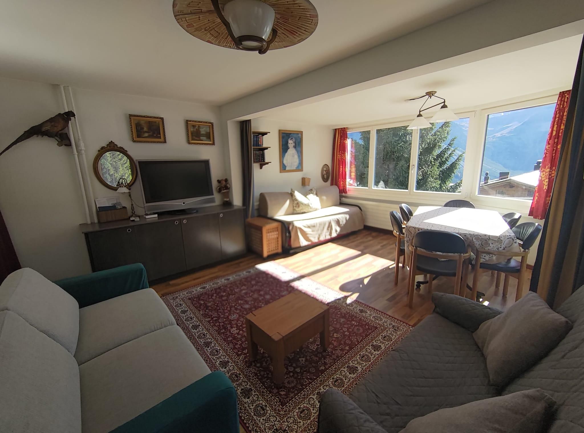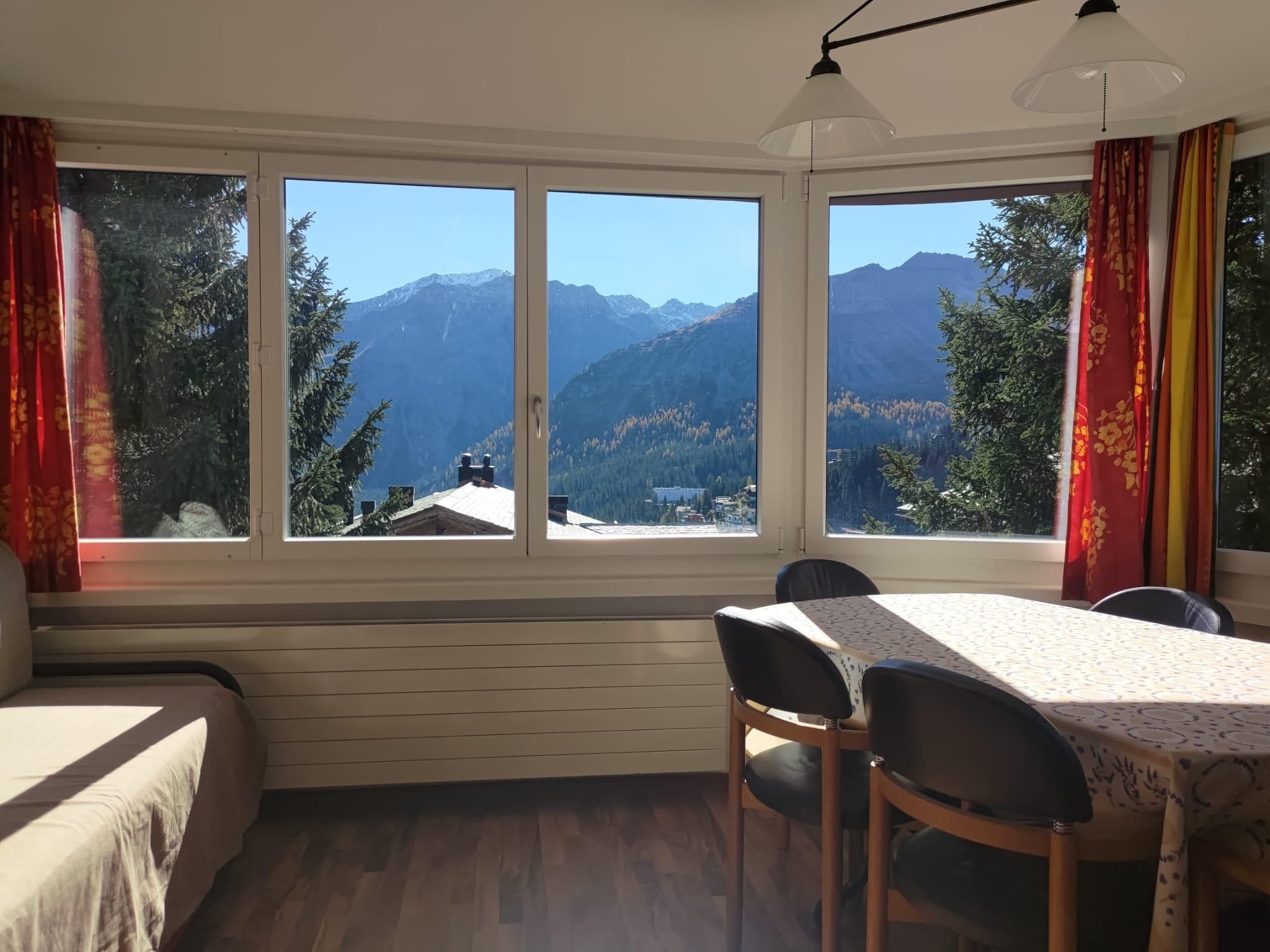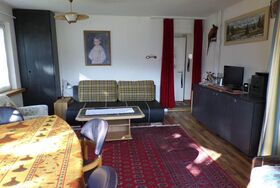 Ferienhaus mit zwei Ferienwohnungen, ruhige Lage, wunderschöne unverbaute Aussicht. Grosse Spielwiese mit Grillplatz und Sitzplatz für gemütliche Stunden. Direkte Anfahrt bis ans Haus, auch ist die Bushaltestelle nur ein paar Meter vom Haus entfernt.Ein offener nicht überdachter Parkplatz wird GRATIS zur Verfügung gestellt. Diese Ferienwohnung ausgestattet mit einem Zimmer und 2 betten mit Balkon +Tisch . Separate grosse Küche mit Keramikkochfeld und Tiefkühlfach um sich auch während Ihren Ferien was feines zu kochen. Waschmaschine Mikrowelle Raclette Fondue Kaffeemaschine beinahe wie zuhause. Grosses Wohnzimmer, mit 2 Bett Sofas für insgesamt 4 Personen die durch einen Vorhang getrennt werden kann.Einen grossen Esstisch mit einer traumhafter Aussicht. Wifi TV mit replay funktion
