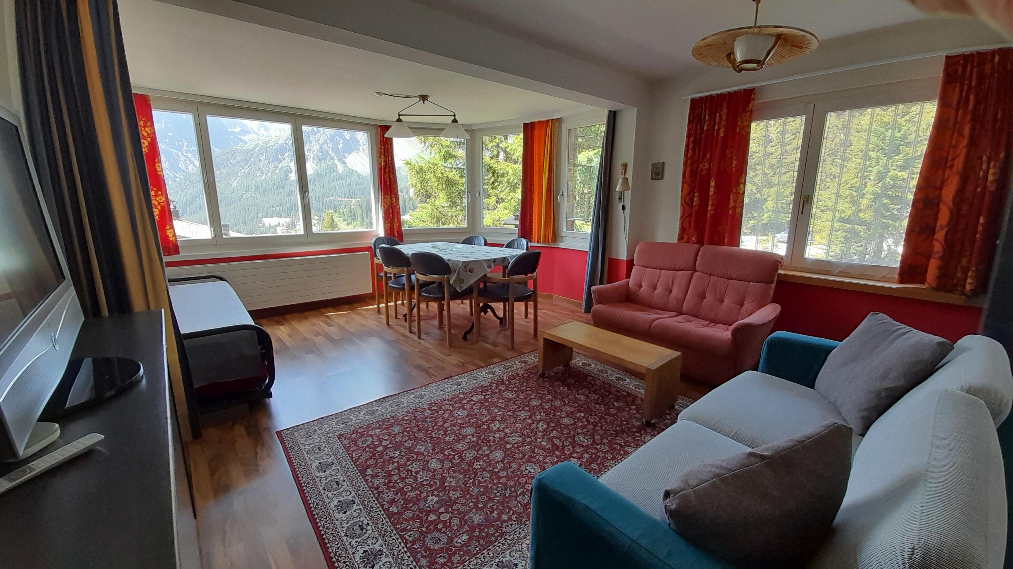 Möblierte 2 Zimmer Wohnung mit Panorama Sicht im Wohnzimmer, grosse Küche mit Geschirrspüler und Waschmaschine,1 Schlafzimmer mit Doppelbett und Balkon, grosser Wohnzimmer mit Schlafraum für 4 Personen (2 Schlaf Sofas ) grosser Esstisch und 3 Polstermöbel zum relaxen. TV Wi-Fi und Internet.