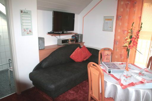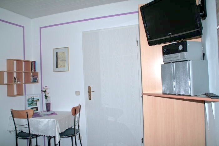 tägl. Brötchenservice oder mit Frühstück, Fahrrad- und Schlauchbootverleih, Sat-TV (Flat-Screen), Du/WC, Wintergarten als Frühstücks- bzw. Aufenthaltsraum; Exklusive FeWo mit SZ, WZ mit Schlafcouch, Essküche, Balkon; App: Panoramafenster, Küchenzeile, Sitzecke, Doppelbett; 1 MZ mit Balkon, 1 DZ, 1 DZ mit Terrasse. Ganzjährig geöffnet.