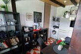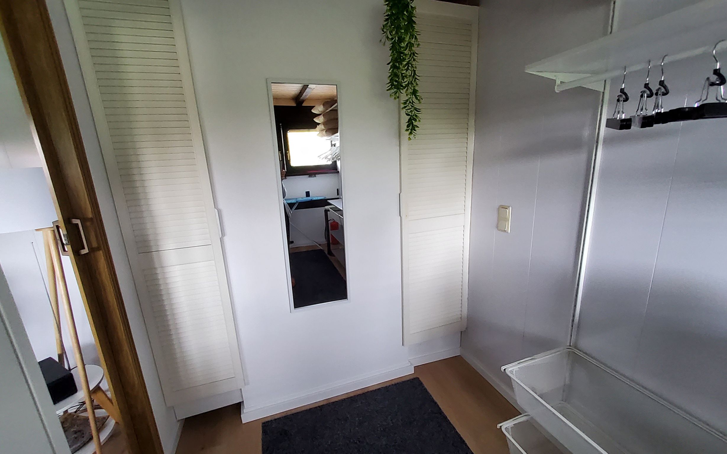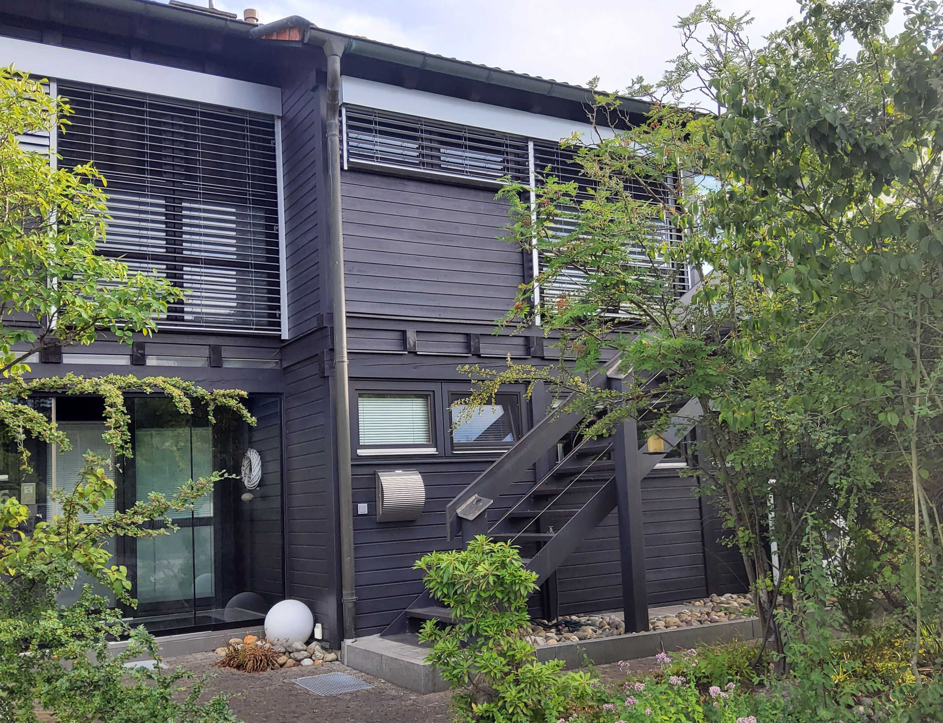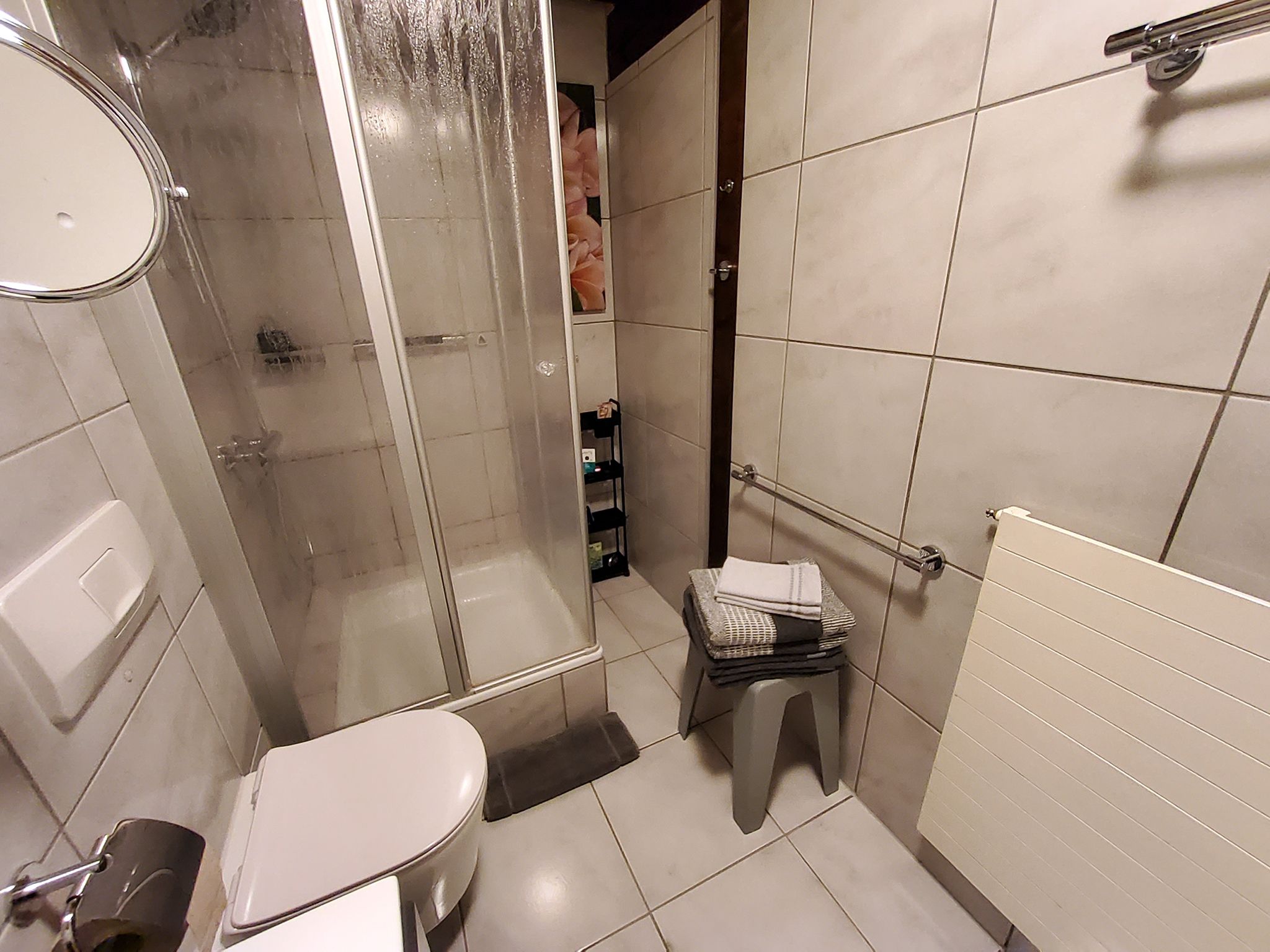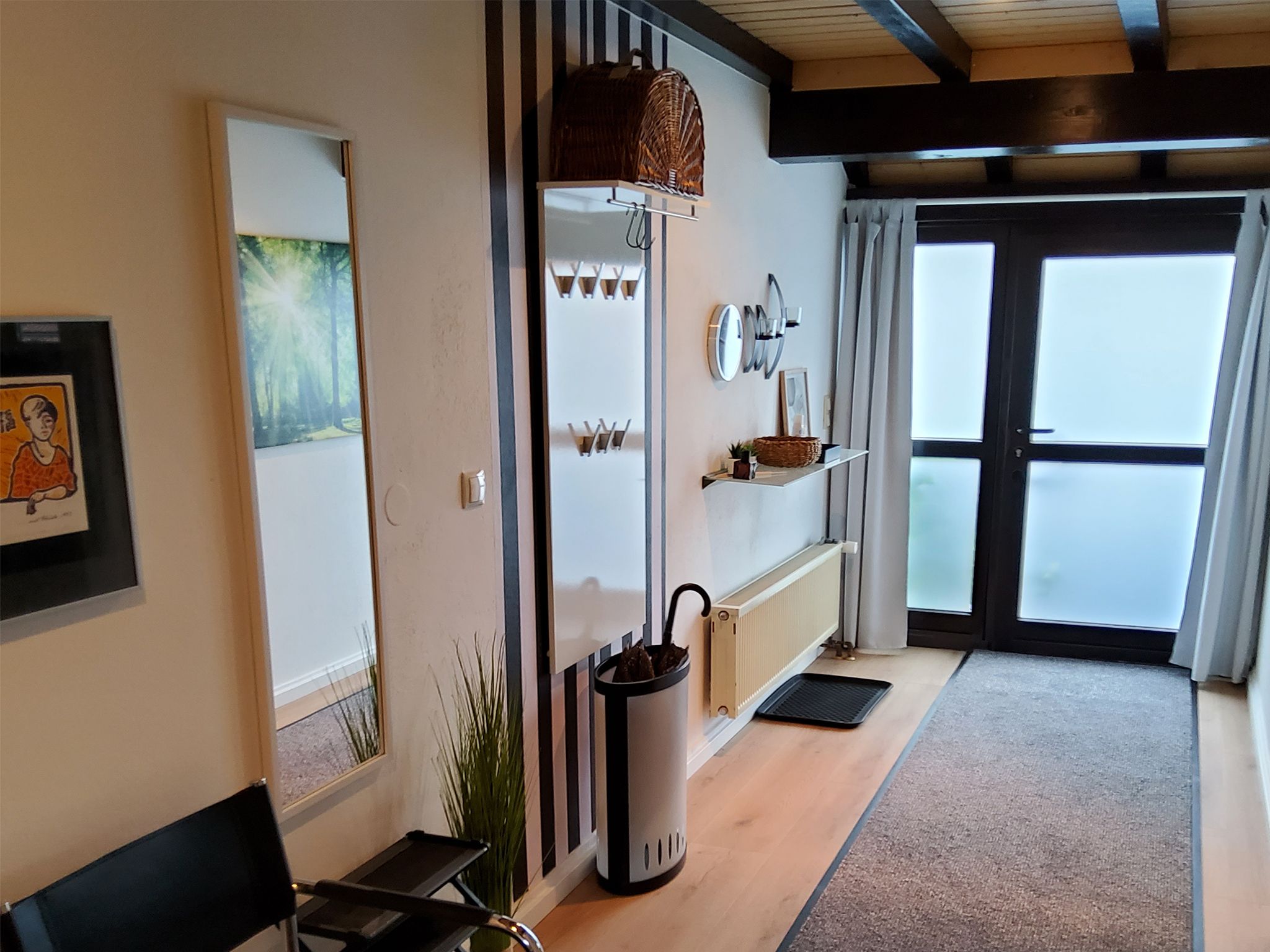 Schlafen wie im Hotel – Wohnen wie zuhause! Diese stilvoll eingerichtete Wohnung für bis zu drei Personen befindet sich im ersten Stock eines charmanten Zweifamilienholzhauses mit separatem Zugang über eine Außentreppe. Helle Räume, elegante Holzbalkendecken und Glasschiebetüren schaffen ein behagliches Wohngefühl. Das Wohn-/Schlafzimmer bietet ein hochwertiges Boxspringbett, das auch als Daybed genutzt werden kann, eine gemütliche Sitzecke, TV, DAB-Radio, Ventilator, Insektenschutz und effektive Verdunkelung. Das Ankleidezimmer überzeugt mit viel Stauraum und Extras wie Bügelbrett, Bügeleisen und Wäscheständer. Das Bad ist modern ausgestattet mit Dusche, WC, Waschtisch mit Auszügen, Kosmetikspiegel, Duschhocker und Föhn. Die großzügige Wohnküche bietet alles für den Alltag: vollständige Einbauküche mit allen Geräten, Geschirr, Nespresso-Maschine, Mikrowelle und Waschtrockner sowie eine zusätzliche Schlafcouch. Außerdem steht ein teilausgebauter Dachboden zur flexiblen Nutzung. Ob als Abstellraum, Fitnessbereich oder Homeoffice – Sie gestalten Ihren Raum individuell. Wir freuen uns auf Ihren Besuch!