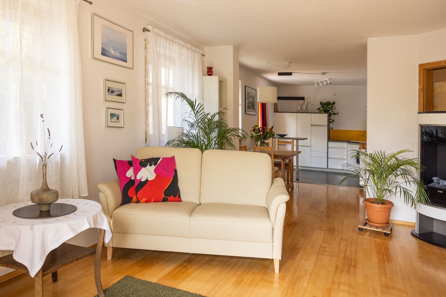 Schöne Drei-Zimmer-Wohnung (85m2) mit eigenem Garten (170 m²), nur wenige Gehminuten vom See entfernt.