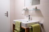 Unsere 6 neu renovierten Apartments befinden sich im 1., 2. und 3. Stockwerk (jeweils zwei Apartments). Das Haus verfügt über einen Lift. Voll ausgestattete Küchen, zwei separate Schlafzimmer sowie ein Badezimmer bieten die Apartments Top 7 bis Top 11. Das Top 12 ist ein Einraumapartment mit Badezimmer und kann mit Top 11 verbunden werden.