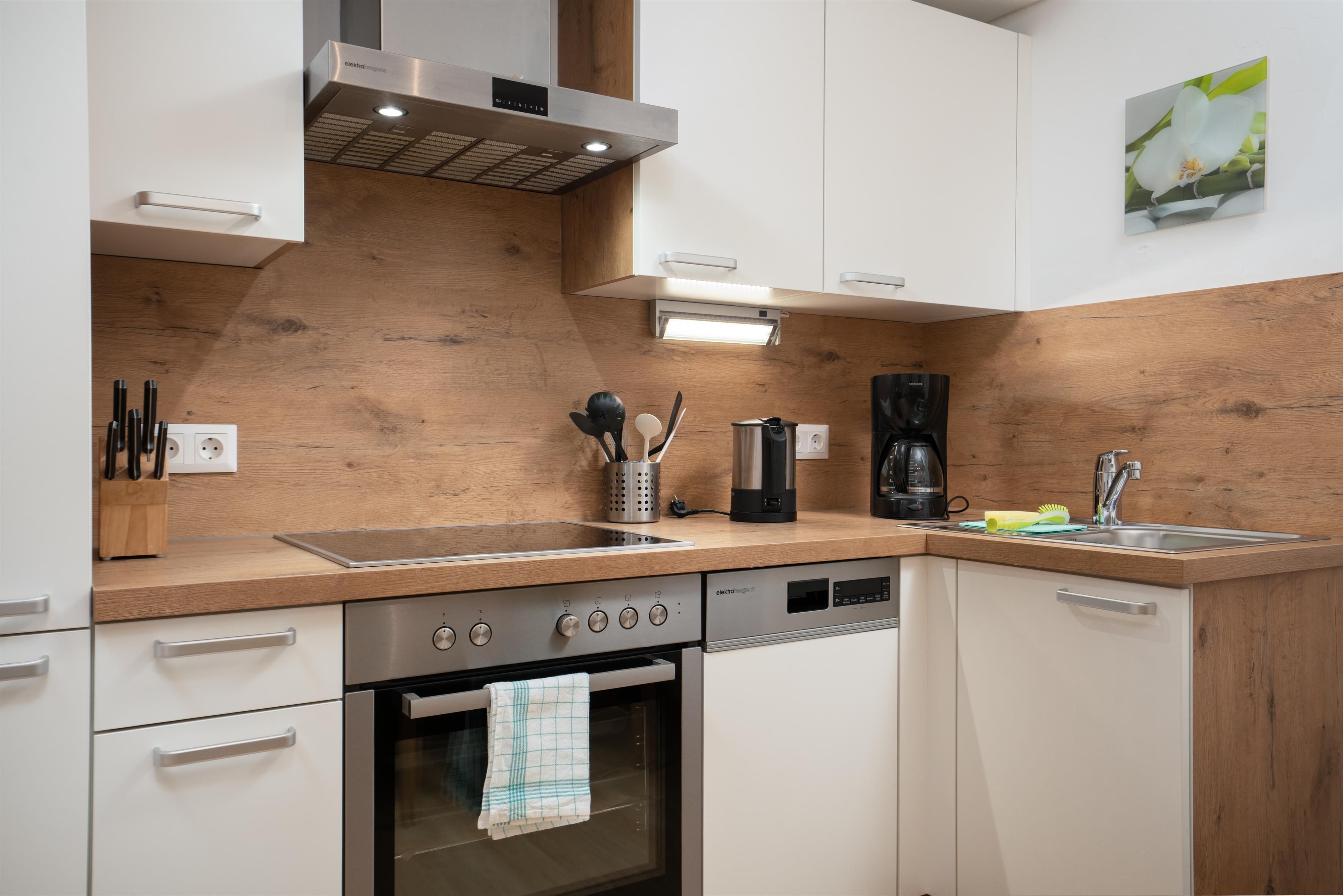 Unsere 6 neu renovierten Apartments befinden sich im 1., 2. und 3. Stockwerk (jeweils zwei Apartments). Das Haus verfügt über einen Lift. Voll ausgestattete Küchen, zwei separate Schlafzimmer sowie ein Badezimmer bieten die Apartments Top 7 bis Top 11. Das Top 12 ist ein Einraumapartment mit Badezimmer und kann mit Top 11 verbunden werden.