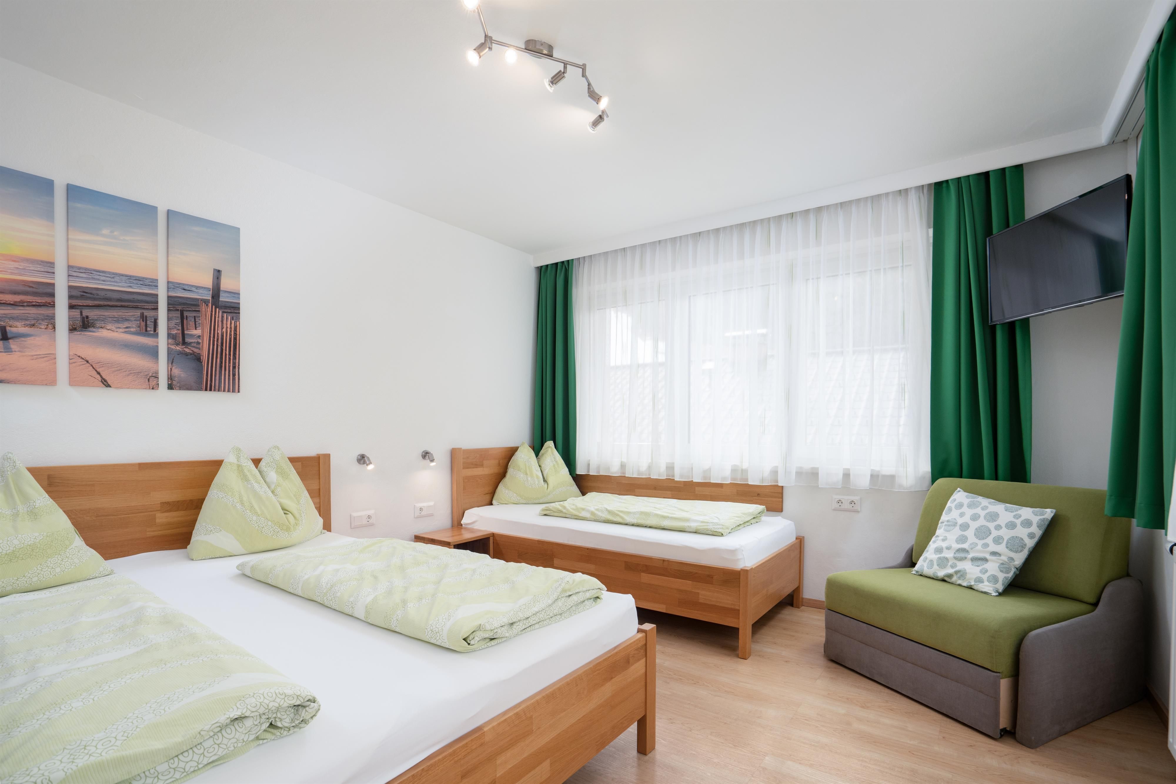 2 separate Schlafzimmer mit jeweils einem Doppelbett sowie einem Einzelbett