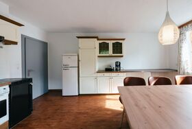Die großzügige Wohnung mit 134 m² befindet sich im ersten Stock eines charmanten Hauses und bietet ausreichend Platz für bis zu 10 Personen – ideal für große Familien oder Gruppen. Die Ferienwohnung verfügt über fünf komfortable Schlafzimmer, ein einladendes Wohnzimmer, eine große Terrasse sowie Balkone, die sich über drei Seiten des Hauses erstrecken. Genießen Sie die ruhige Atmosphäre, die frische Bergluft und den herrlichen Blick auf die umliegende Natur.