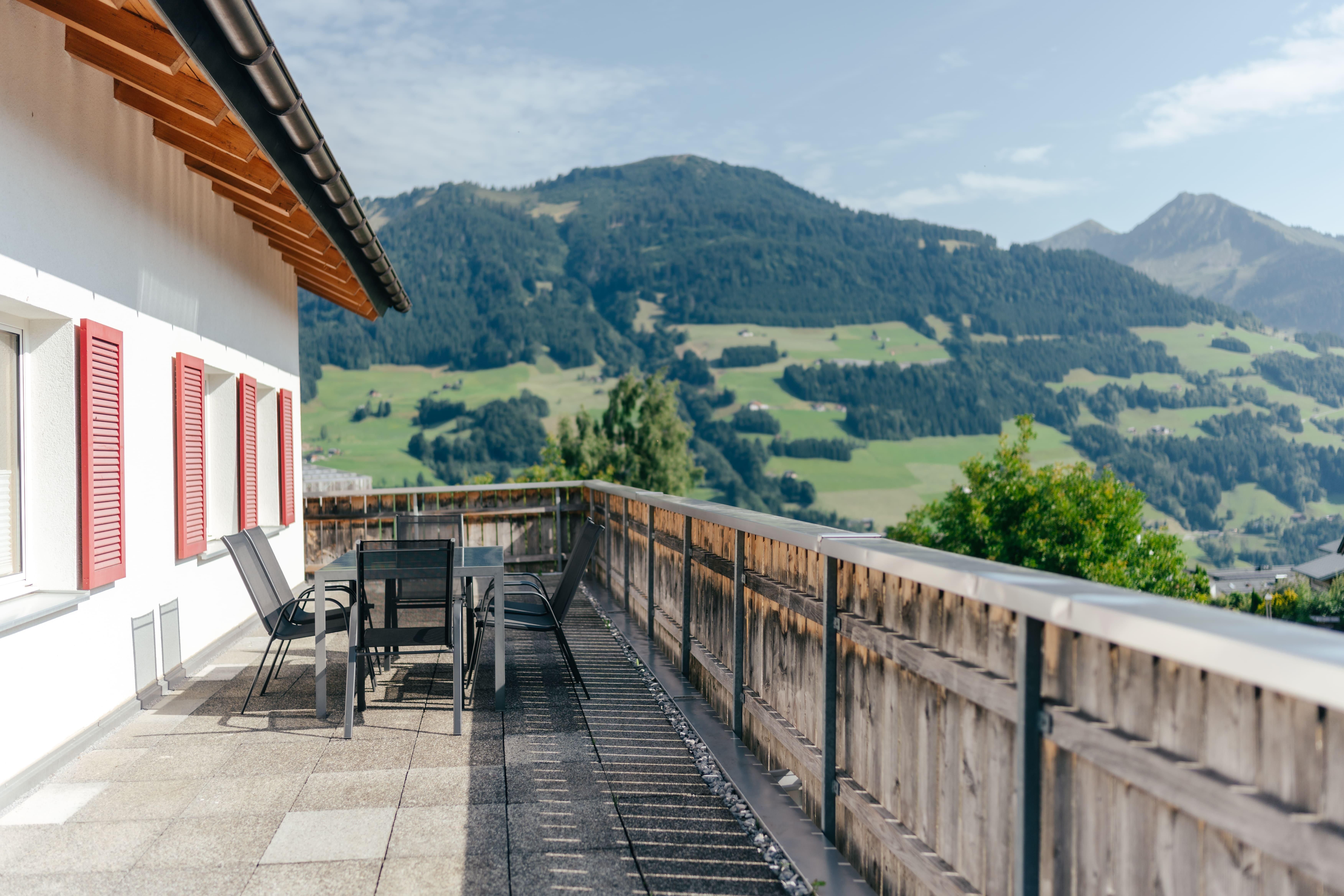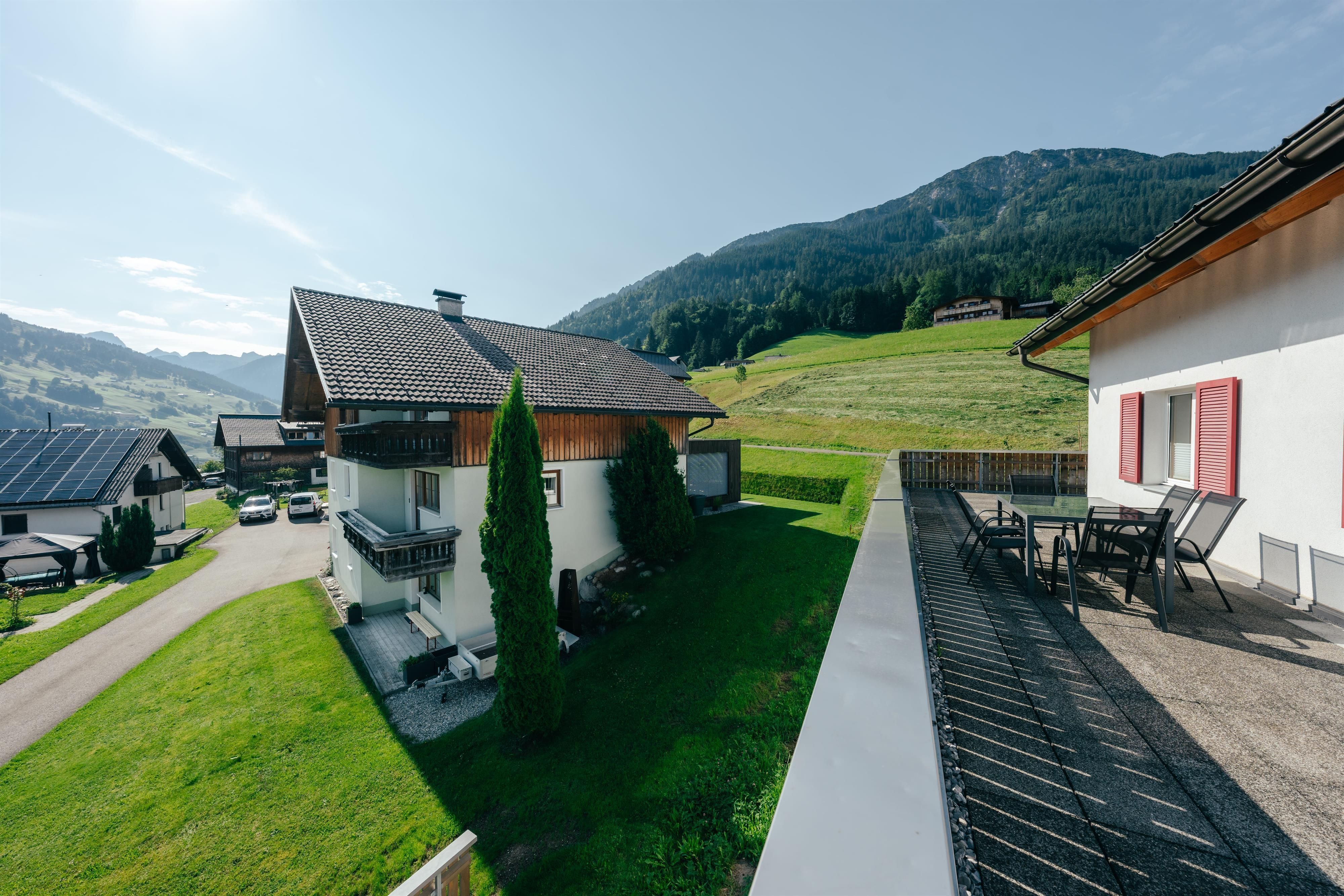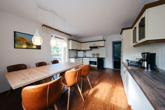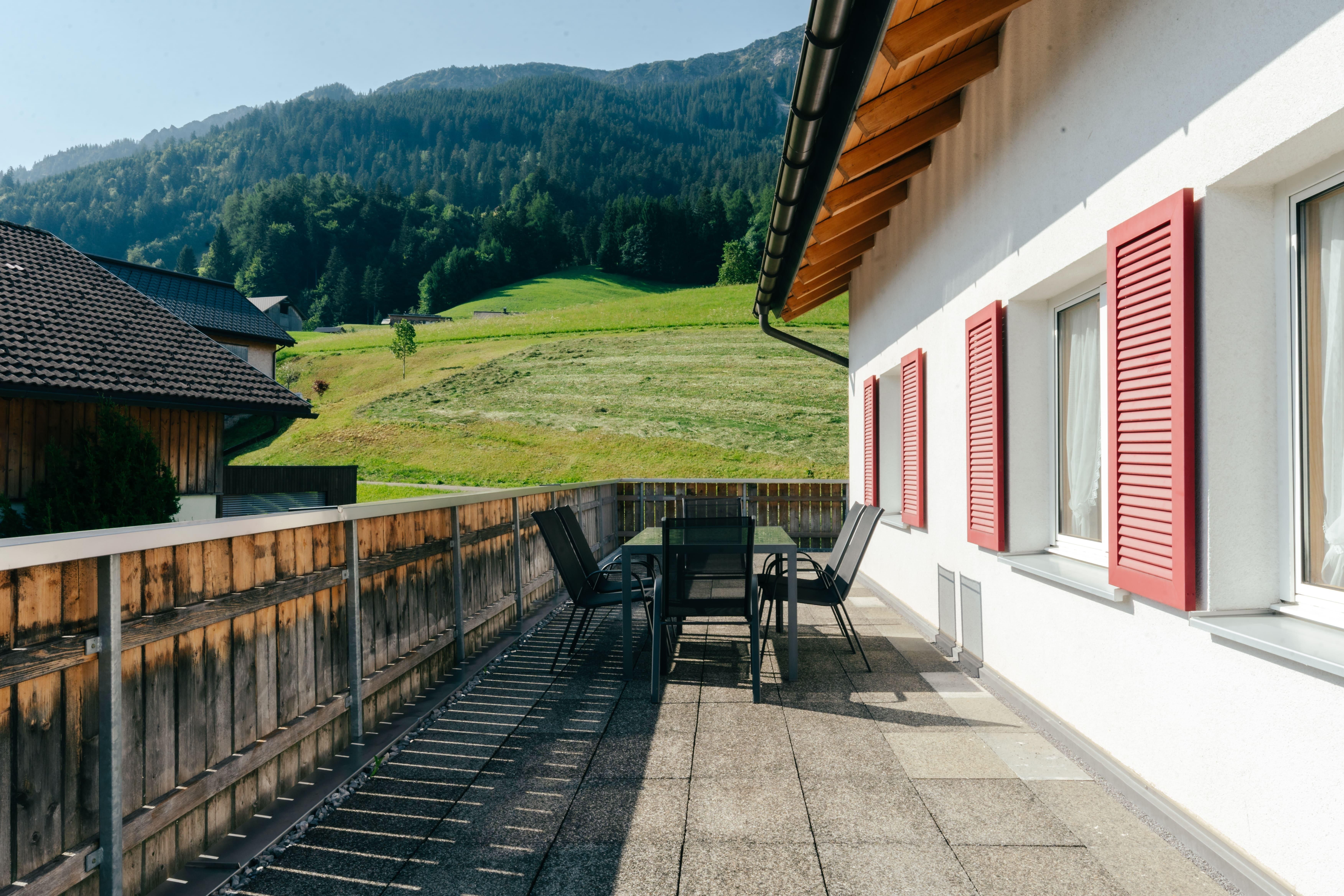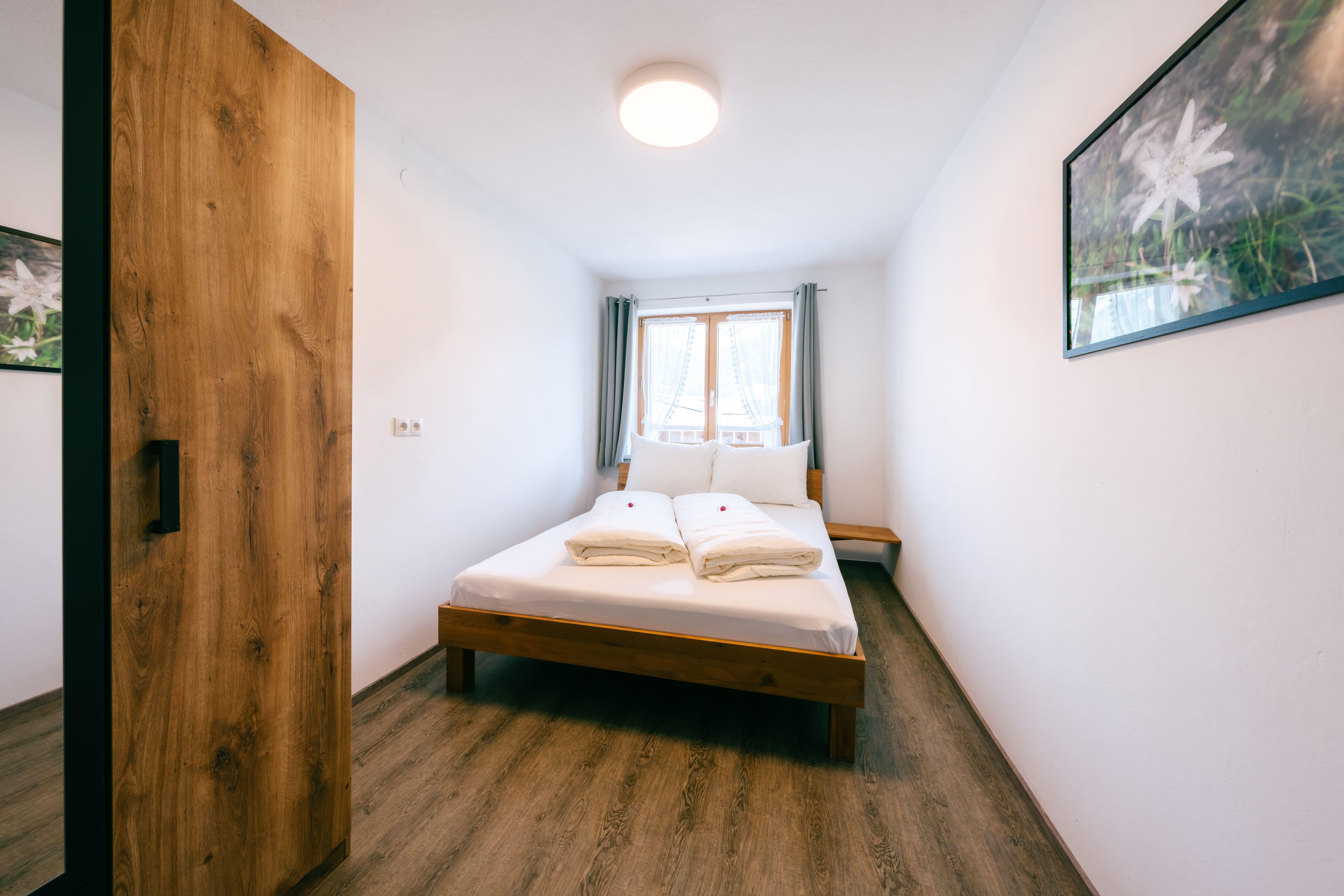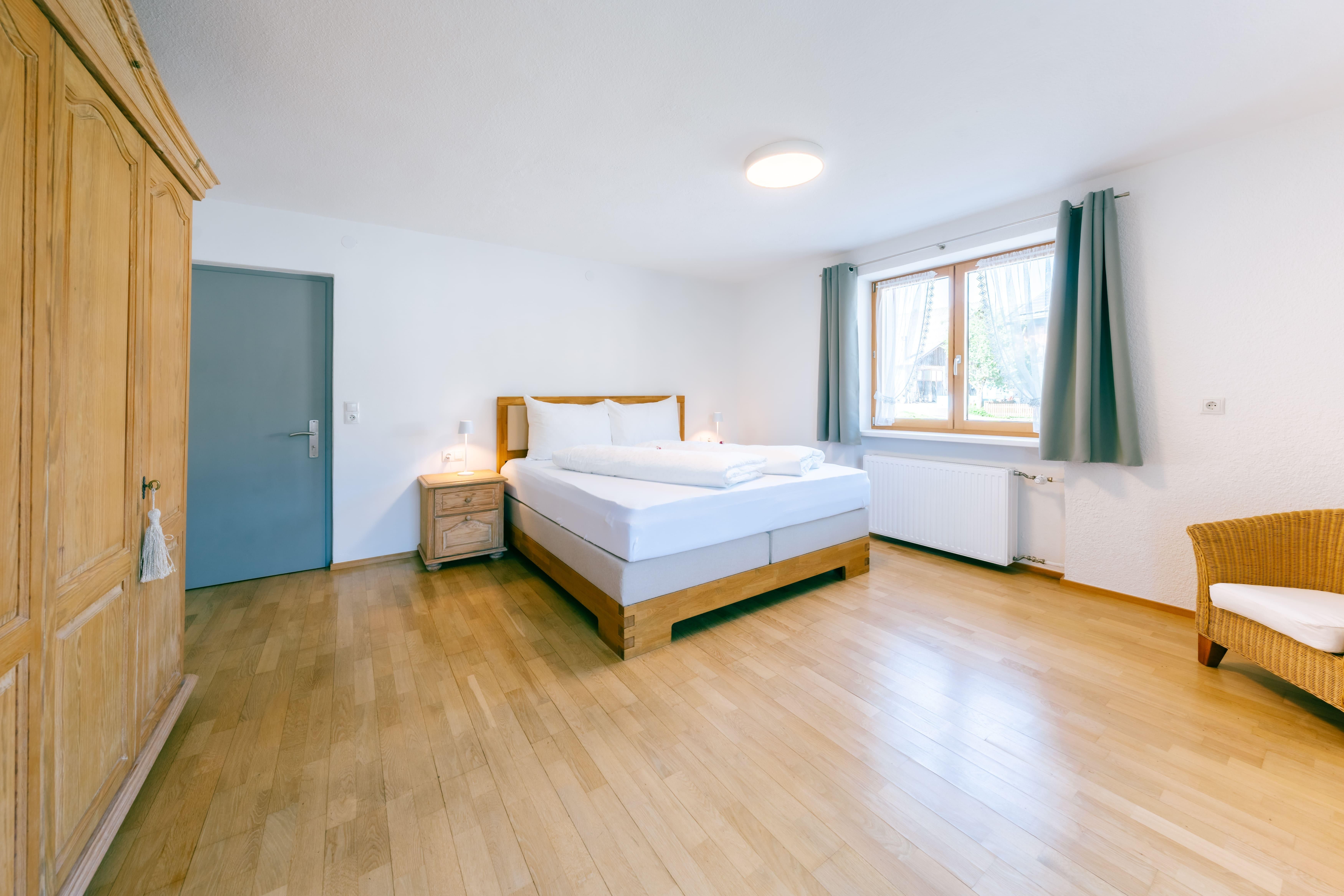 Die Wohnung verfügt über 5 gemütliche Schlafzimmer, ein einladendes Wohnzimmer sowie eine große Terrasse und Balkone, die sich über drei Hausseiten erstrecken. Genießen Sie hier die herrliche Ruhe, frische Bergluft und den Blick in die Natur.
