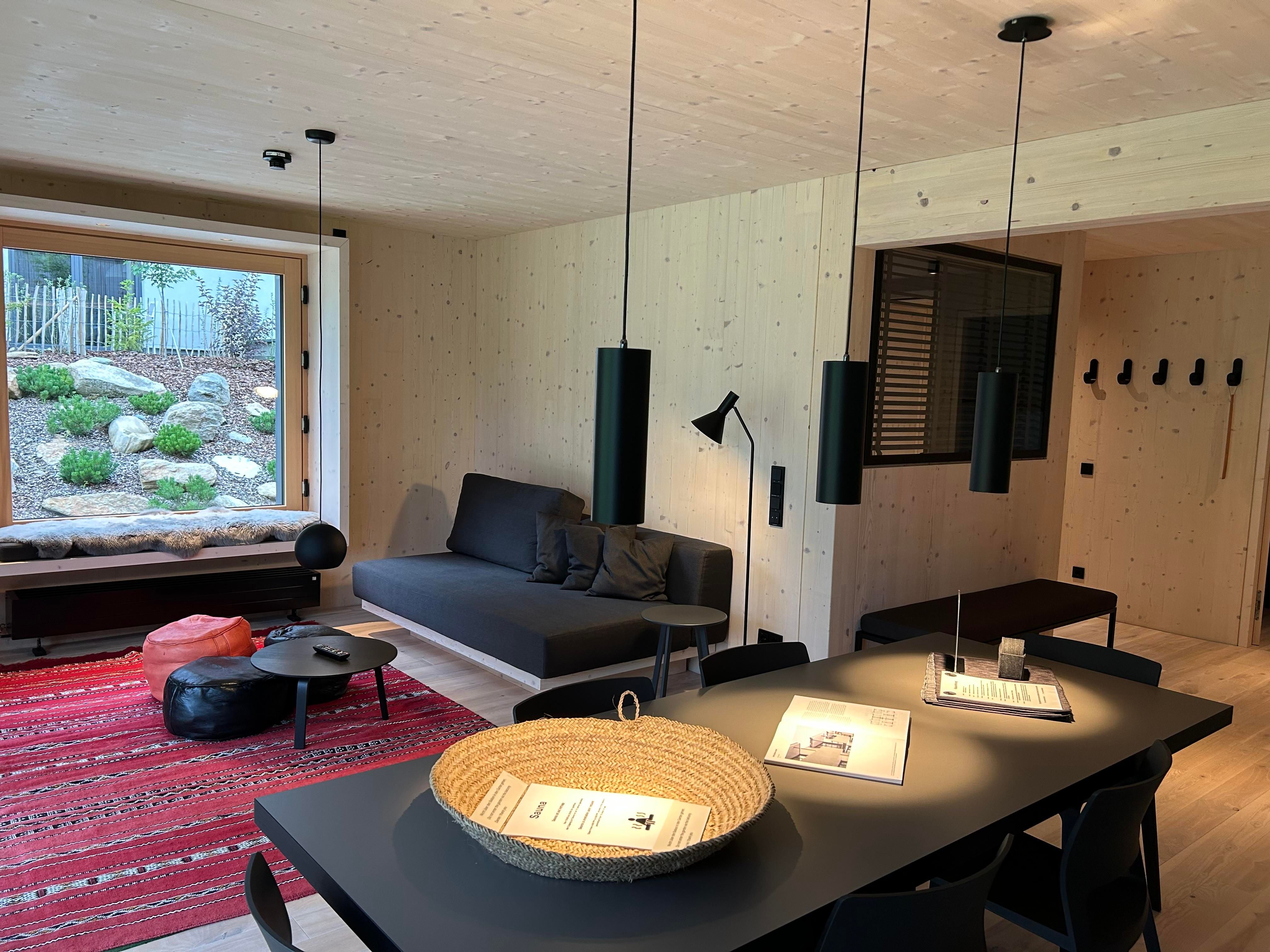 Natürliche Materialien, schöne Details, heimisches Holz, flauschige Stoffe, Leinen und die atmosphärische Beleuchtung vermitteln Geborgenheit. Für Entspannung sorgt der Wellnessbereich mit finnischer Sauna, Dampfbad und Yogaraum. Ein großer Garten mit Feuerstelle und Brunnen lädt zum Verweilen ein.