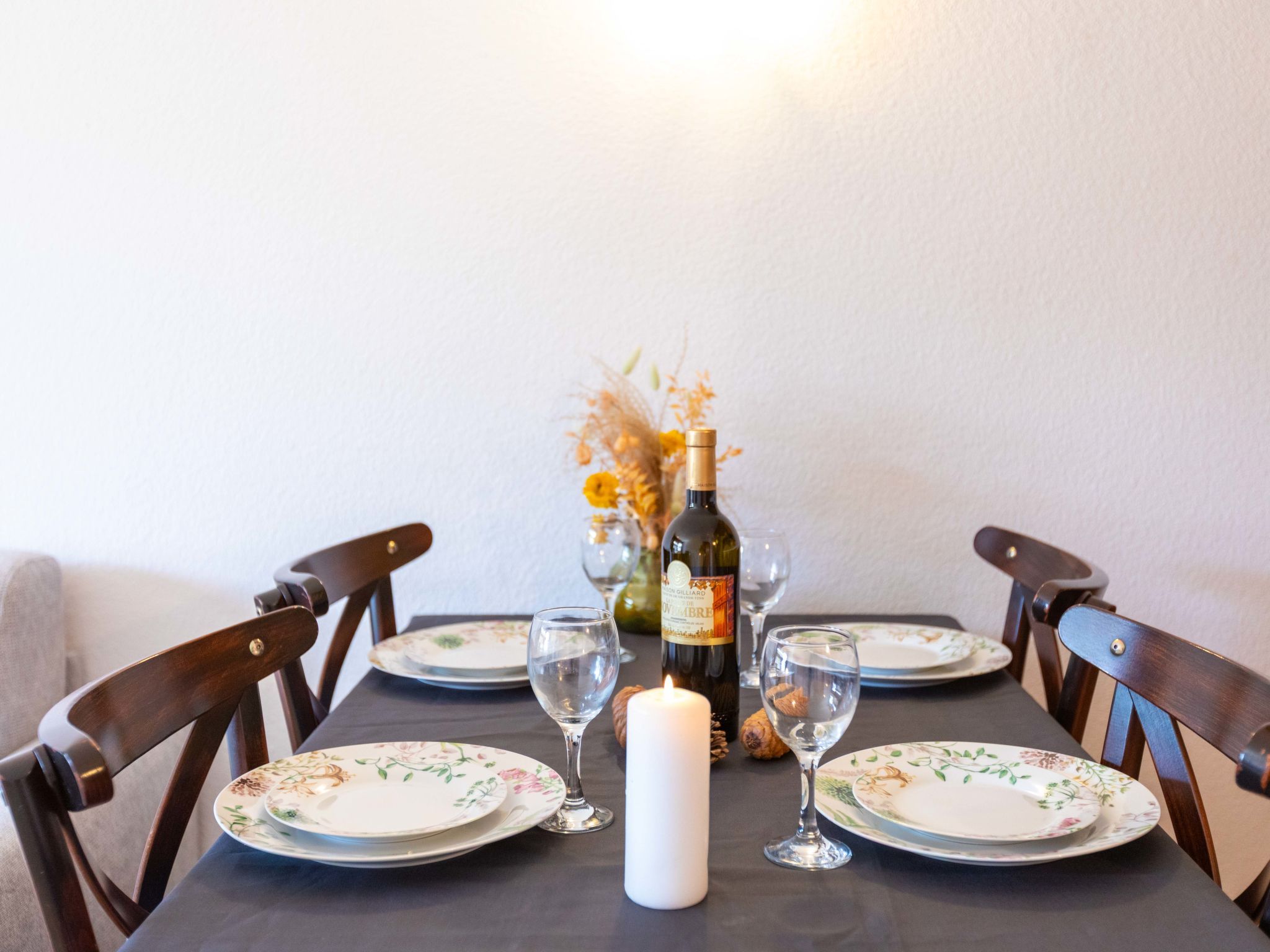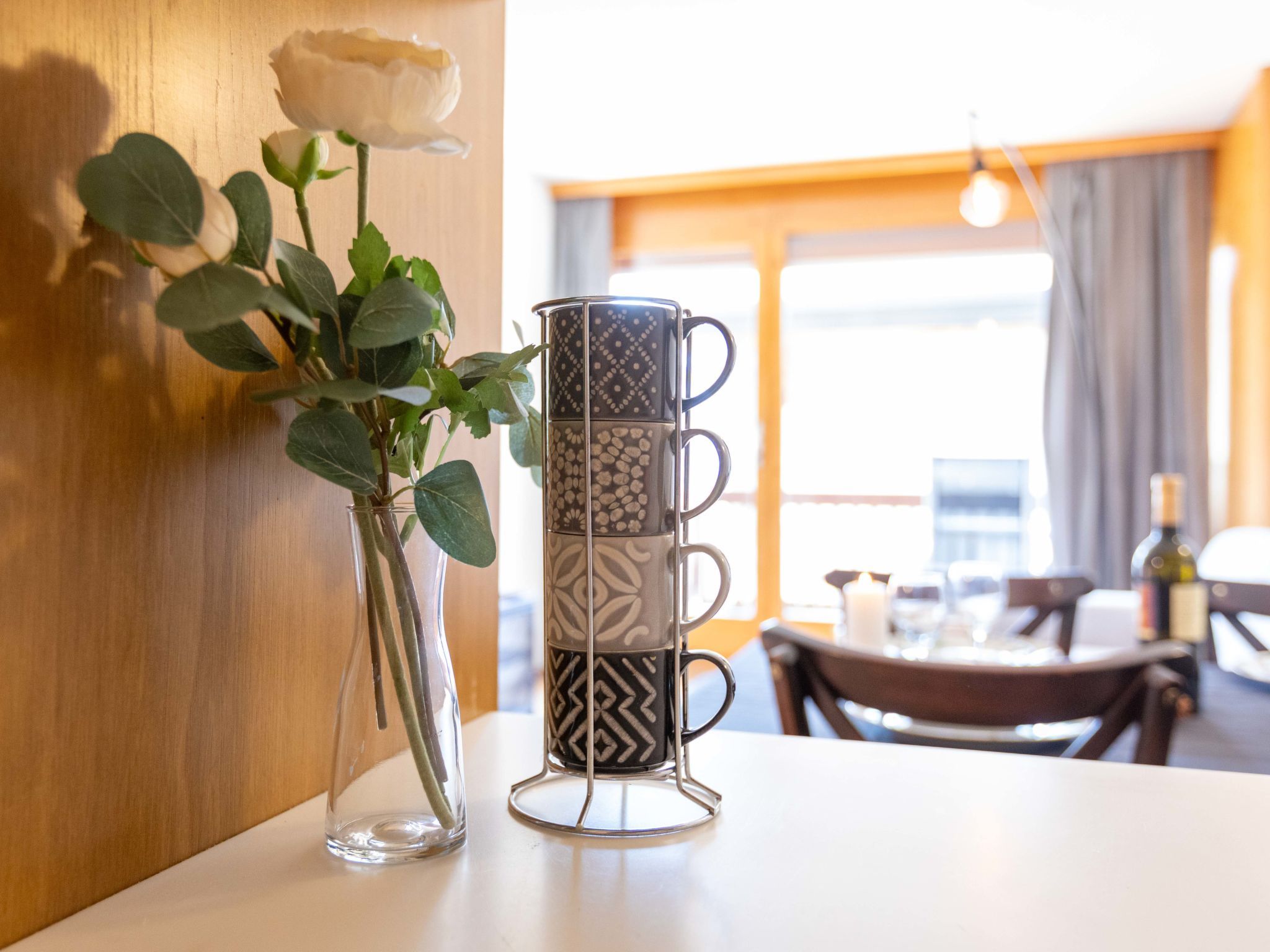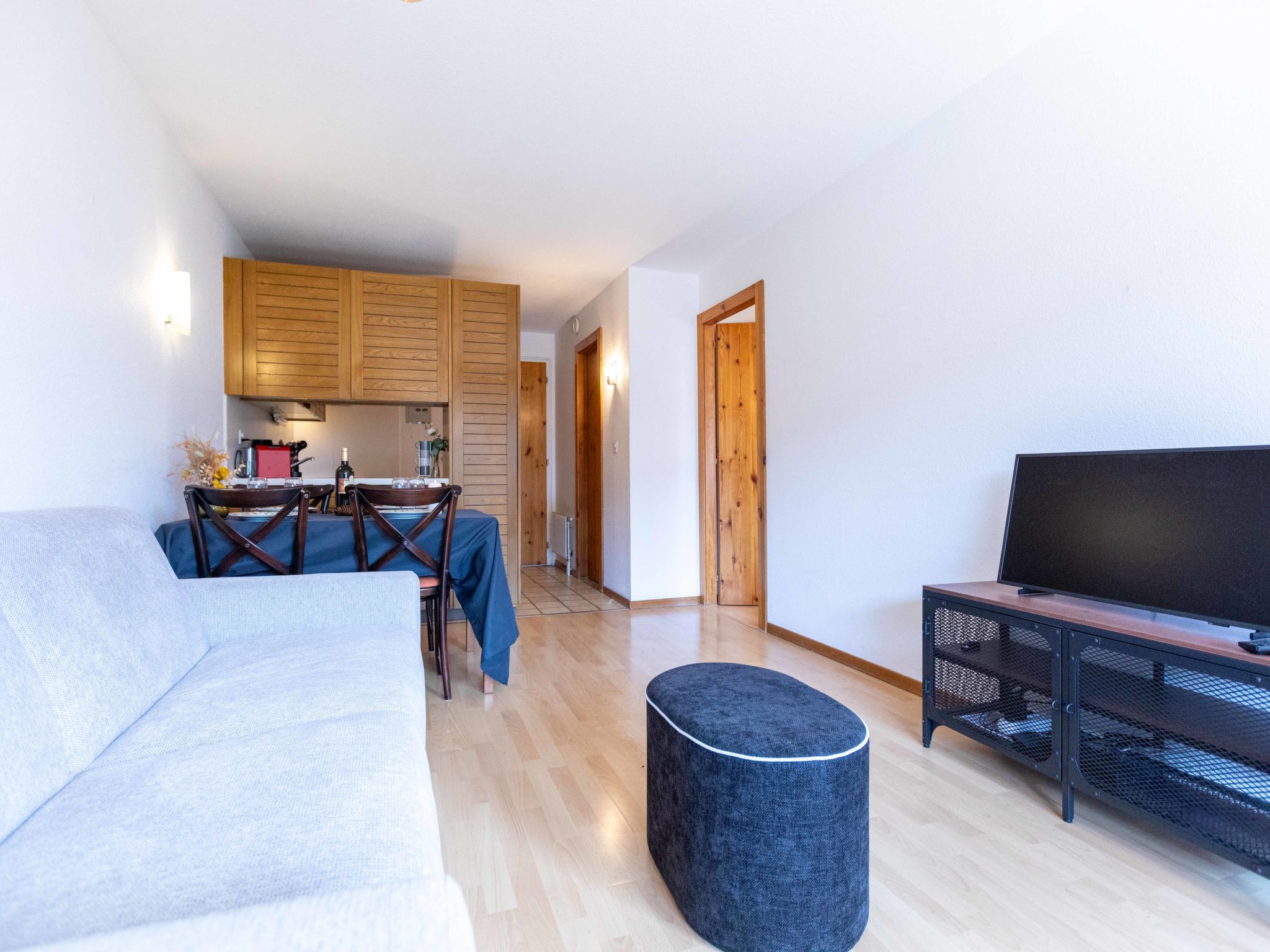 Les Dryades 6, 2-Zimmer-Wohnung 40 m2 im 1. Stock, Südlage. Zweckmässig und komfortabel eingerichtet: Wohn-/Esszimmer mit Esstisch und TV (Flachbildschirm). Ausgang zum Balkon, Richtung Süden. 1 Zimmer mit 1 franz. Bett (1 x 160 cm, Länge 200 cm). Kleine Küche im Eingang (Backofen, 4 Glaskeramikplatten, Toaster, Wasserkocher, elektrische Kaffeemaschine, Kapseln für die Kaffeemaschine (Nespresso) extra, Racletteofen, Fondue Set (Chinoise, Käse)). Bad/WC. Kleiner Balkon, Südlage. Balkonmöbel. Seitliche Sicht. Zur Verfügung: Haartrockner. Internet (WLAN, gratis). Bitte beachten: Nichtraucher-Unterkunft, kein Parkplatz.