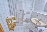 Bad/WC mit Dusche und Doppelwaschbecken (Haarfön)