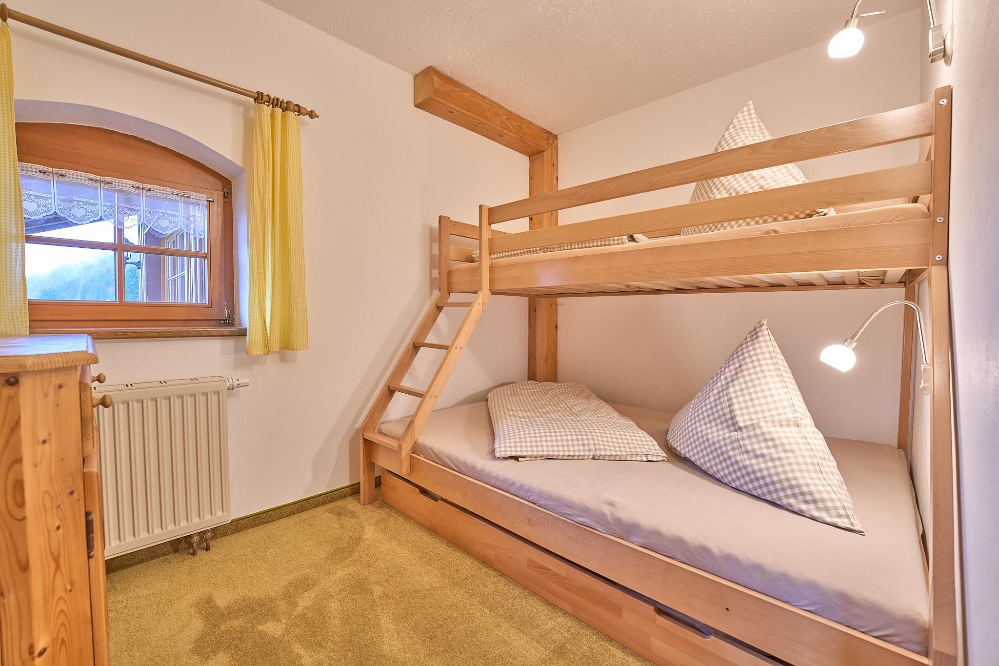 1 Schlafzimmer mit Etagenbett für 3 Kinder (oben: 90 x 2 m, unten: 1,40 x 2 m);