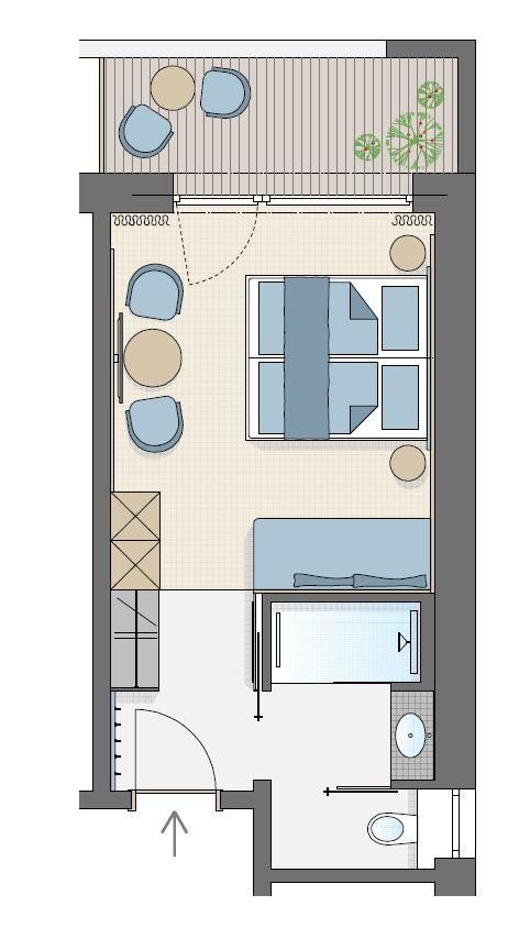 Gemütliches und komfortables neu eingerichtetes Doppelzimmer mit Doppelbett und Einzelbett, Mini-Kühlschrank, Radio, Zimmersafe, Kabel-Flat-TV und Balkon. Badezimmer Dusche und separaten WC, Haarföhn und Kosmetikspiegel.